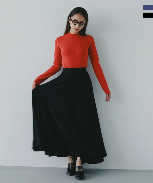 動くたびに優雅に揺れる、女性らしさが引き立つフレアロングスカート。
