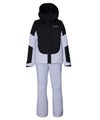 バイカラーデザインの2ピースウェアー。br> 耐水圧10000mmの2WAYストレッチ生地を使用。br> 取り外し可能なサスペンダーやウエスト脇のサイズ調整アジャスター付き。br> バイカラーデザインでスタイリッシュな表現