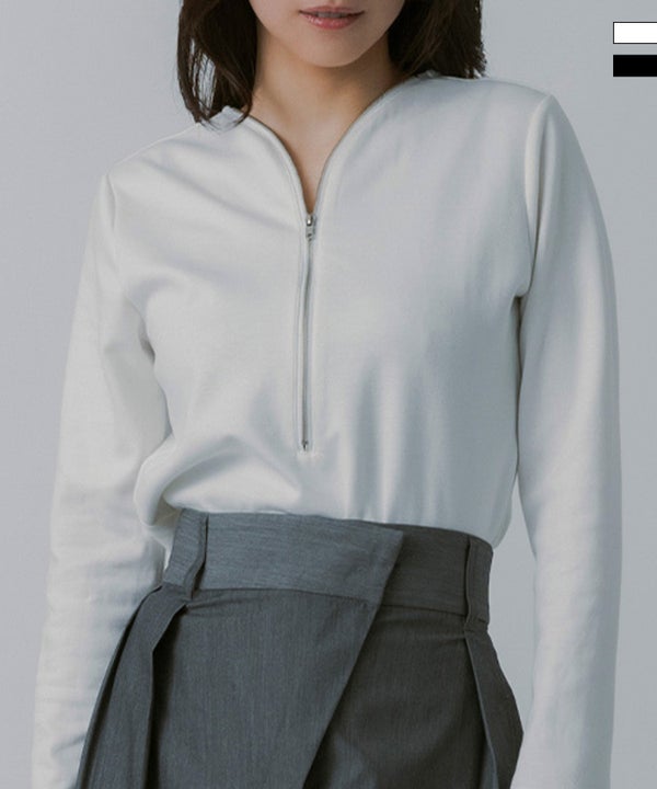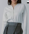 フロントにあしらったジップデザインがアクセントになったラインジッププルオーバー。シンプルな中に程よいエッジを効かせ、大人のスタイリングにモードなニュアンスをプラスしてくれる一枚です。