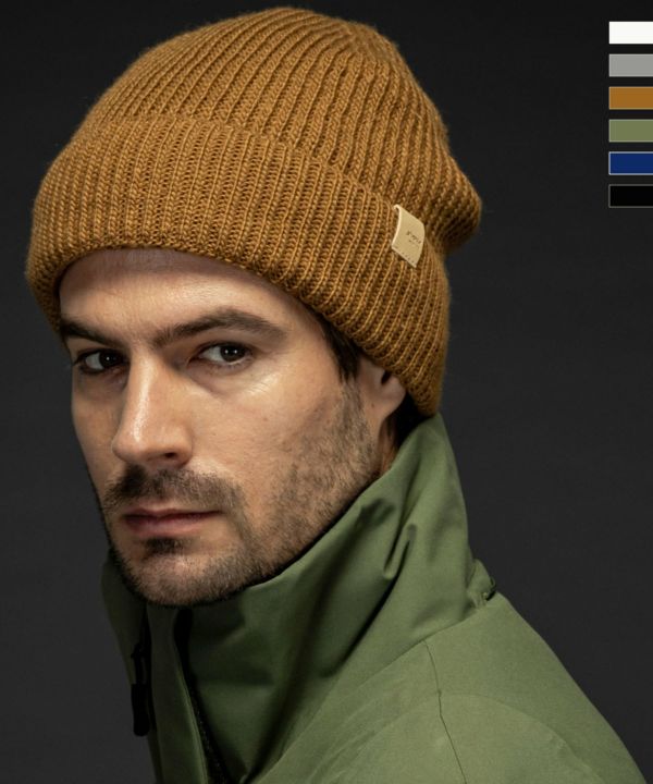 フリースライニングベーシックニットハットは、シンプルなデザインでどんなスタイルにも合わせやすいメンズ用ニット帽です。
