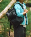 撥水加工を施した「コーティングポリエステルオックス」を使用した、機能性とスマートな印象を兼ね備えた2WAY仕様のバックパック。