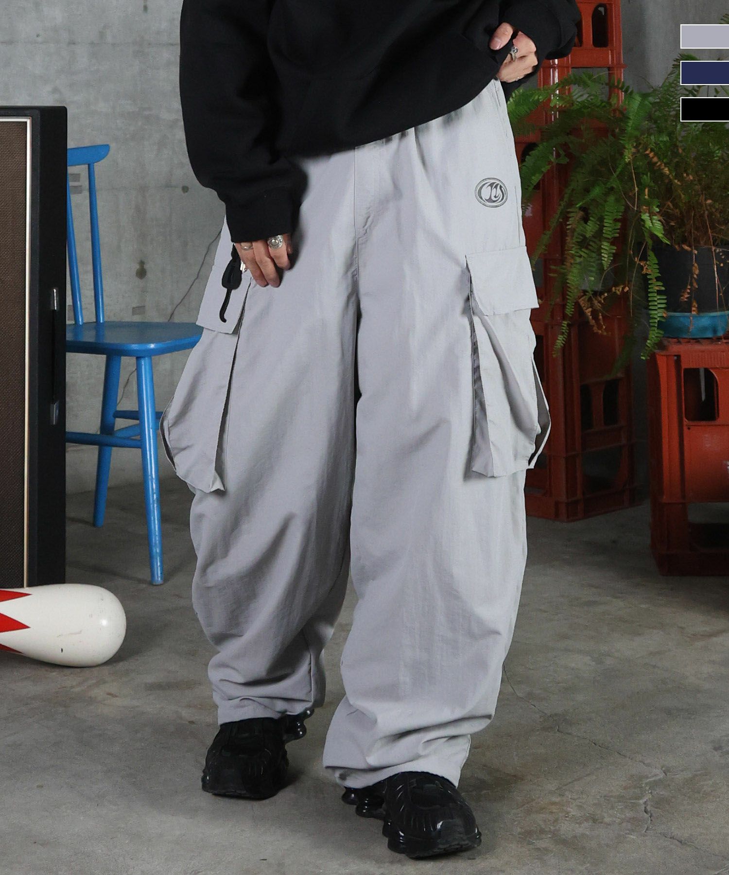 ILL'S(イルズ)キーリングループ ワンポイント ナイロンワイドカーゴパンツ