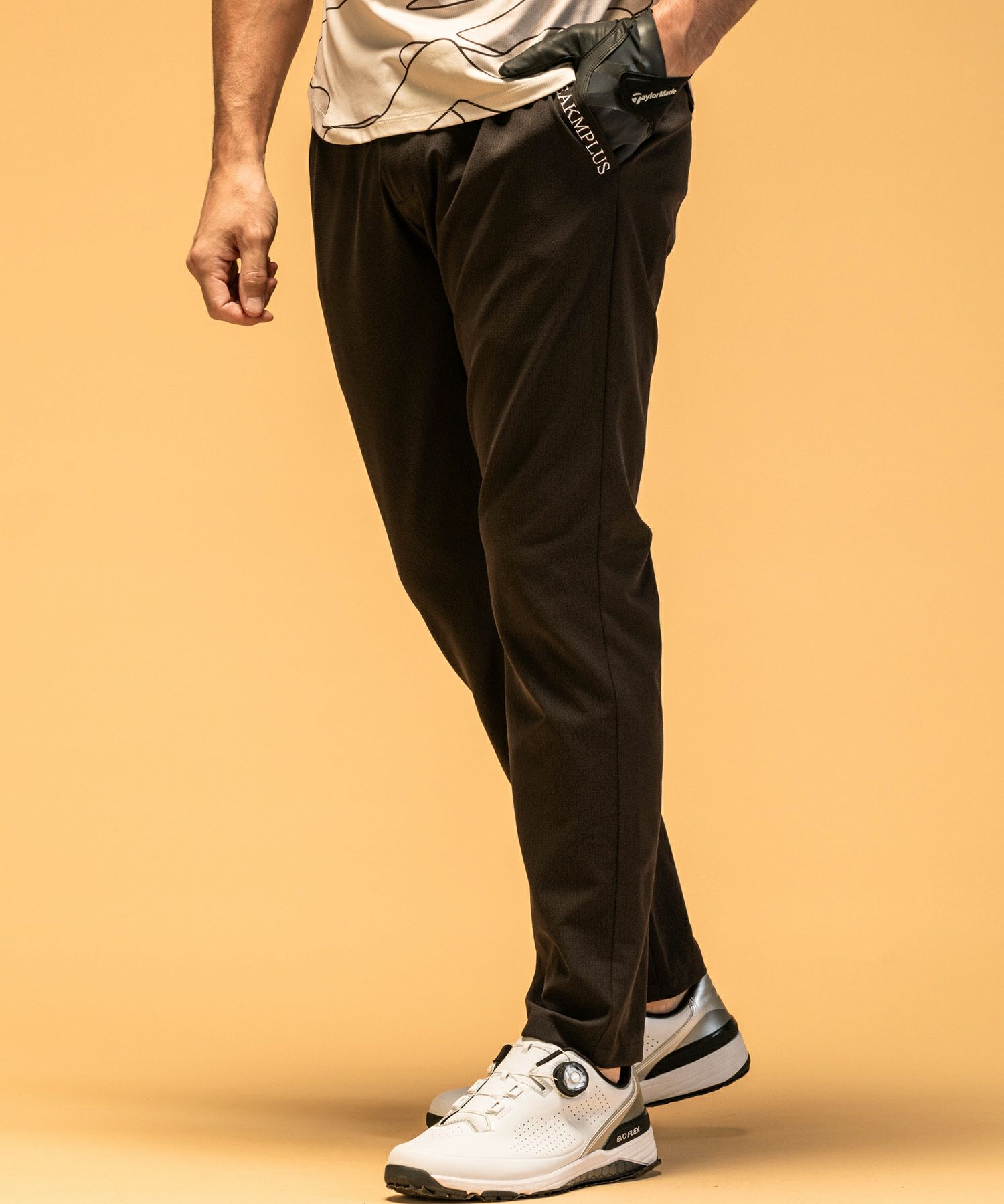 プレー集中出来るように捻転運動を考えた立体裁断パンツです。