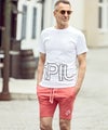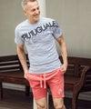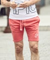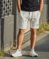 ブランド名の意を持つ「1+1=3」をあしらったハーフパンツ。