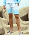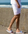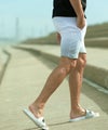 ペールカラーからホワイトへのグラデーションが華やかに彩るスウェットショーツ。