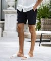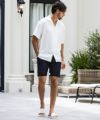 ベーシックなショートパンツで簡単にリゾートライクなスタイルが完成します。