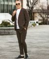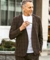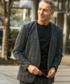 クラシカルなグレンチェック柄が落ち着いた品格を演出するノーカラージャケット。