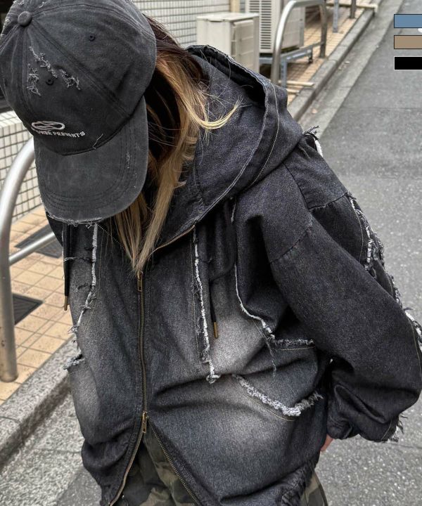 ILL'S(イルズ)グランジ加工 フルジップ デニムフーディ