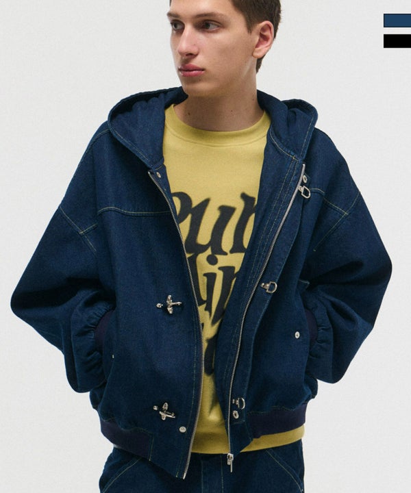 バックルが主役。無骨さを、デニムフーディに。