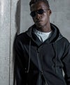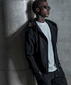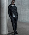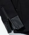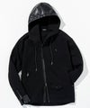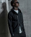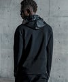 ライダースジャケットの無骨なディテールと、現代的なテック素材を融合させたジップアップフーディ。