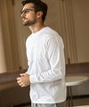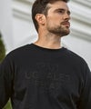 フロントにブランドロゴを3段に配置した長袖カットソー。