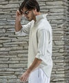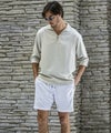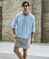 スキッパーにループ留めボタンを施し、程よい抜け感のある大人のリゾートスタイルを演出。
