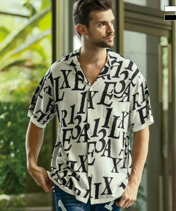 ジャガード織で総柄ロゴを表現した、同ブランドらしい遊び心を感じる開襟シャツ。