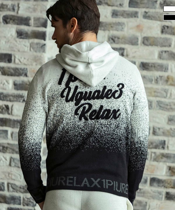 1PIU1UGUALE3 RELAX(ウノピゥウノウグァーレトレ リラックス)バックロゴグラデーションニットプルパーカー