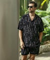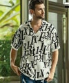 ジャガード織で総柄ロゴを表現した、同ブランドらしい遊び心を感じる開襟シャツ。