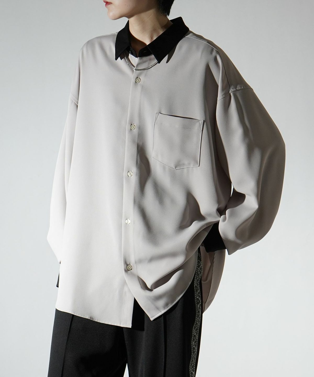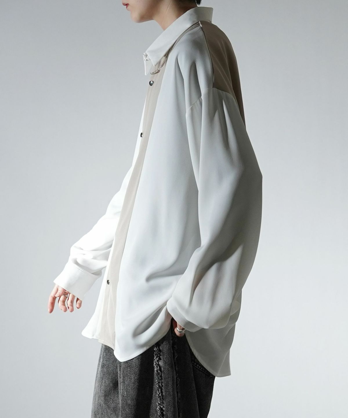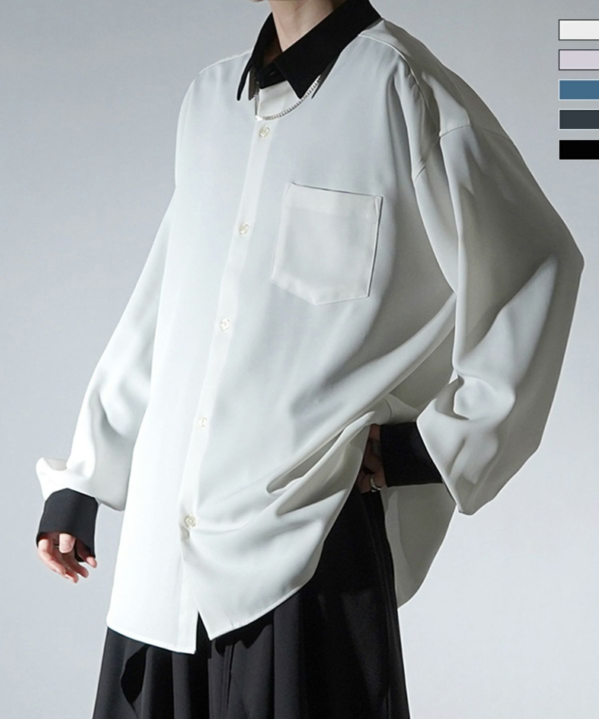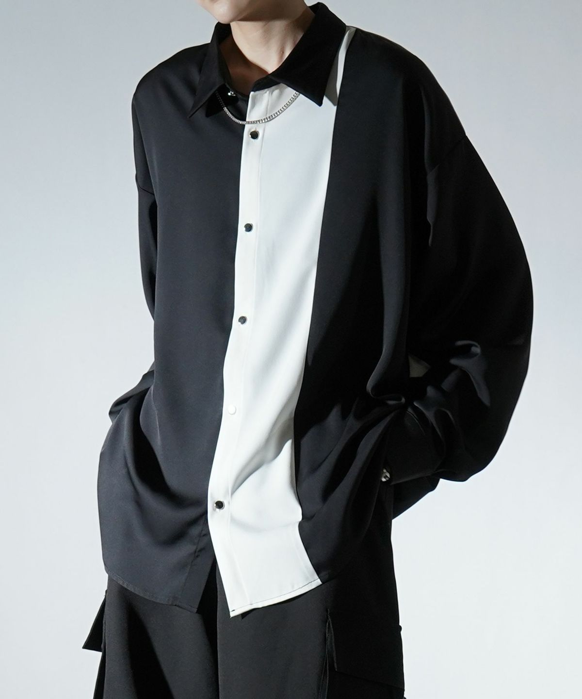 他の画像を見る タイムセール67%OFF Confirm(コンファーム)アシンメトリーキリカエ / 襟配色クレリック ドレープとろみ ビッグシルエット長袖シャツ ユニセックス SALE ¥ 5,940 ¥ 1,989 税込 お気に入りに登録する