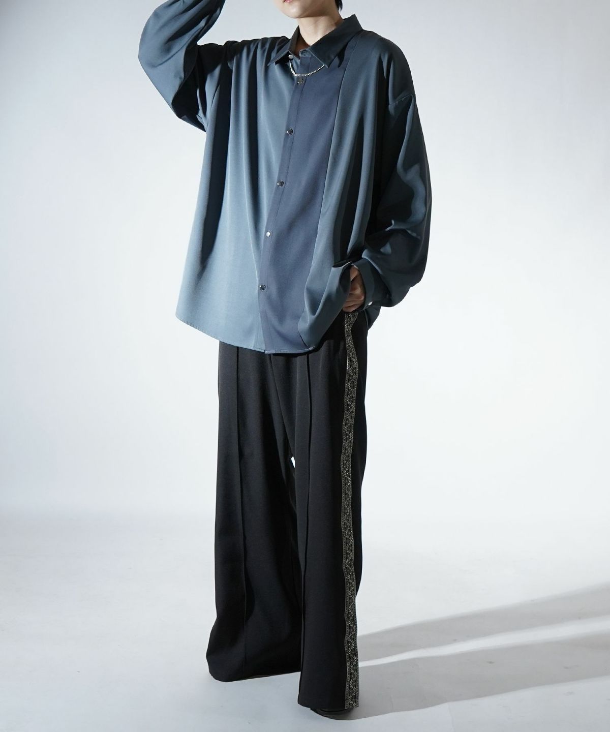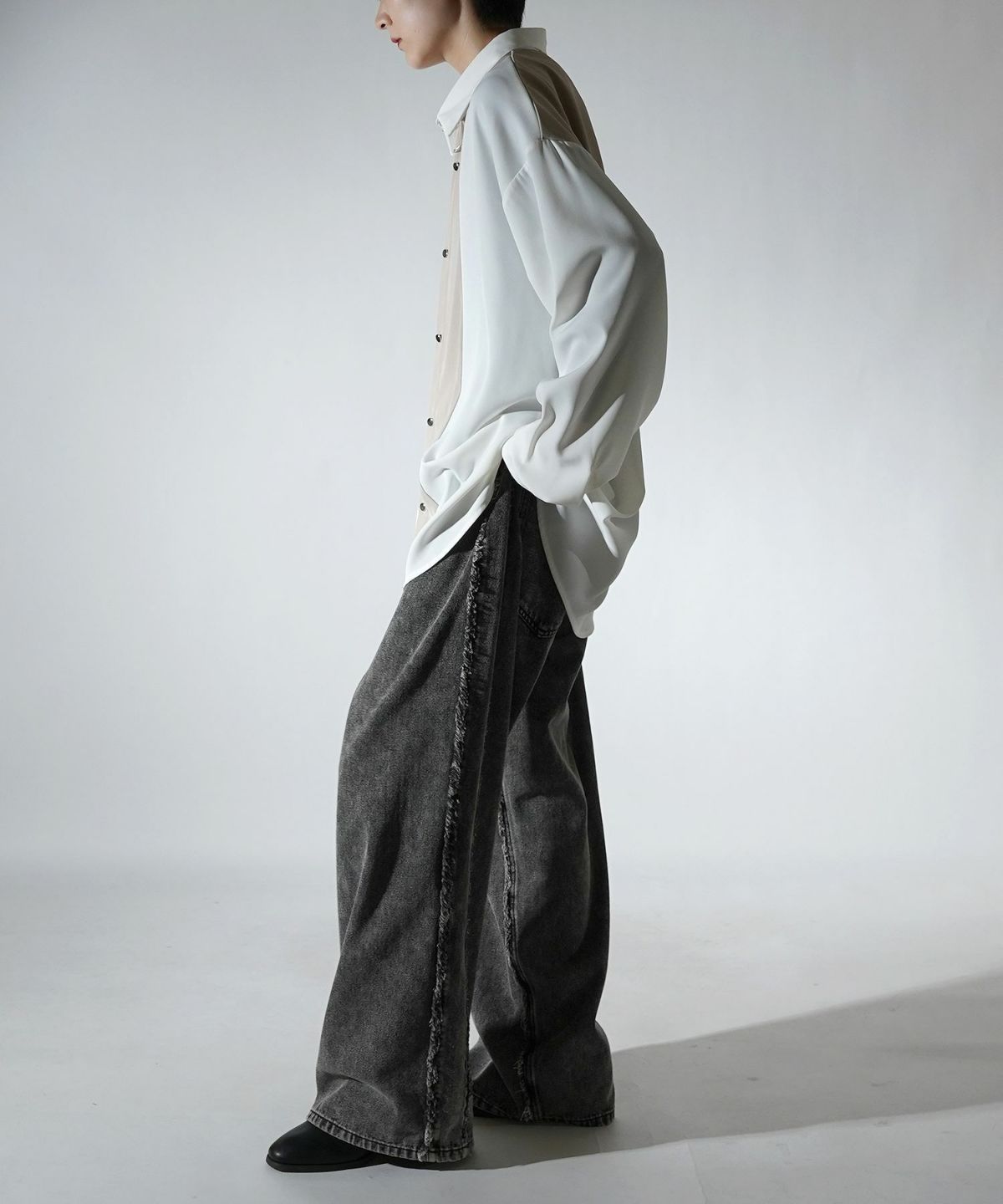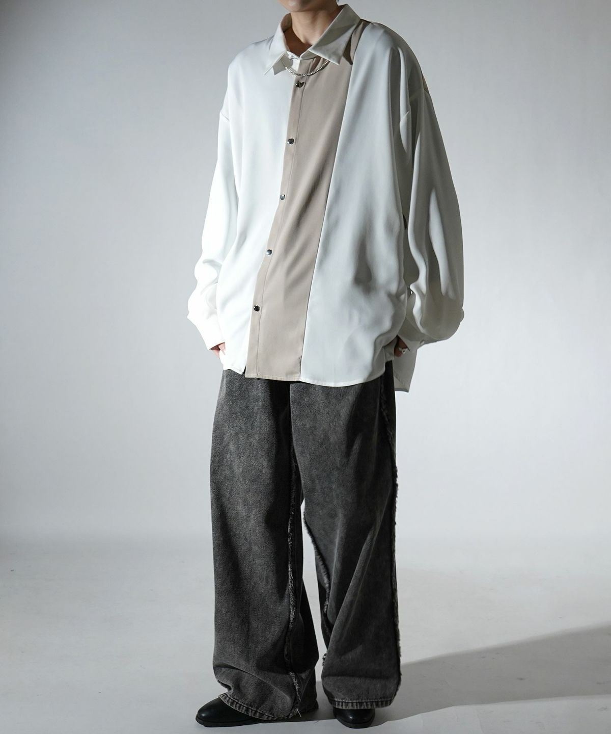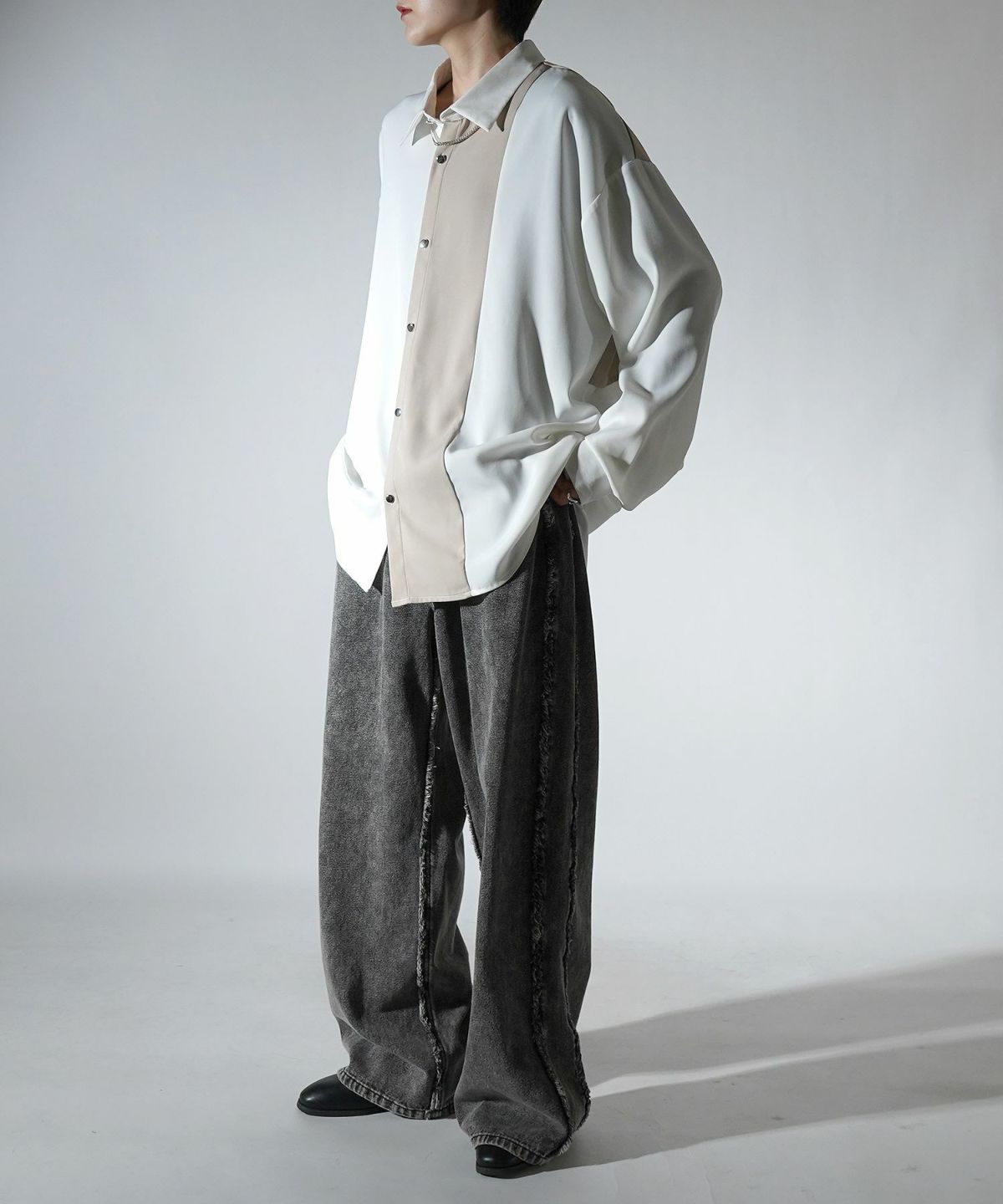 他の画像を見る タイムセール67%OFF Confirm(コンファーム)アシンメトリーキリカエ / 襟配色クレリック ドレープとろみ ビッグシルエット長袖シャツ ユニセックス SALE ¥ 5,940 ¥ 1,989 税込 お気に入りに登録する