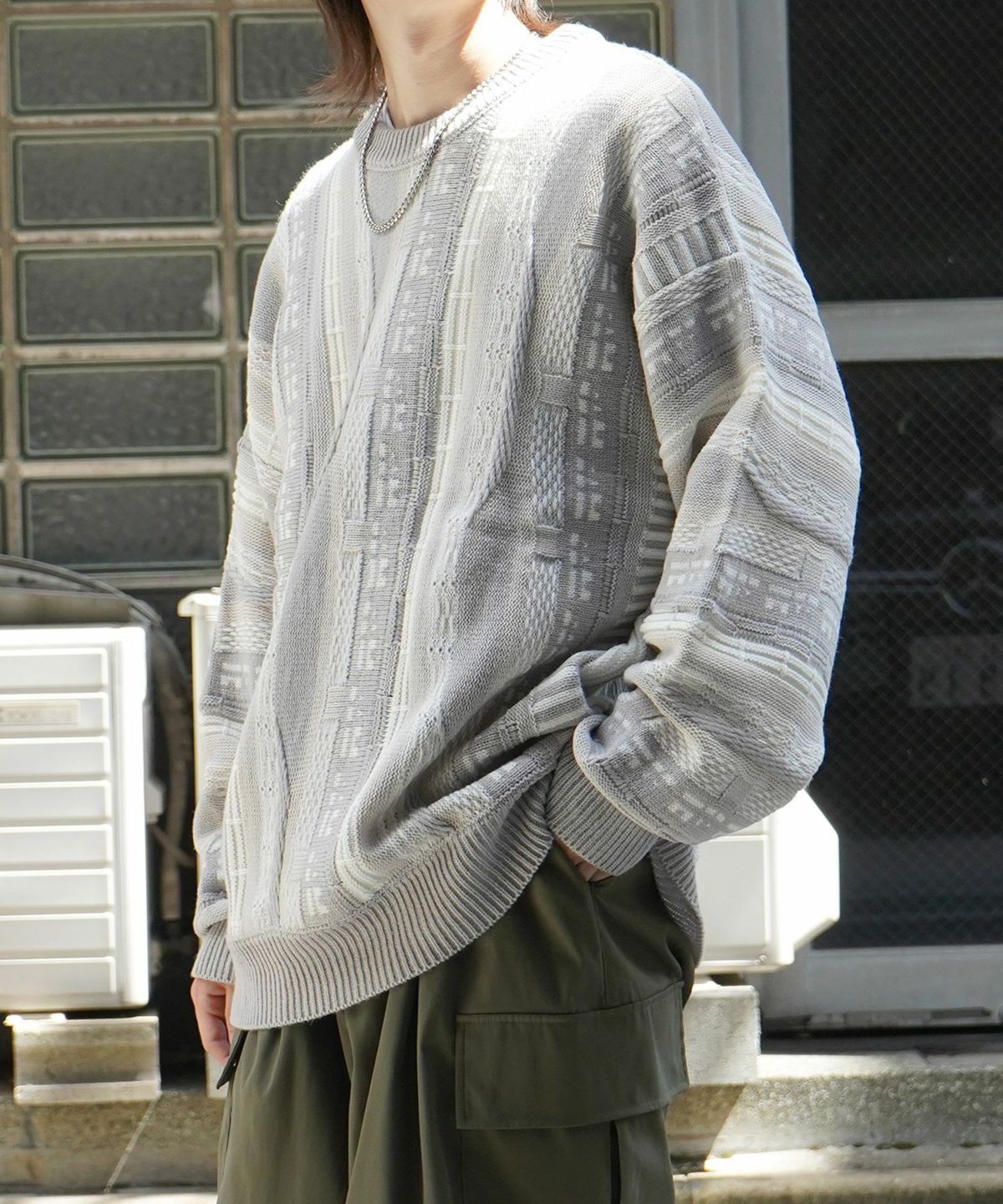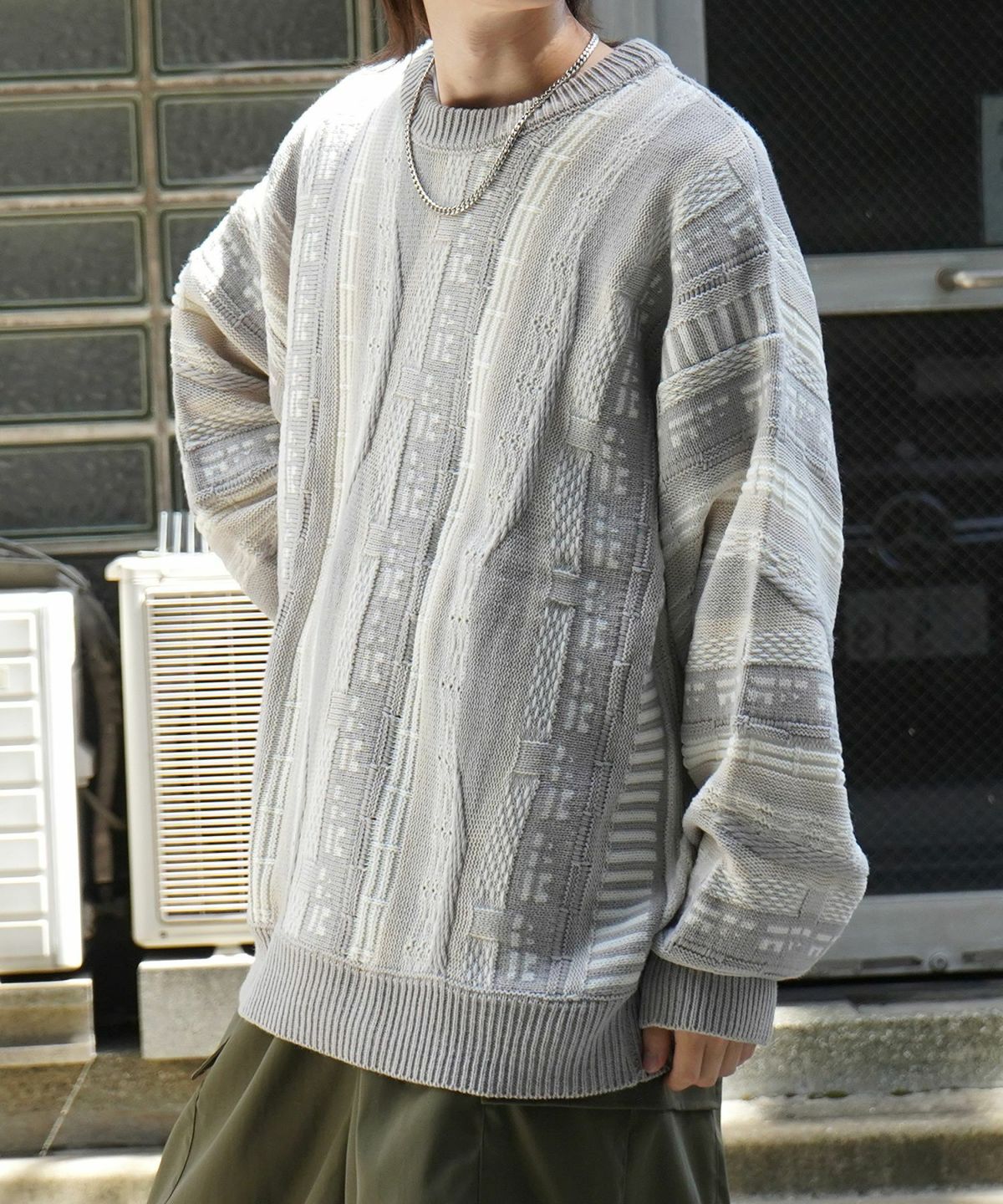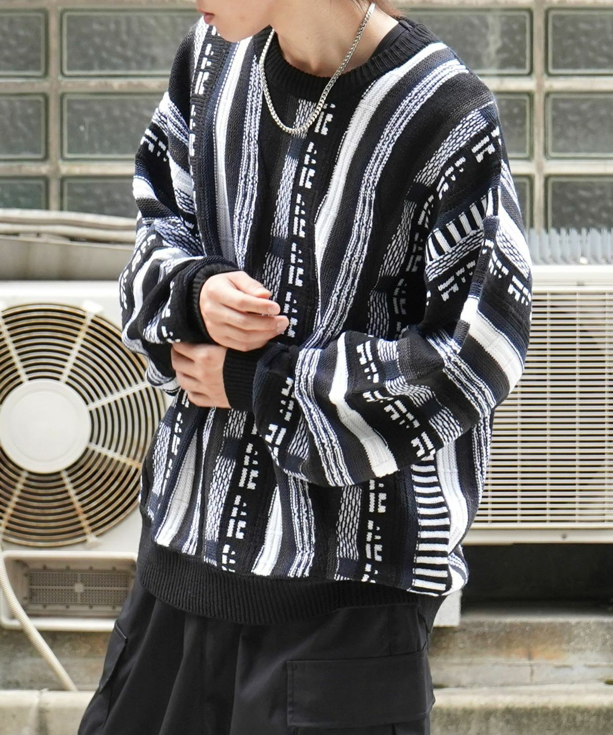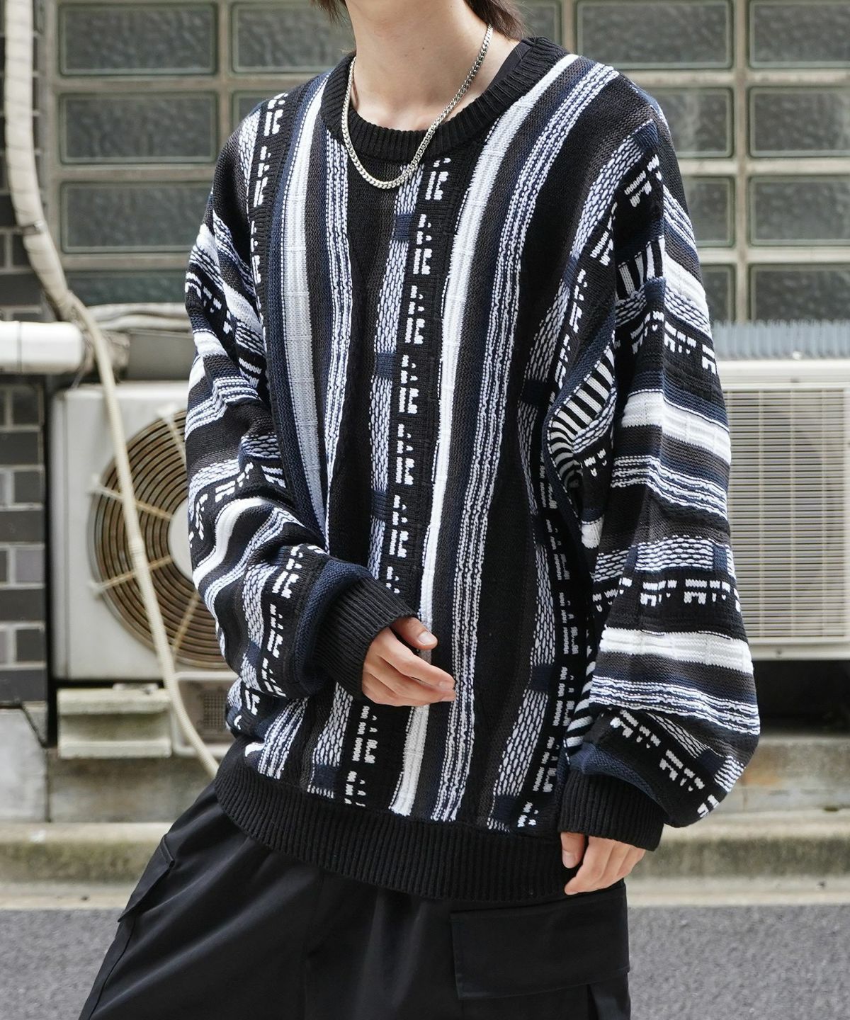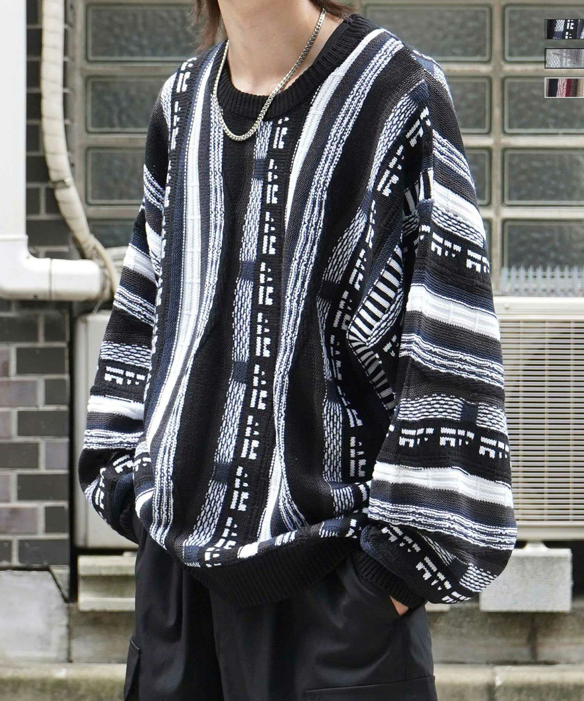 他の画像を見る タイムセール62%OFF Confirm(コンファーム)ヴィンテージライク レトロジャガードストライプ柄 ビッグシルエット 3Dニットプルオーバー SALE ¥ 6,490 ¥ 2,490 税込 在庫切れ お気に入りに登録する
