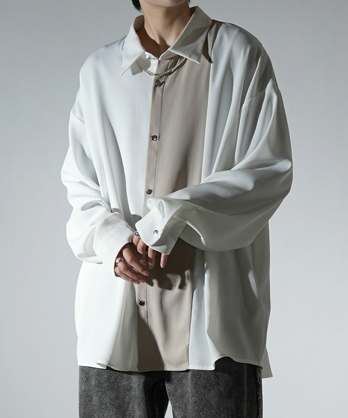他の画像を見る タイムセール67%OFF Confirm(コンファーム)アシンメトリーキリカエ 襟配色クレリック ドレープとろみ ビッグシルエット長袖シャツ ユニセックス SALE ¥ 5,940 ¥ 1,989 税込 お気に入りに登録する