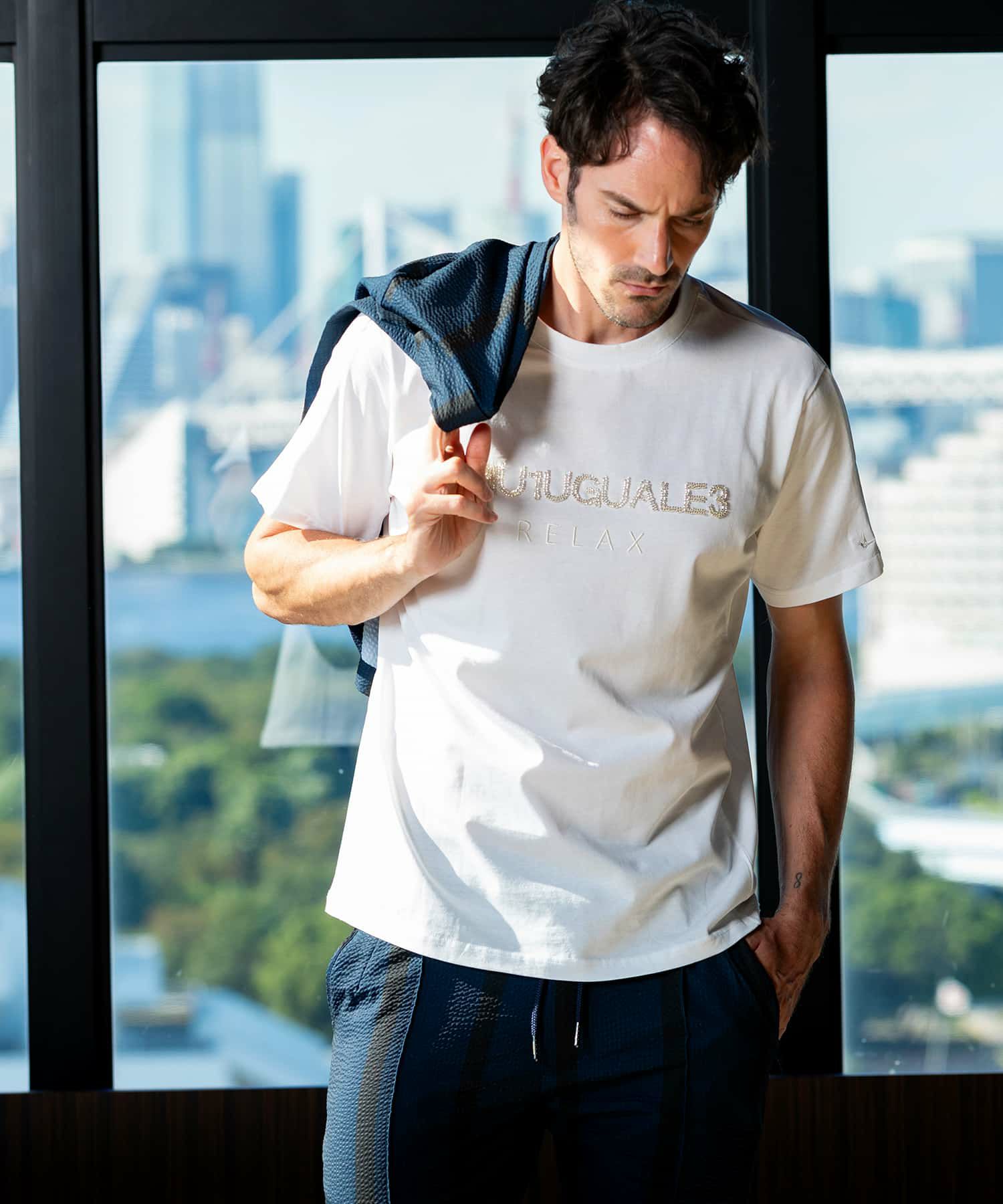 他の画像を見る 30%OFF 1PIU1UGUALE3 RELAX(ウノピゥウノウグァーレトレ リラックス)ラインストーンサイドロゴ半袖Tシャツ SALE ¥ 7,920 ¥ 5,544 税込 お気に入りに登録する