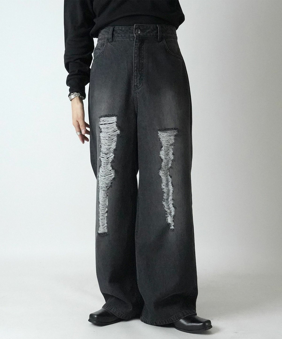 他の画像を見る 14%OFF Confirm(コンファーム)ヴィンテージメイク ダメージ加工 ケミカルウォッシュ加工 ワイドストレートデニムパンツ SALE ¥ 6,930 ¥ 5,989 税込 お気に入りに登録する