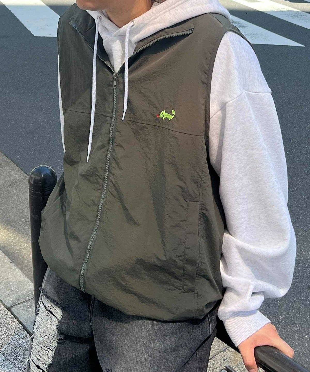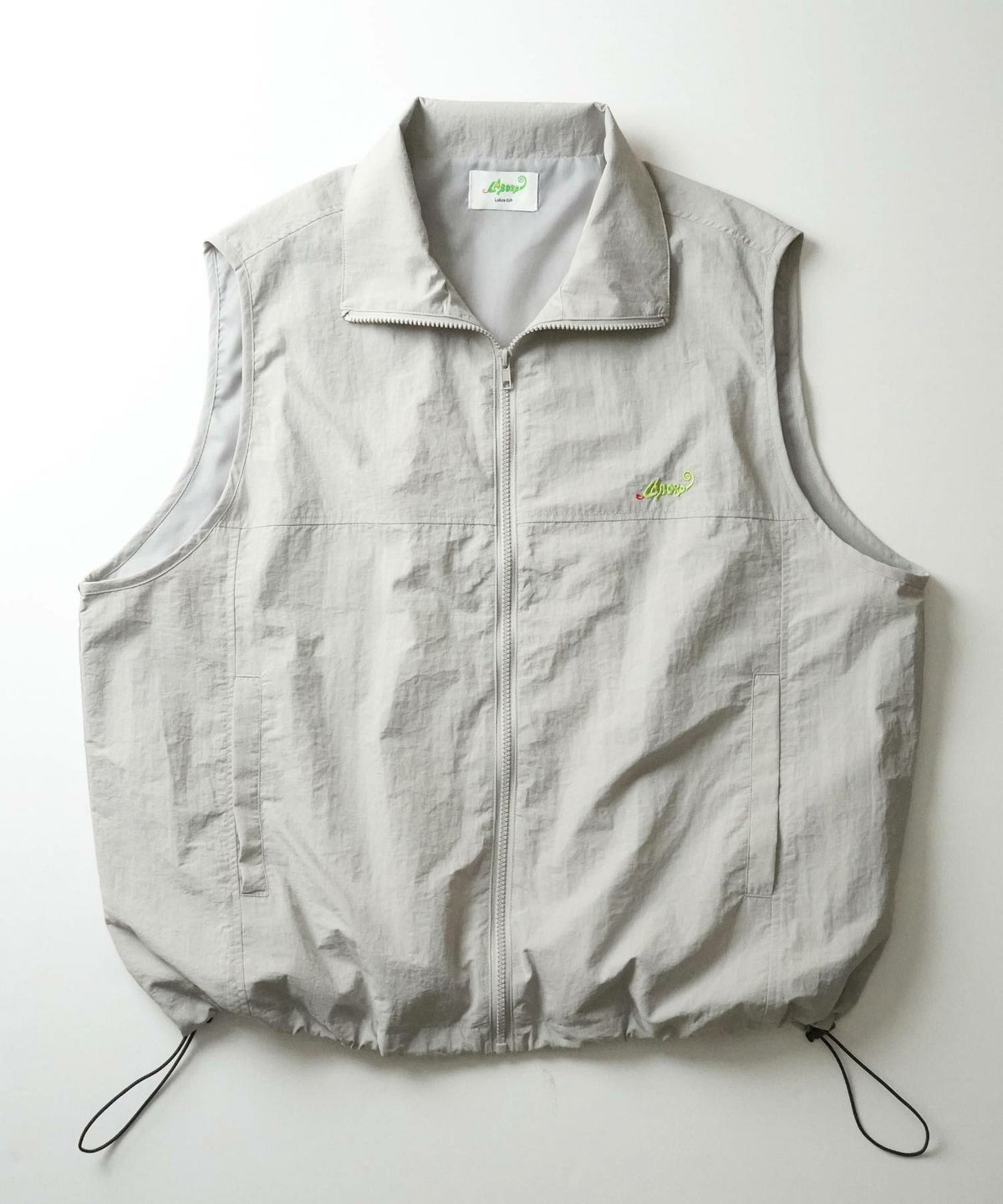 他の画像を見る 9%OFF ILL'S(イルズ)ビッグシルエット ワンポイント刺繍 ドロスト付き フルジップナイロンベスト ユニセックス SALE ¥ 6,600 ¥ 5,989 税込 お気に入りに登録する