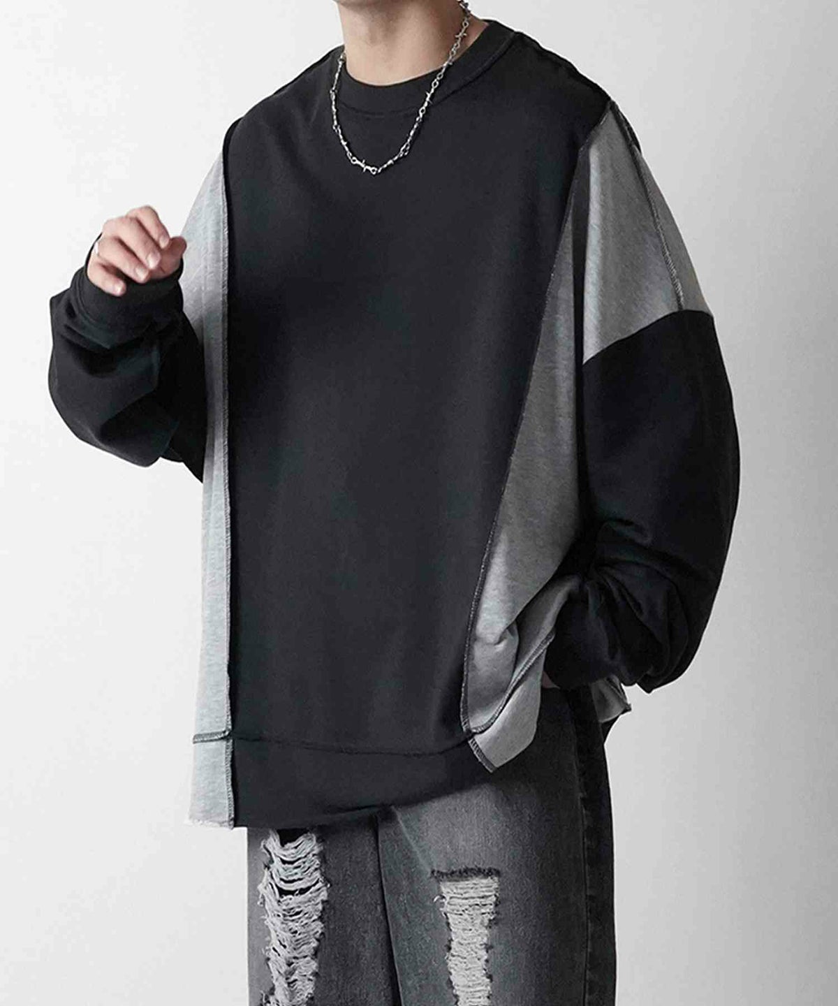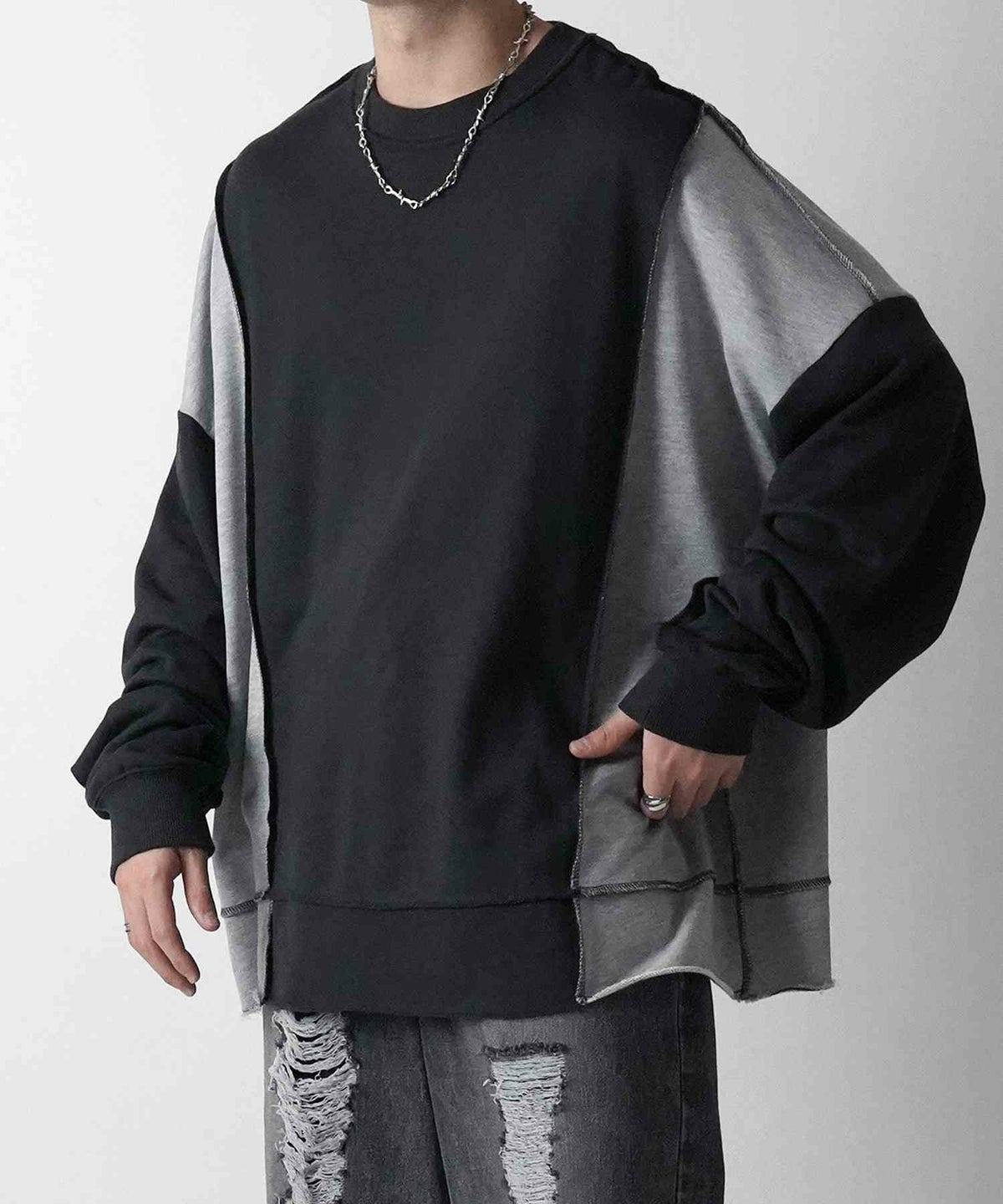 他の画像を見る 16%OFF Confirm(コンファーム)ヴィンテージライク リメイク風 切り替え配色 裏毛トレーナー プルオーバースウェット SALE ¥ 5,940 ¥ 4,989 税込 お気に入りに登録する