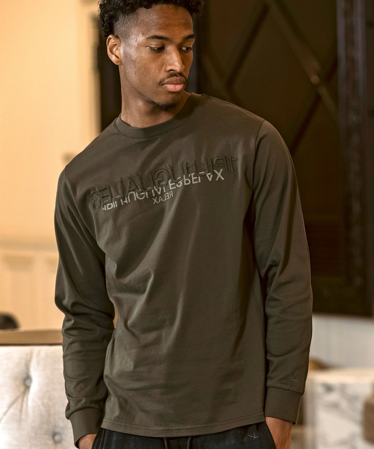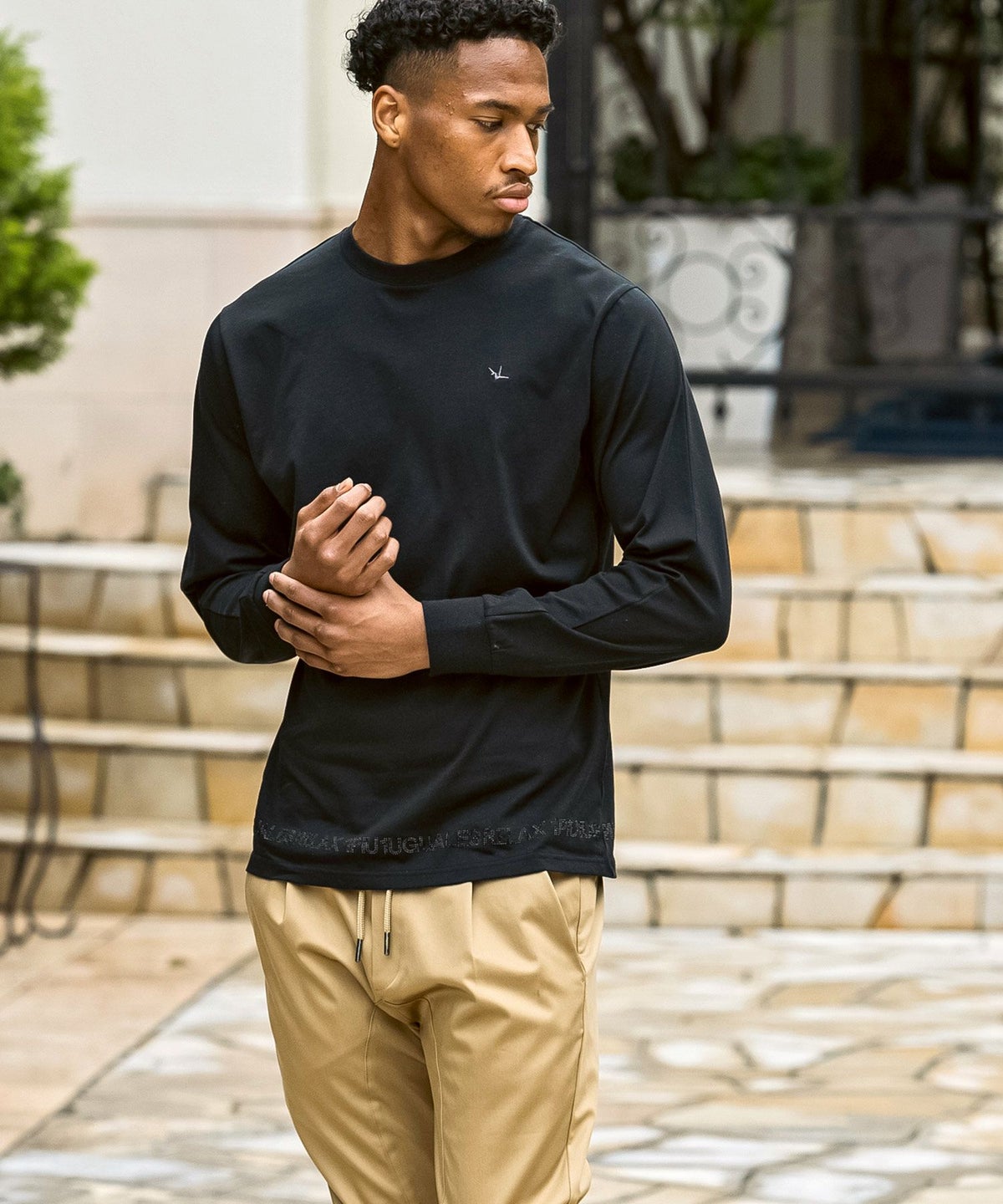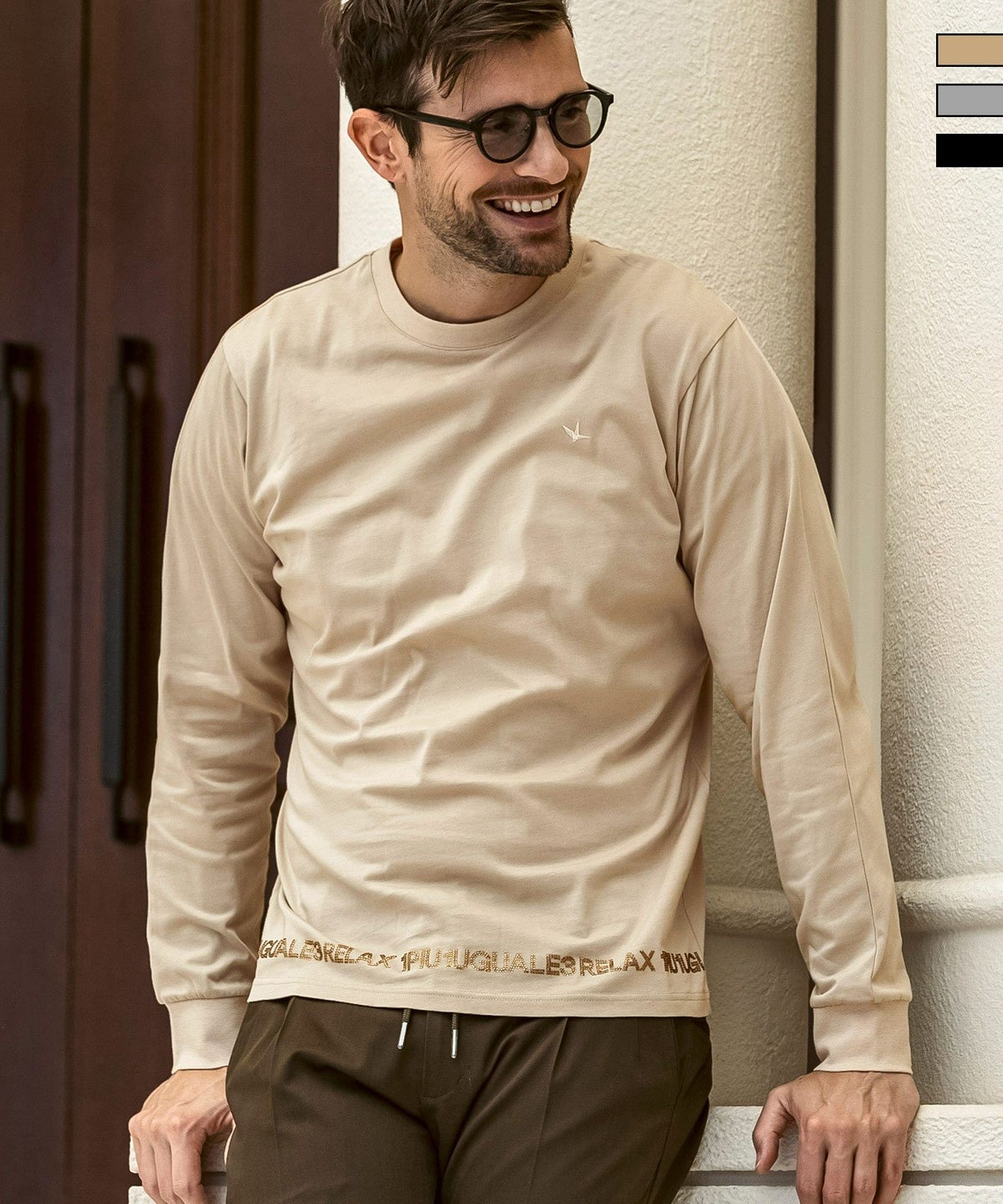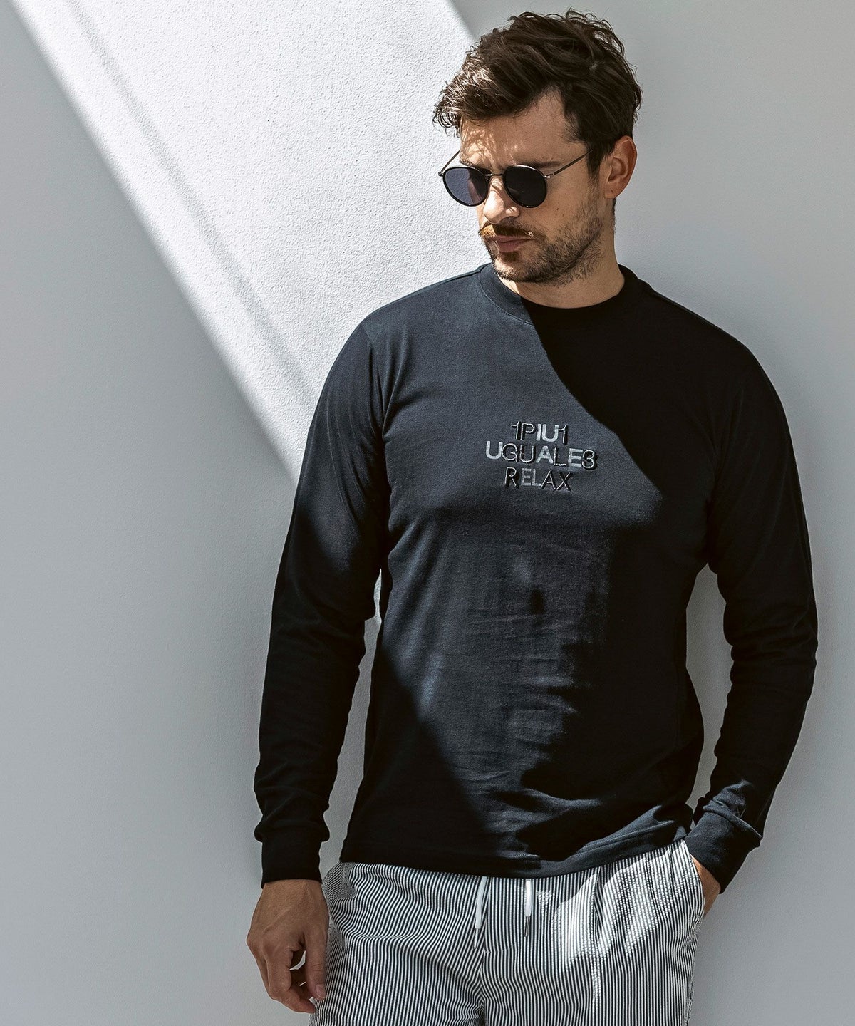 1PIU1UGUALE3 RELAX(ウノピゥウノウグァーレトレ リラックス)コンビネーションロゴロングTシャツ