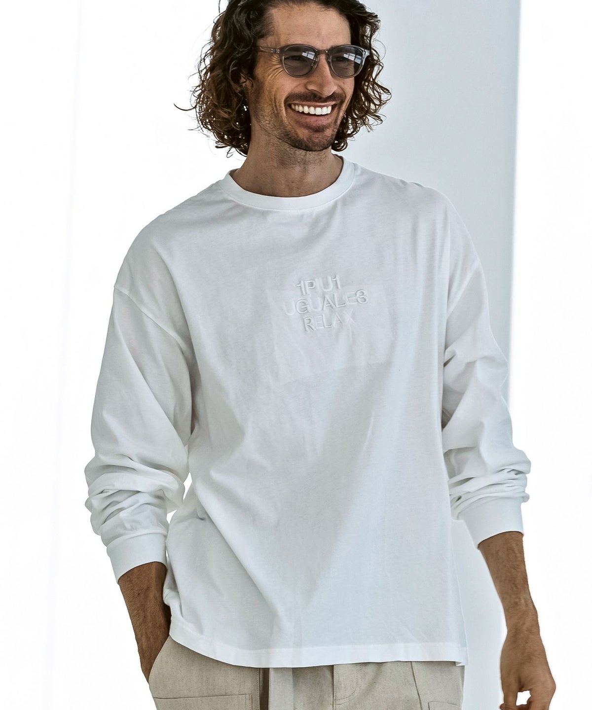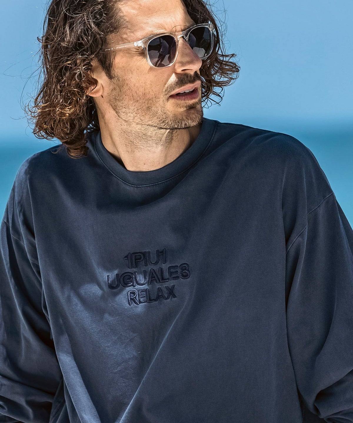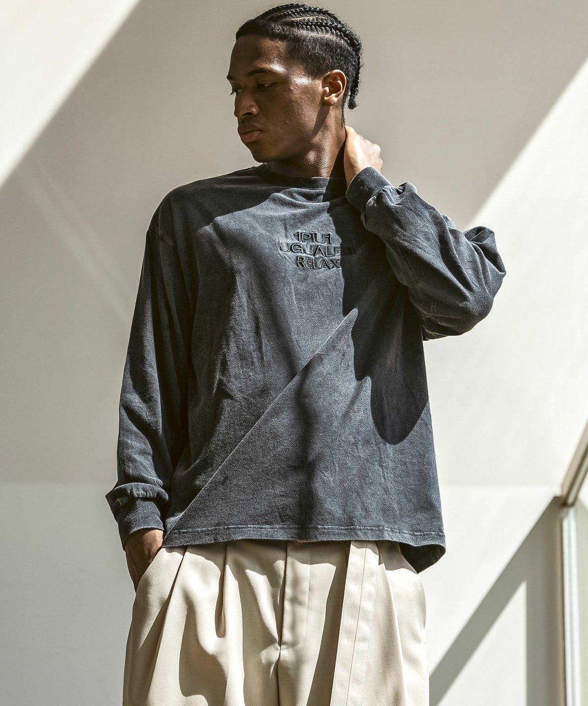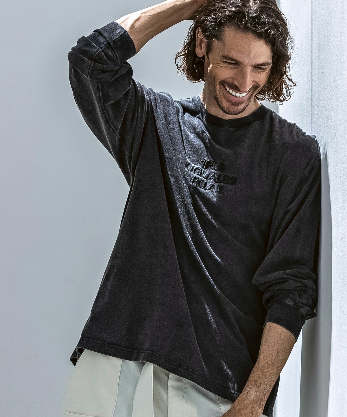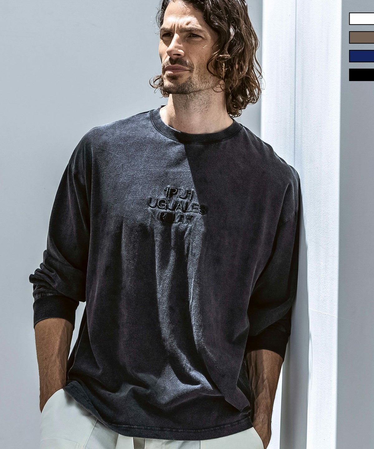 1PIU1UGUALE3 RELAX(ウノピゥウノウグァーレトレ リラックス)ピグメント刺繍ロゴロングTシャツ