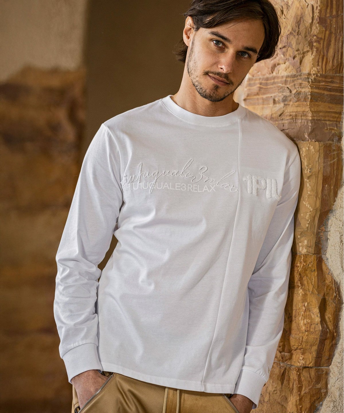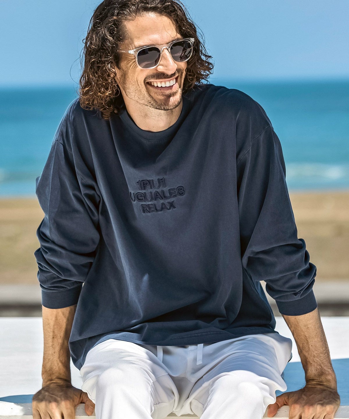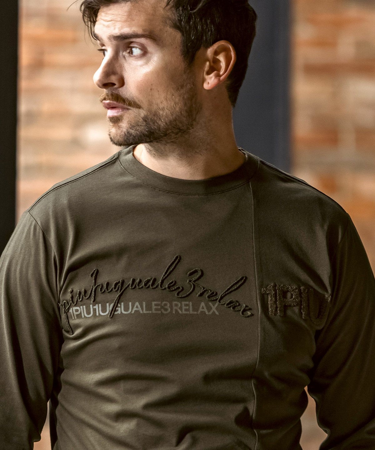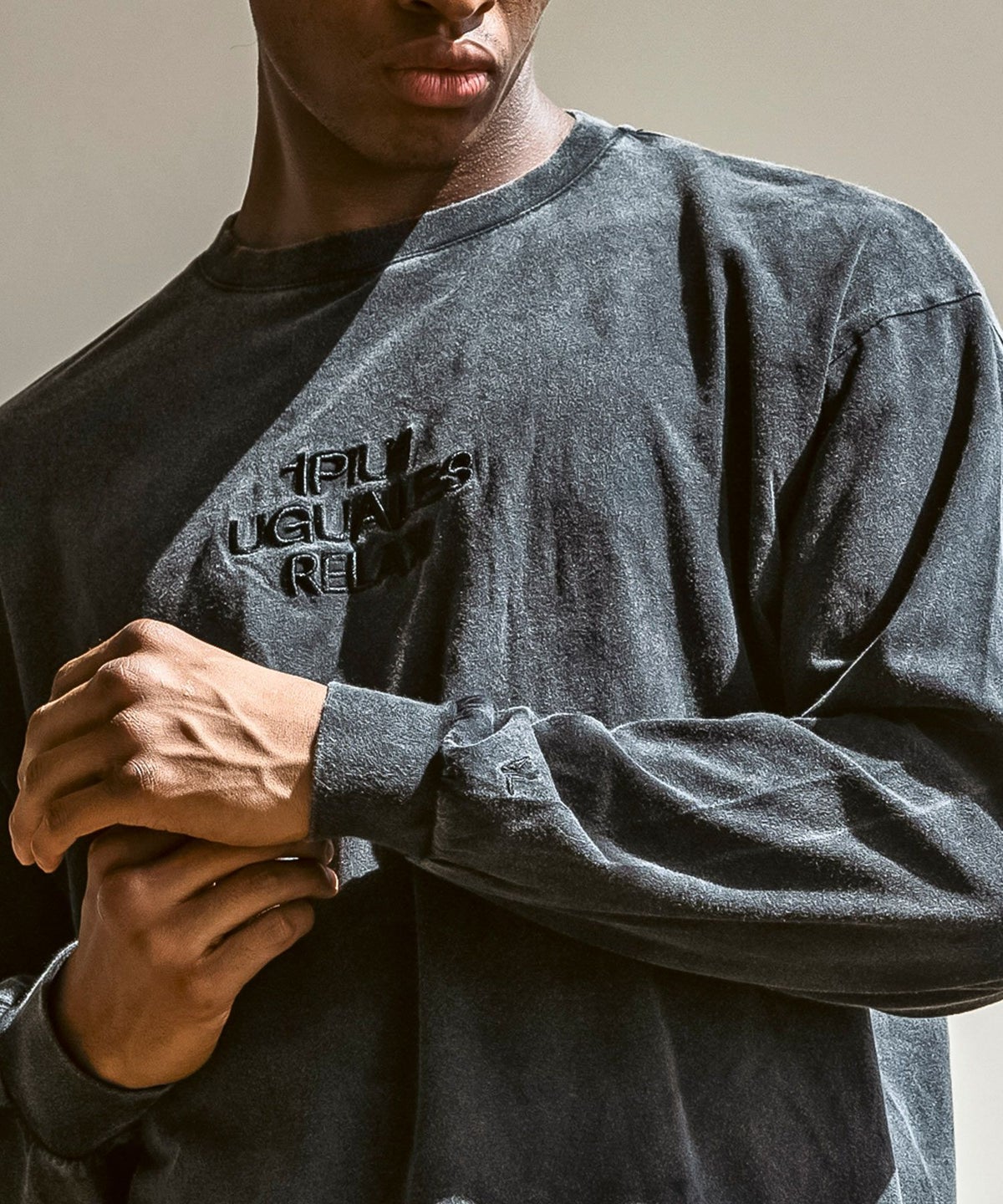 1PIU1UGUALE3 RELAX(ウノピゥウノウグァーレトレ リラックス)ピグメント刺繍ロゴロングTシャツ