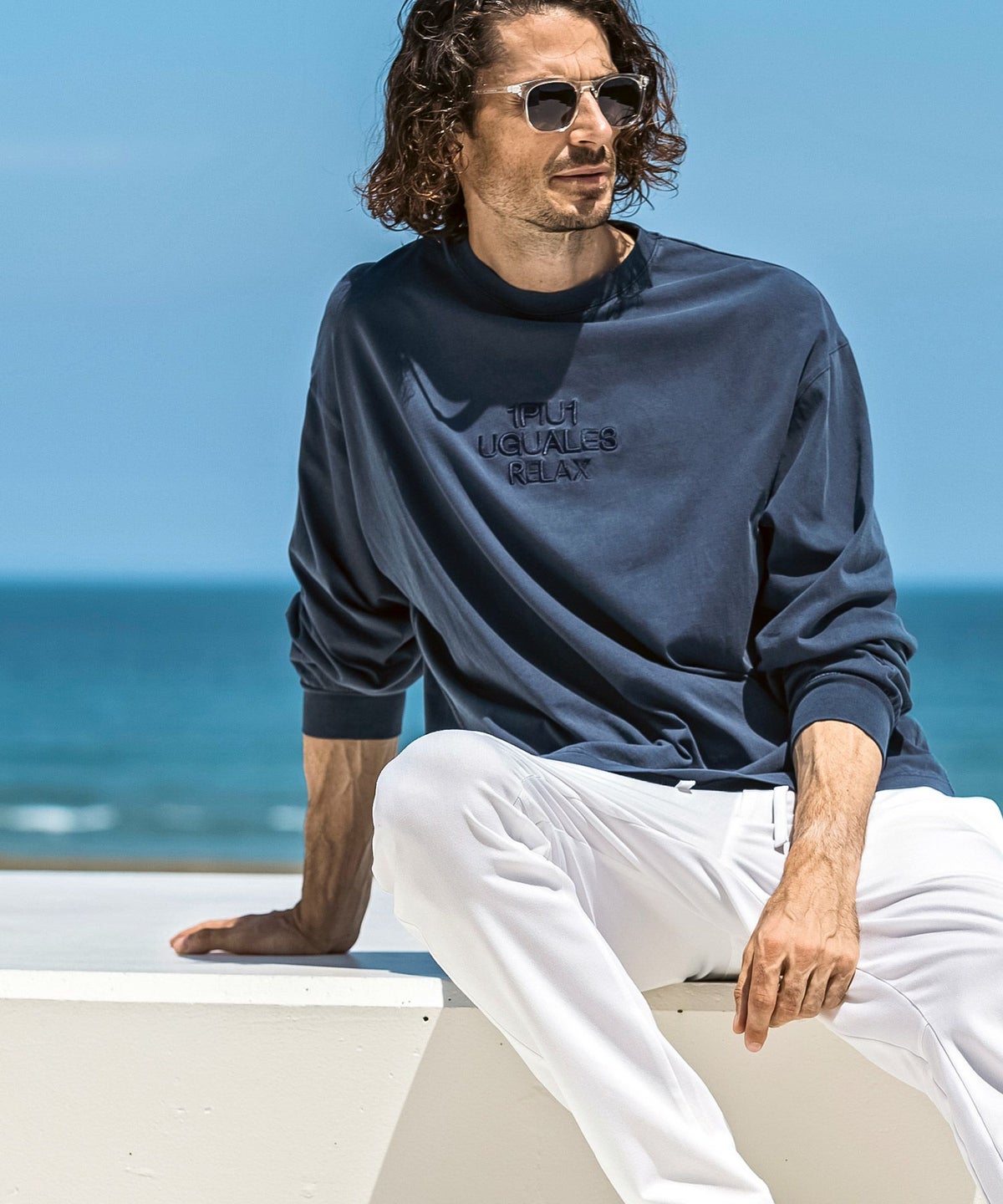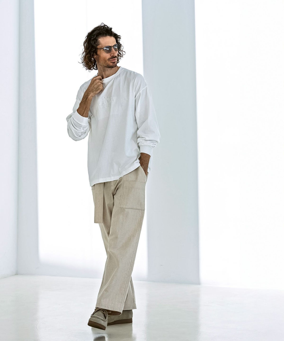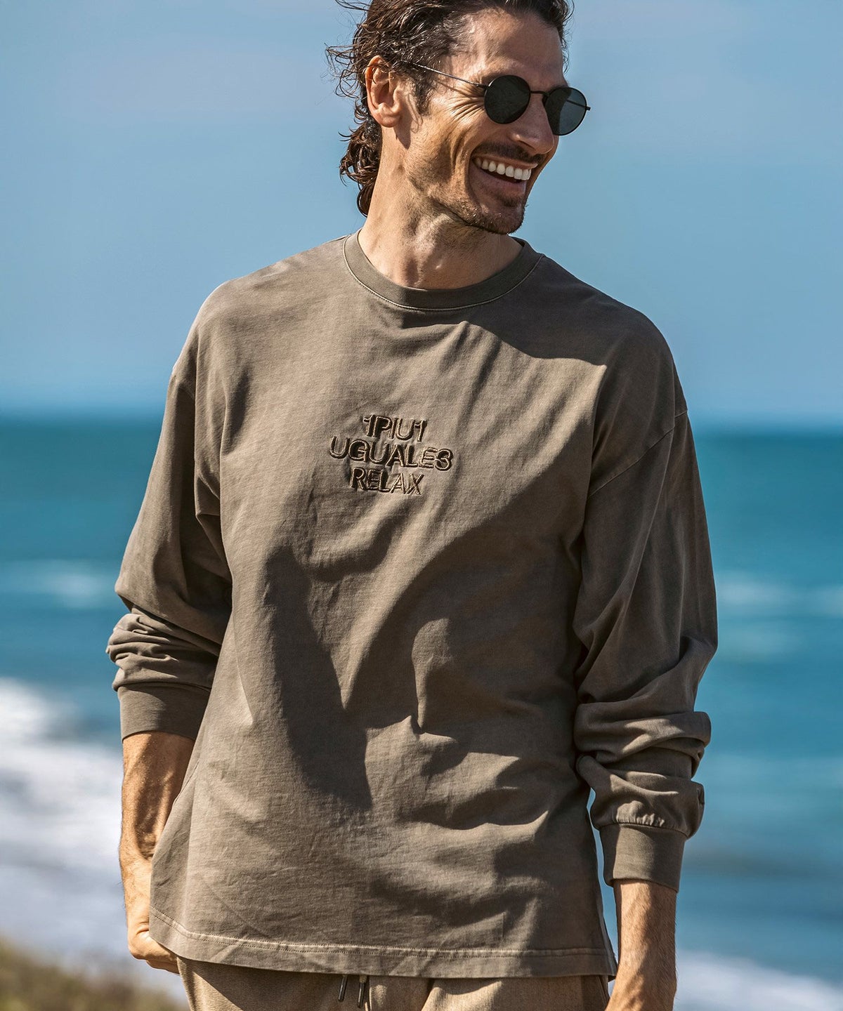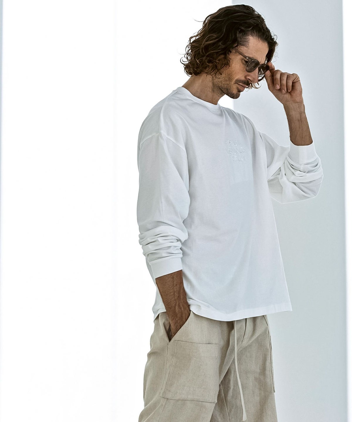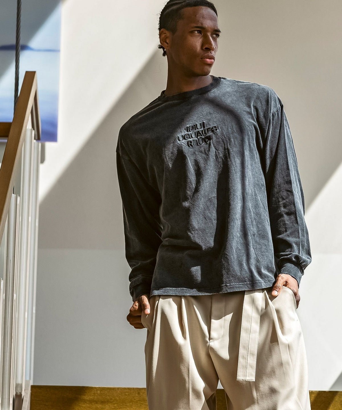 1PIU1UGUALE3 RELAX(ウノピゥウノウグァーレトレ リラックス)ピグメント刺繍ロゴロングTシャツ