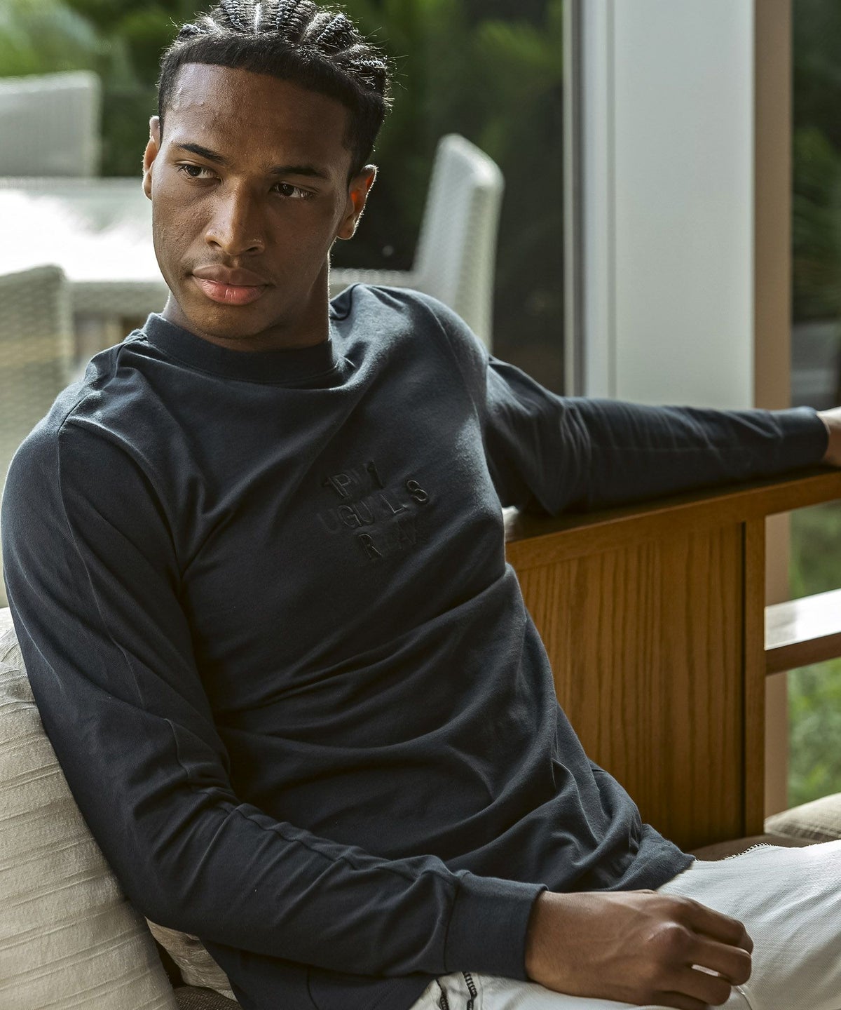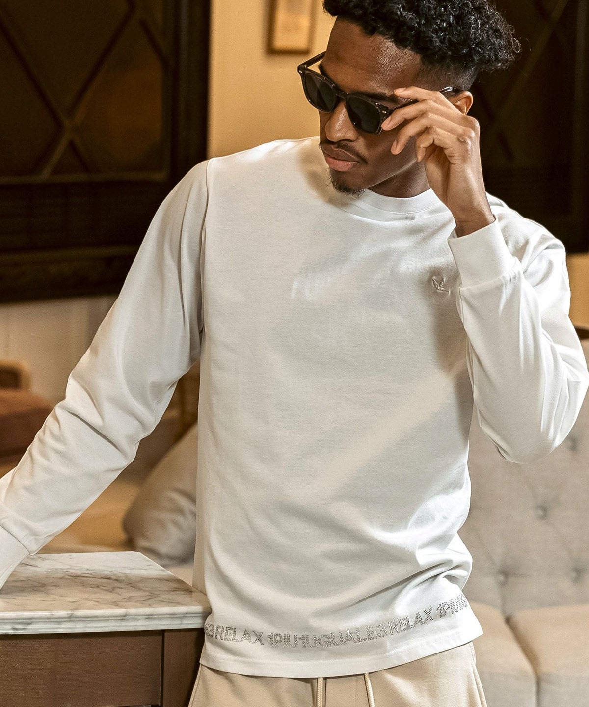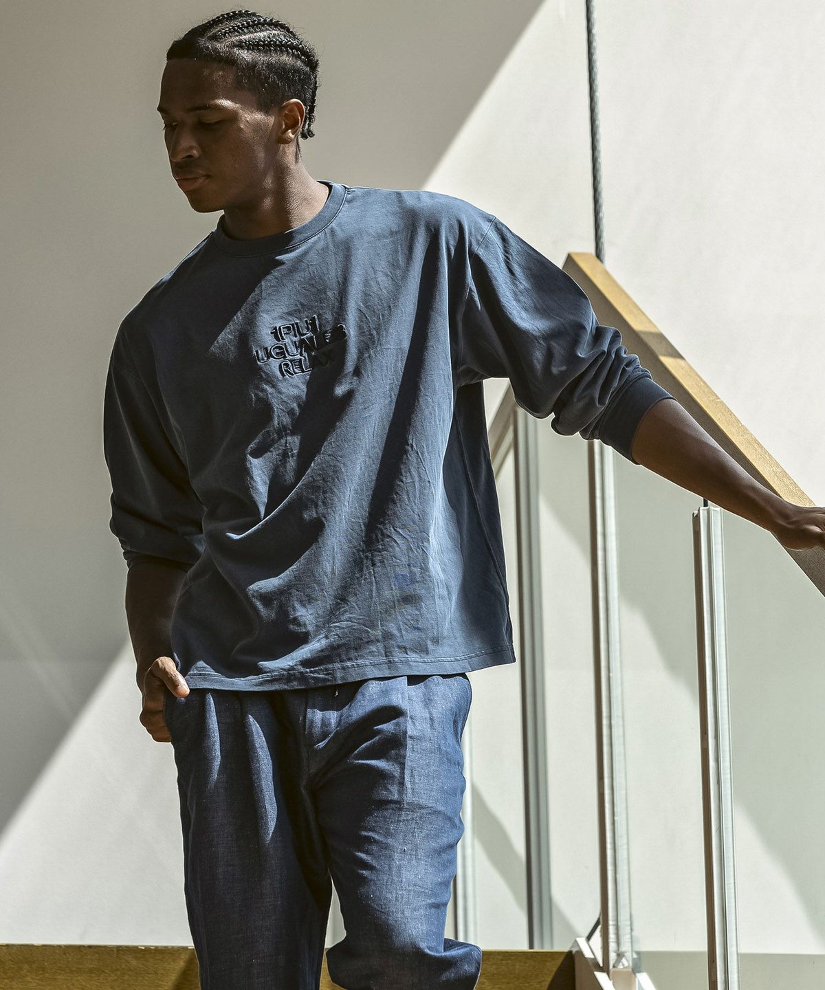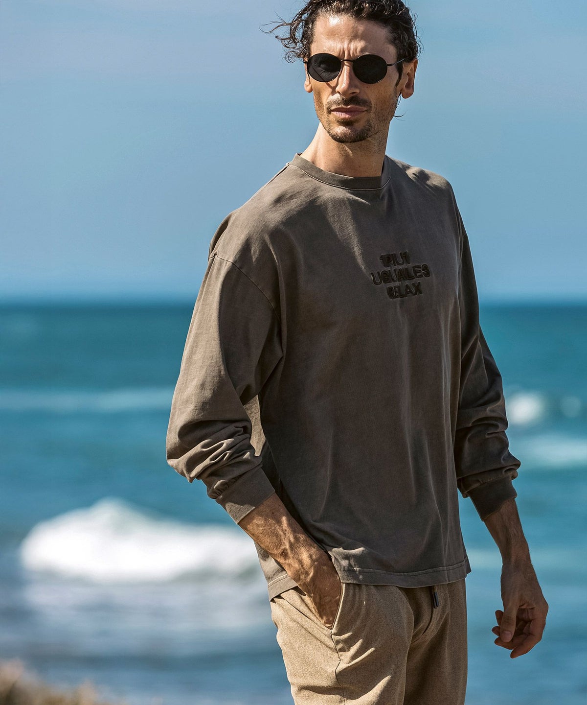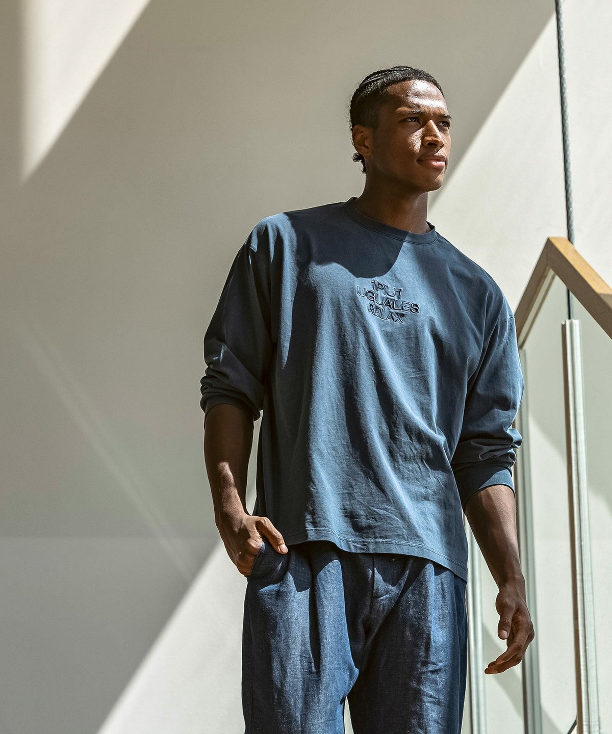 1PIU1UGUALE3 RELAX(ウノピゥウノウグァーレトレ リラックス)ピグメント刺繍ロゴロングTシャツ