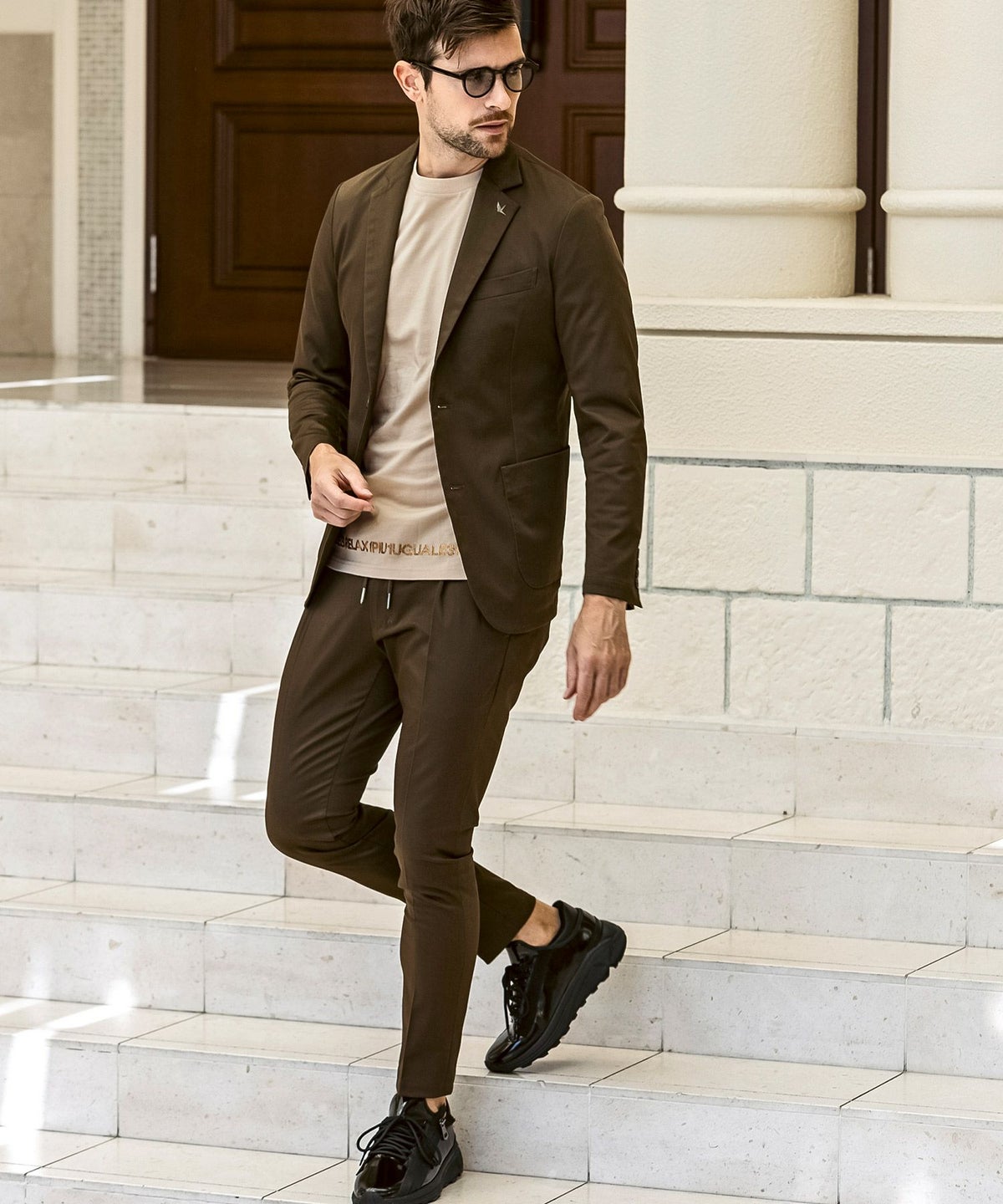 1PIU1UGUALE3 RELAX(ウノピゥウノウグァーレトレ リラックス)ブラックジャガードスラックス