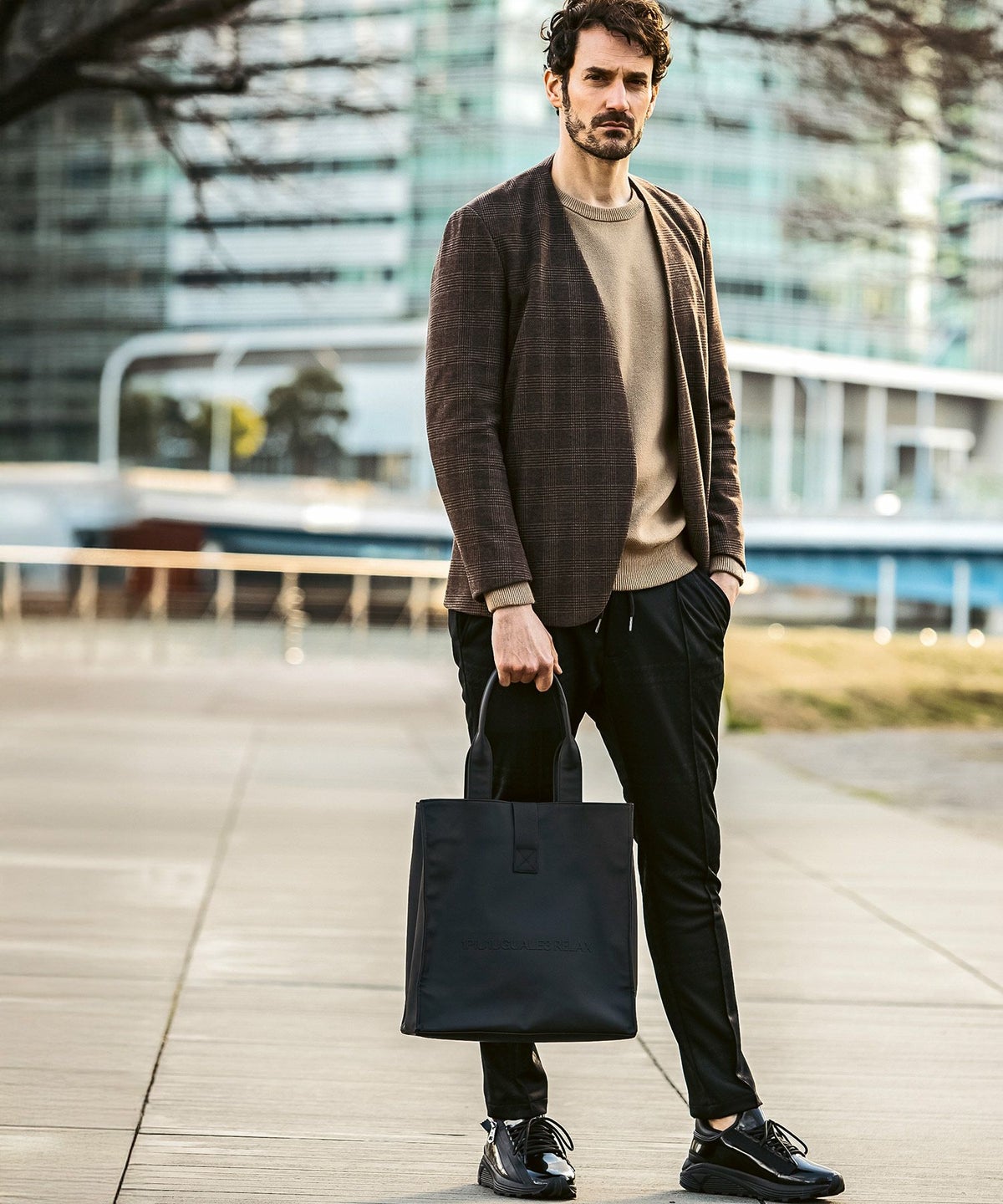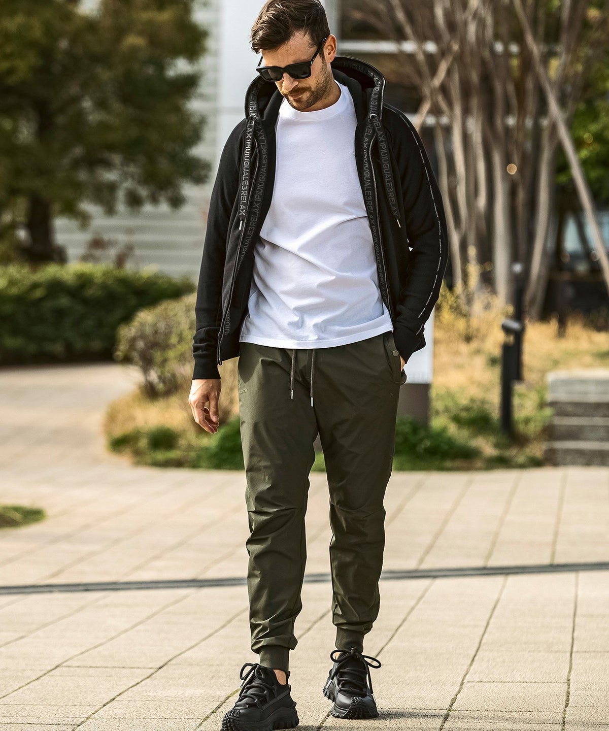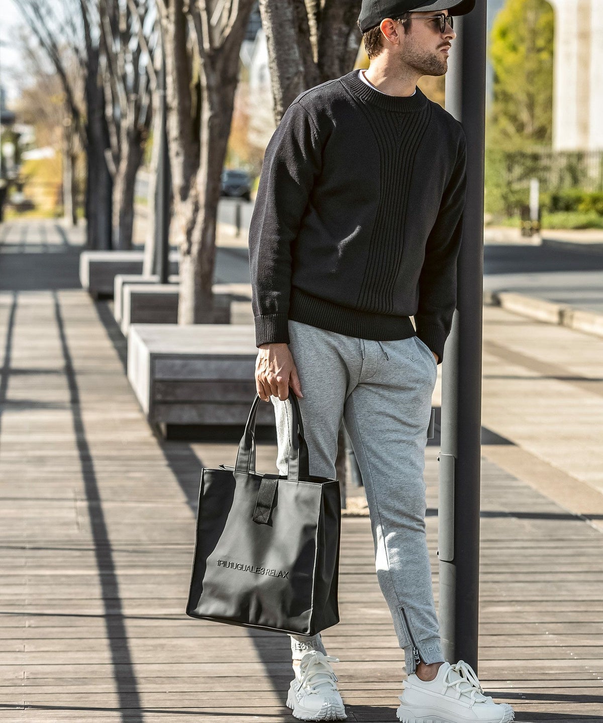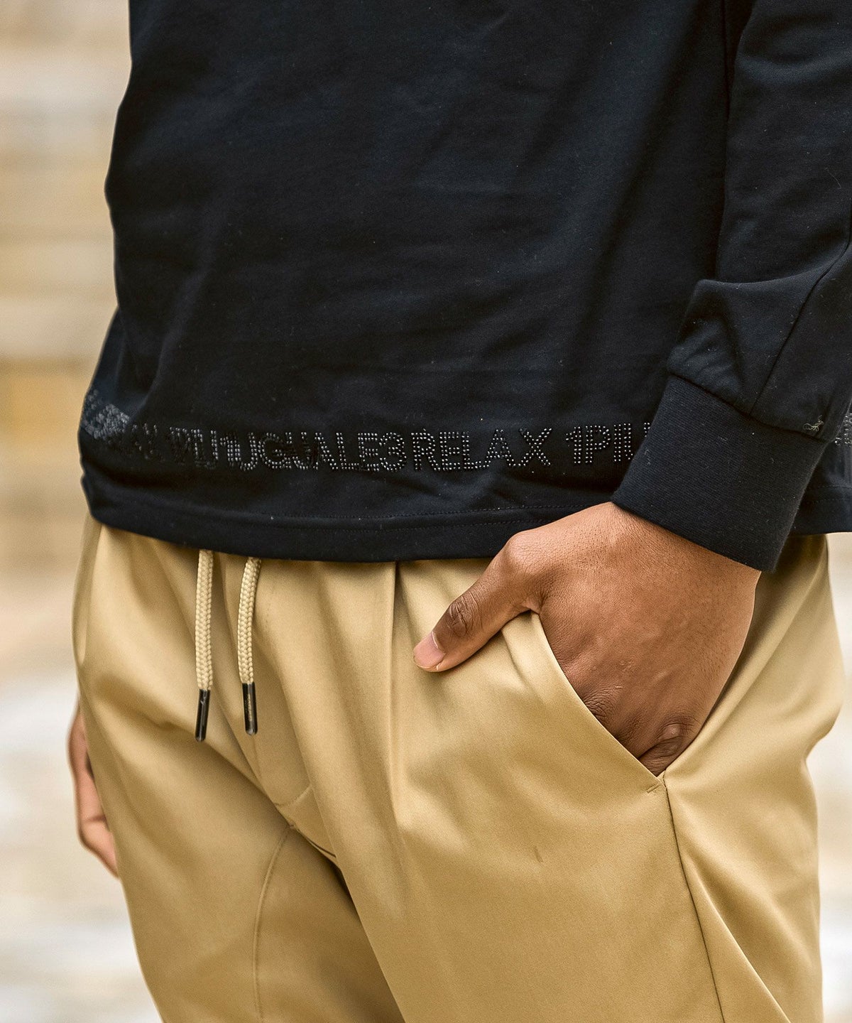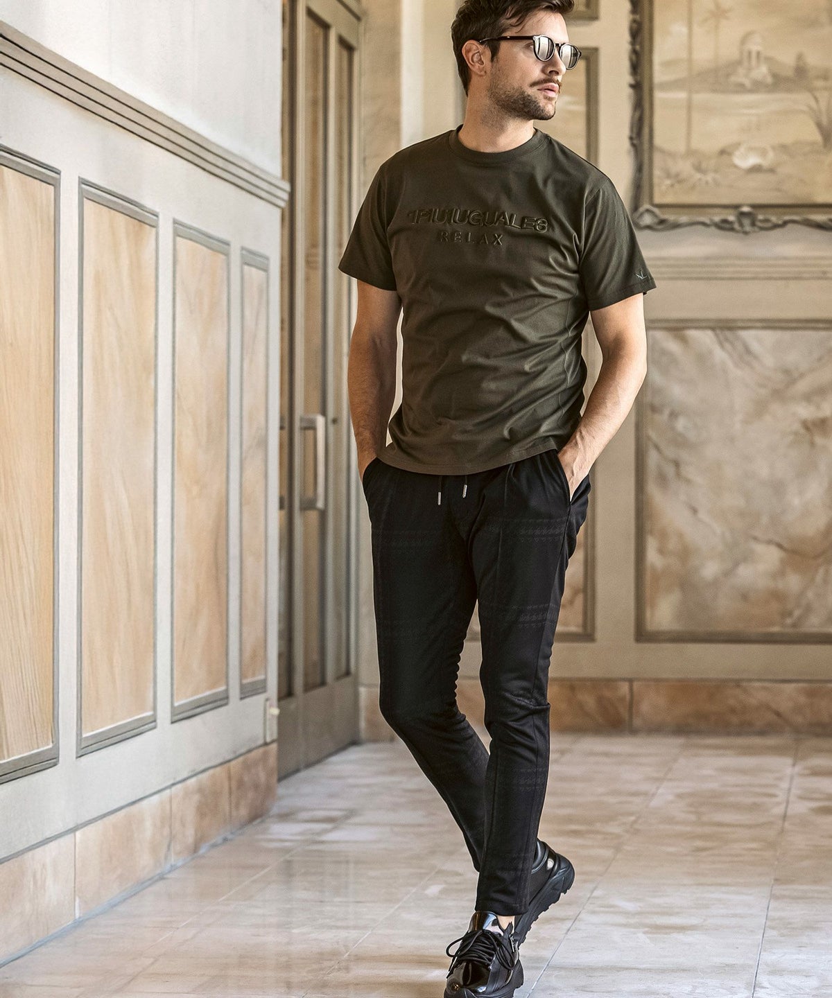 1PIU1UGUALE3 RELAX(ウノピゥウノウグァーレトレ リラックス)ブラックジャガードジョガーパンツ