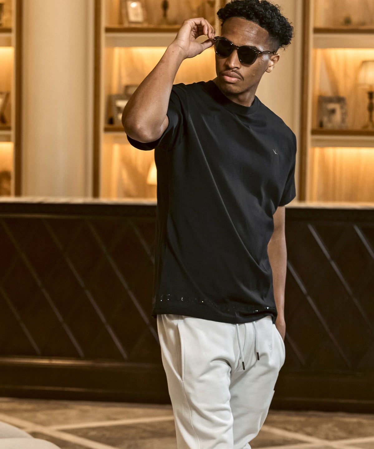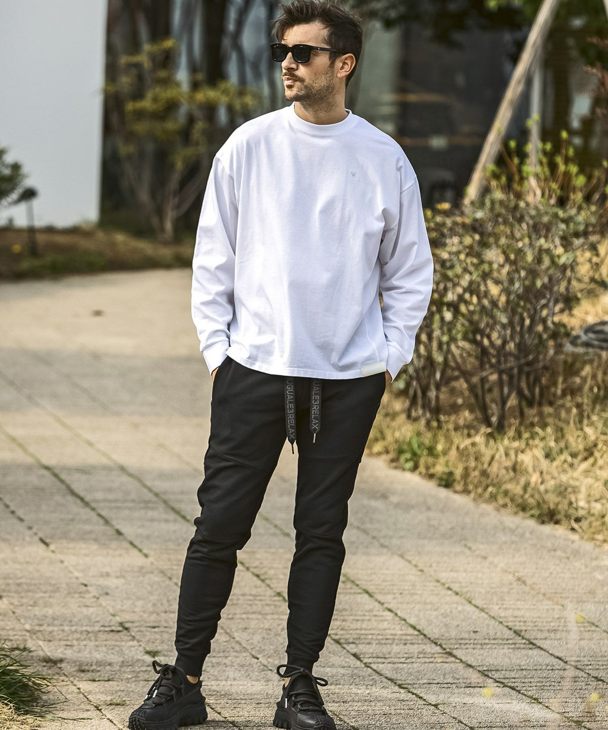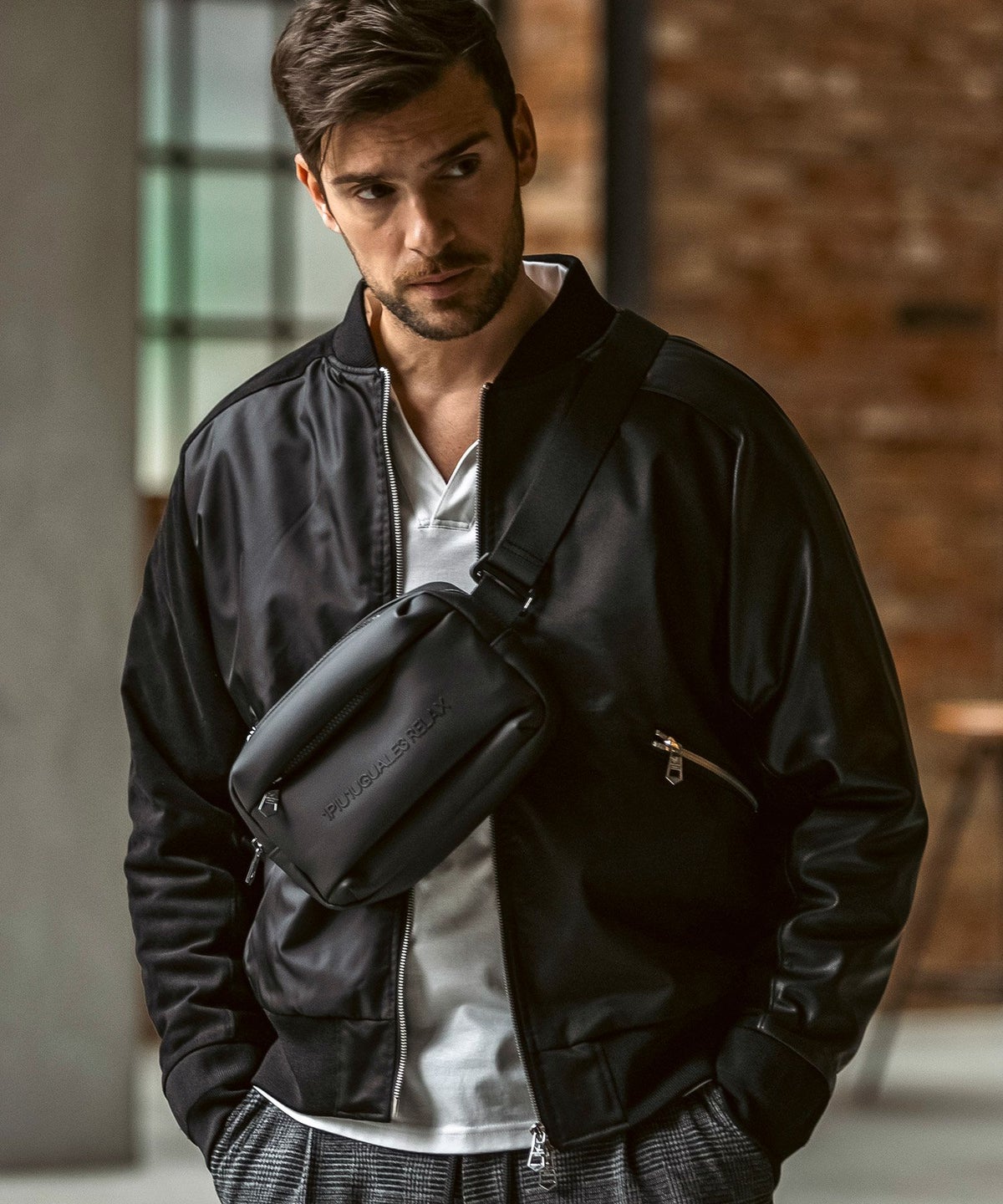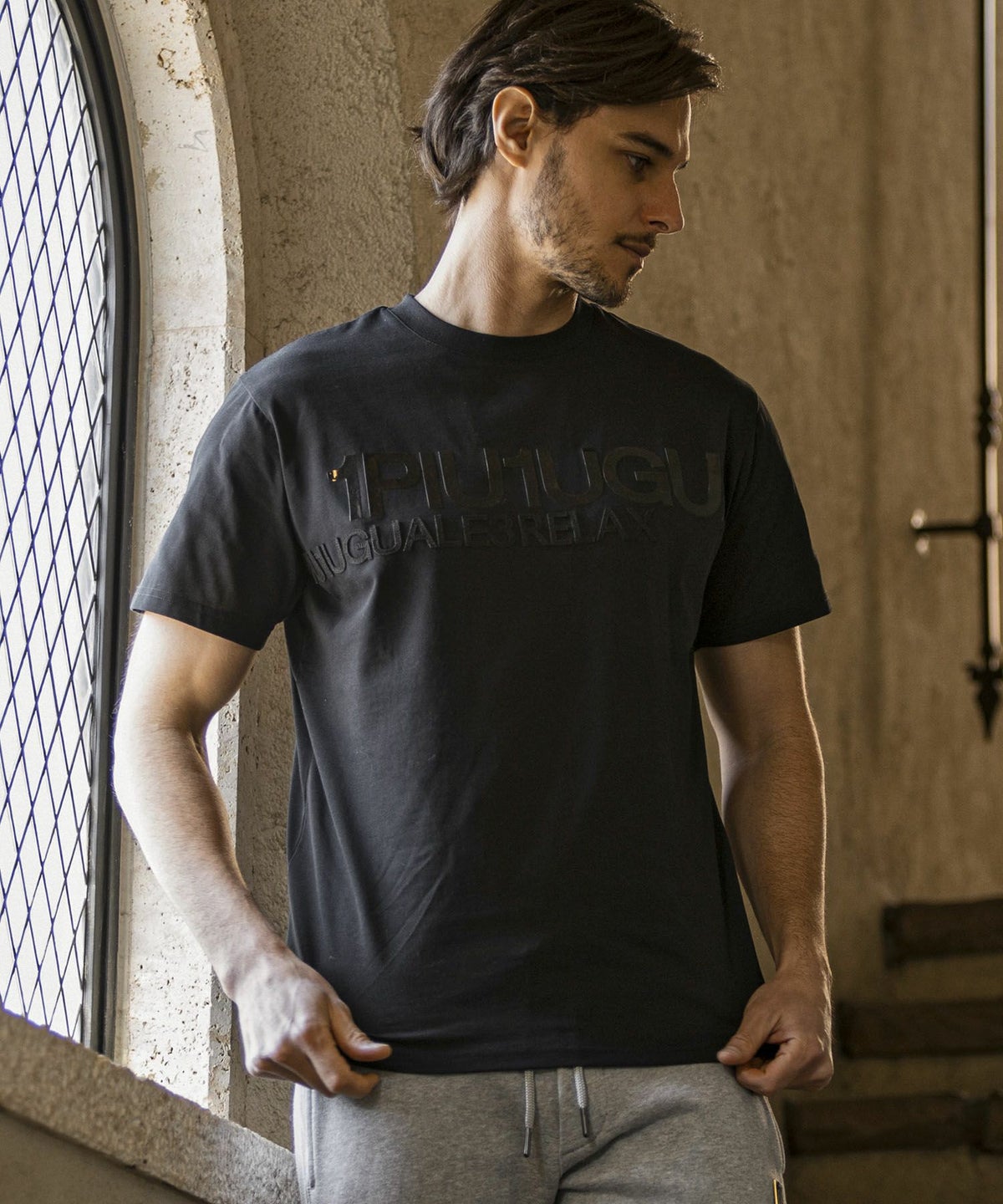 1PIU1UGUALE3 RELAX(ウノピゥウノウグァーレトレ リラックス)ブラックジャガードジョガーパンツ