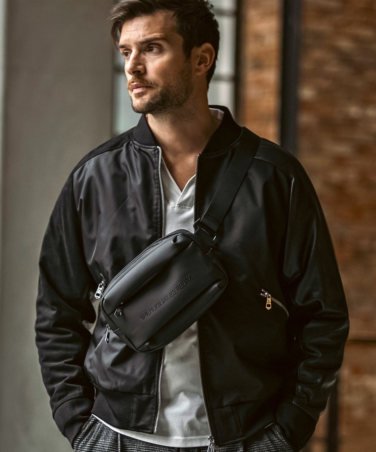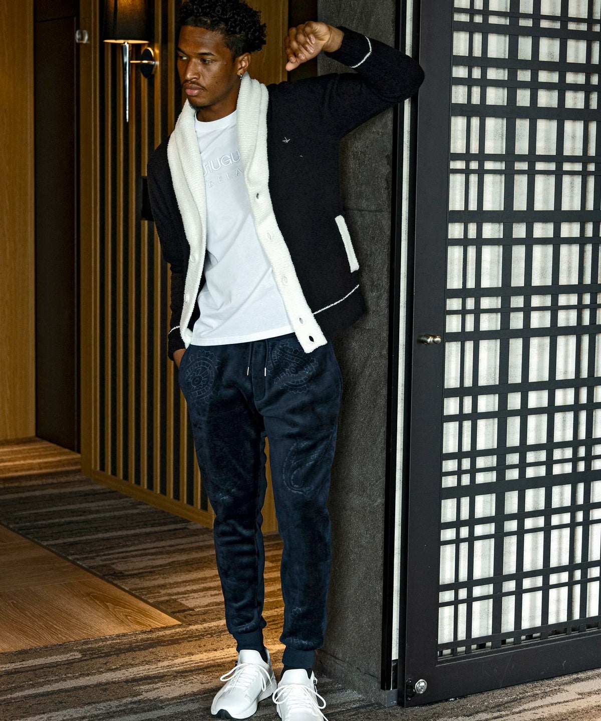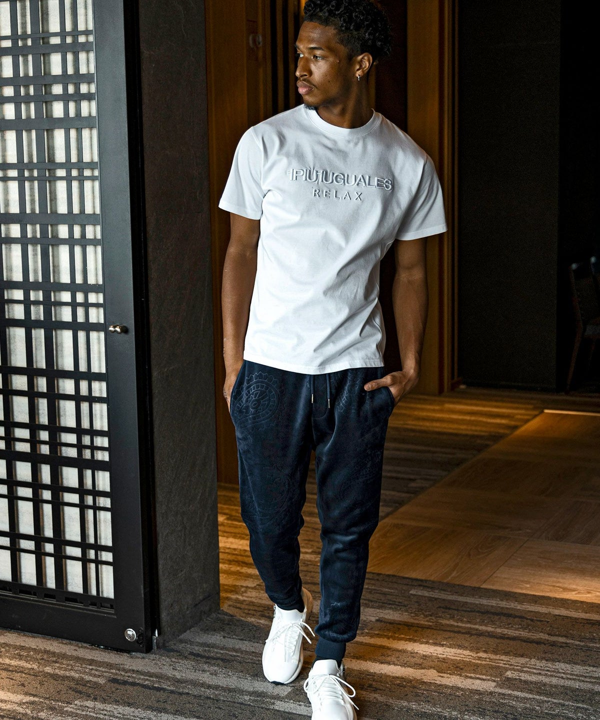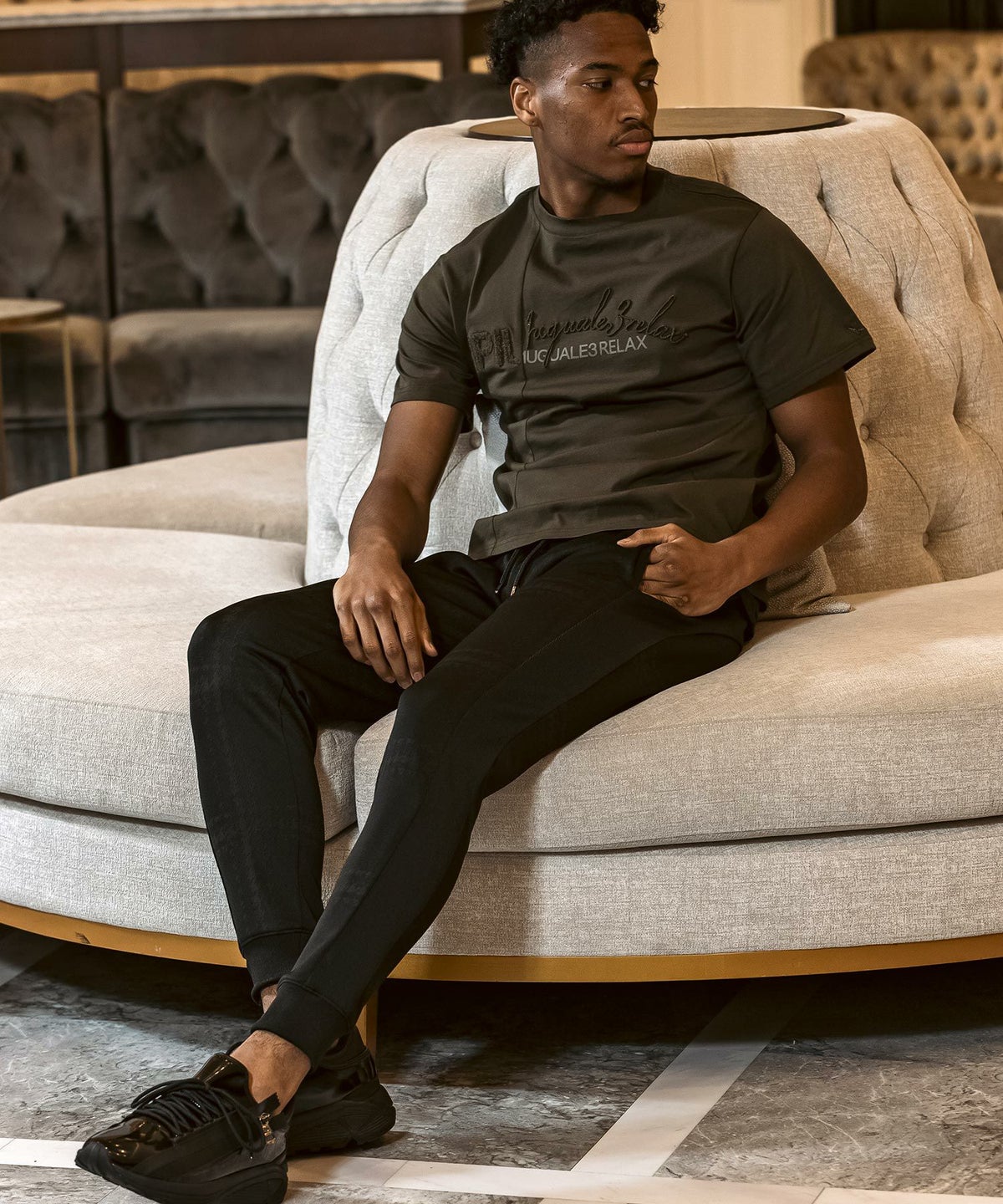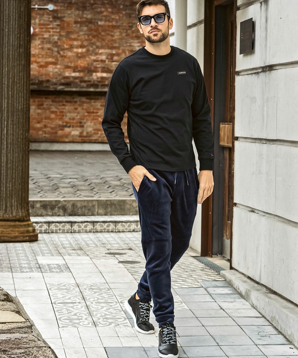 1PIU1UGUALE3 RELAX(ウノピゥウノウグァーレトレ リラックス)ブラックジャガードジョガーパンツ