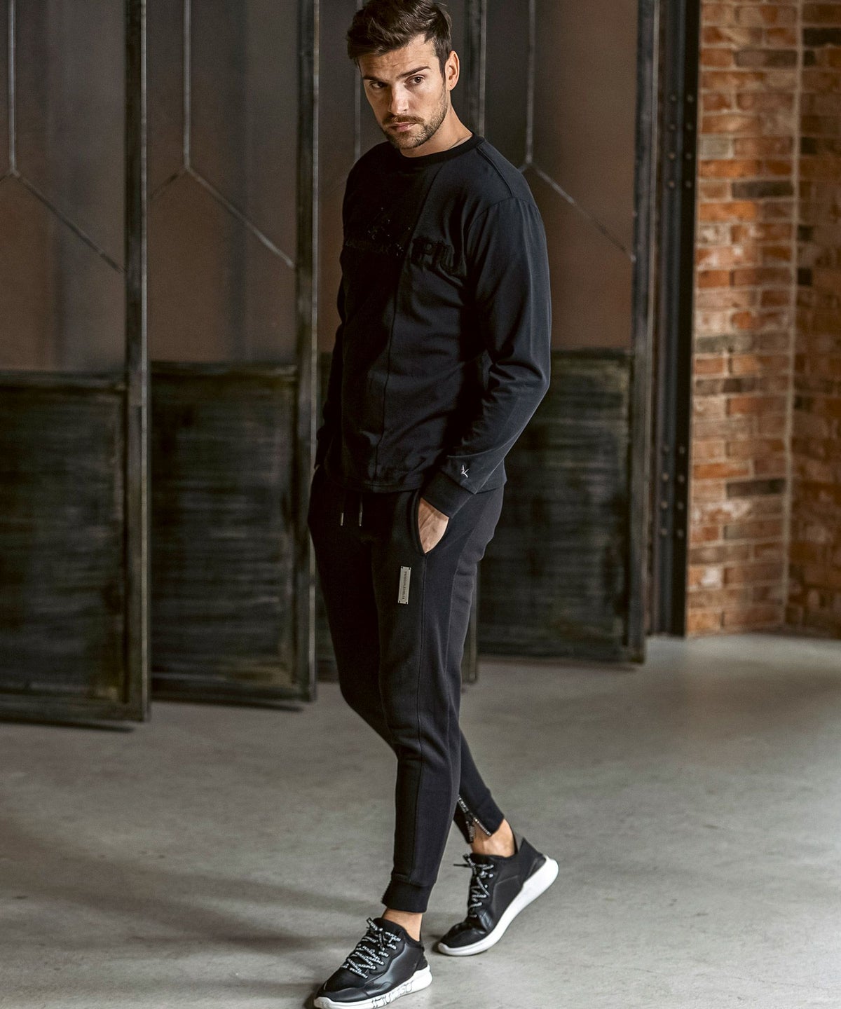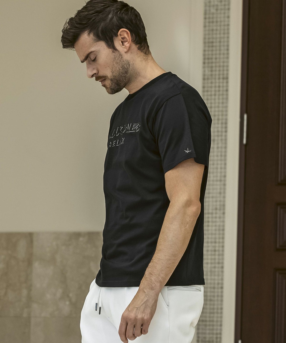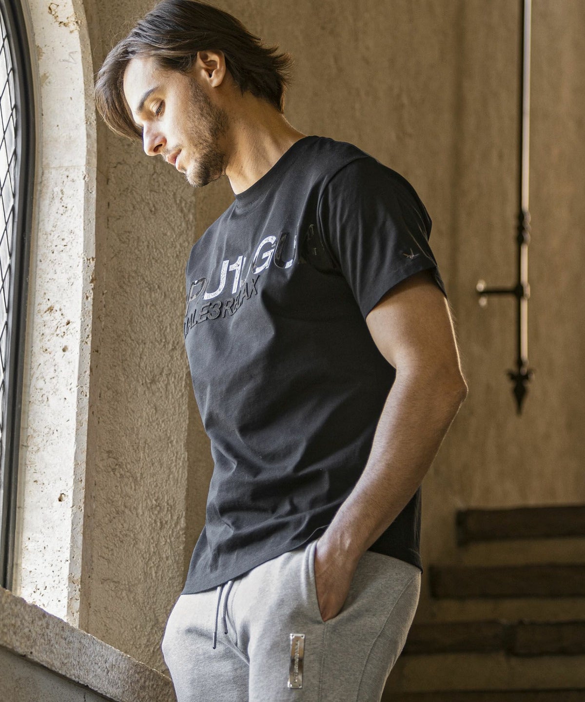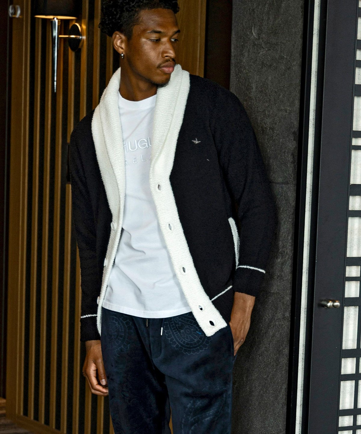 1PIU1UGUALE3 RELAX(ウノピゥウノウグァーレトレ リラックス)ブラックジャガードジョガーパンツ