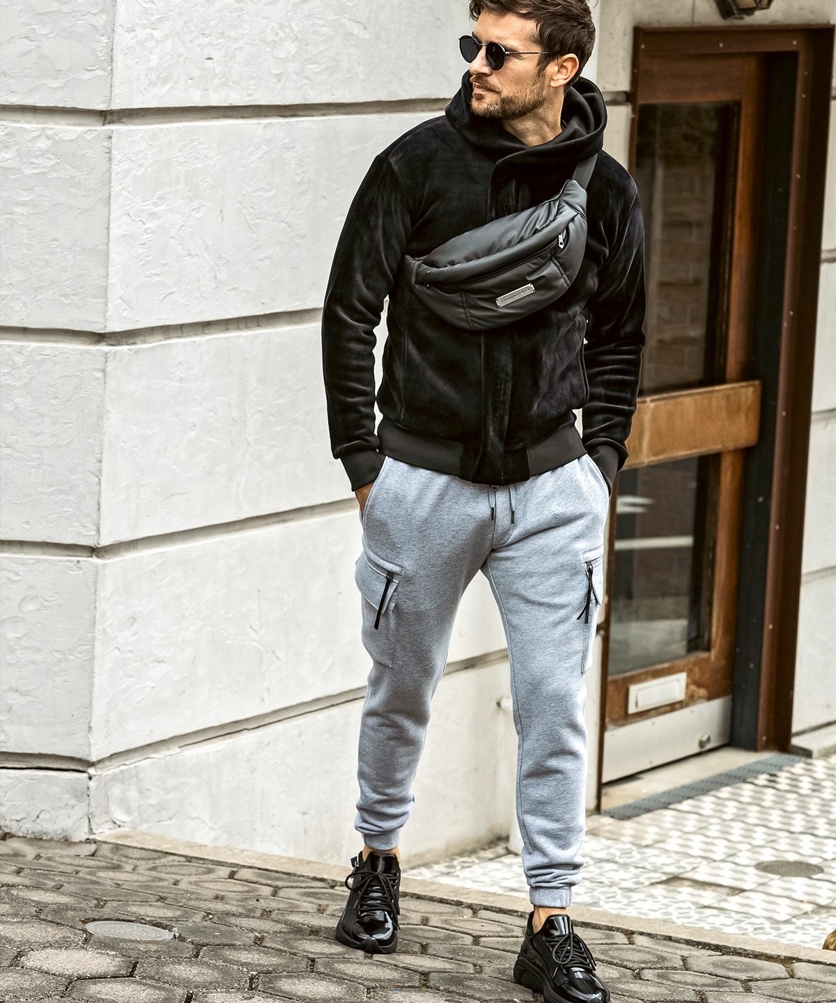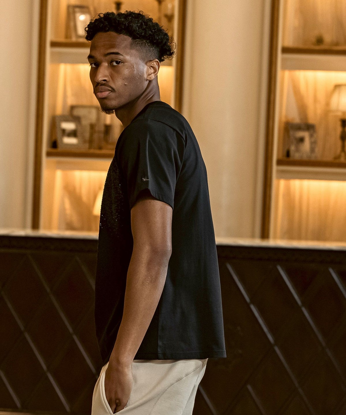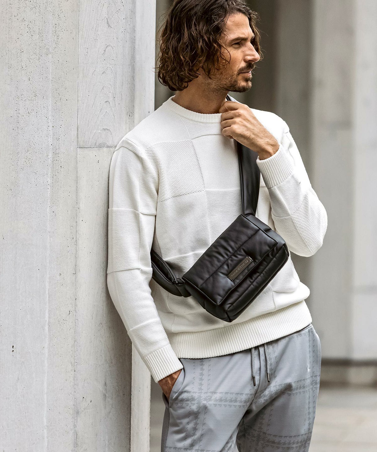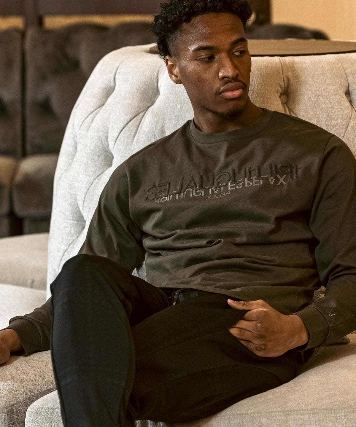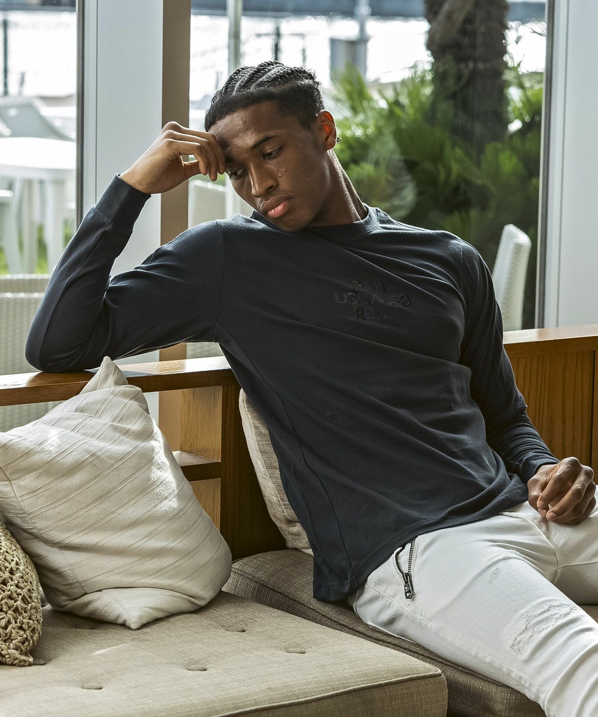 1PIU1UGUALE3 RELAX(ウノピゥウノウグァーレトレ リラックス)ブラックジャガードジョガーパンツ