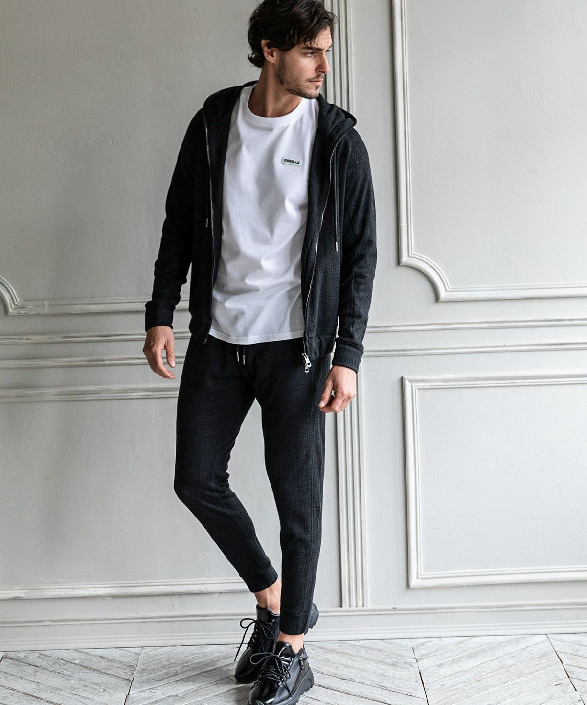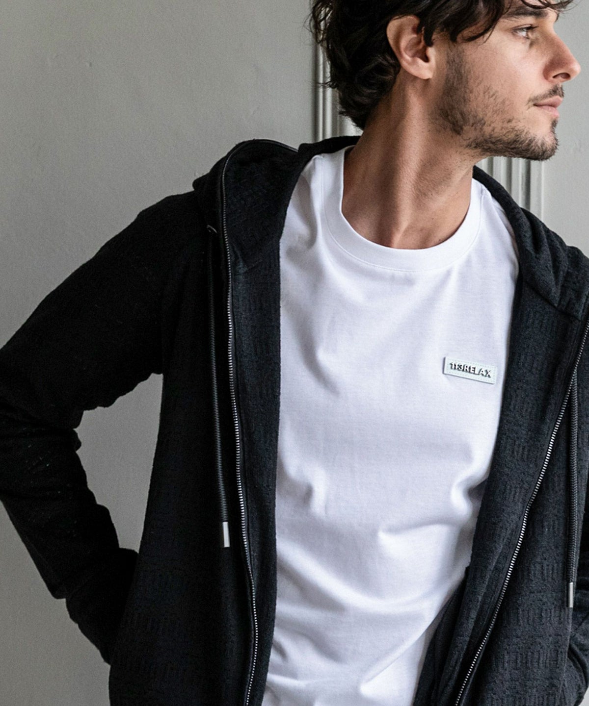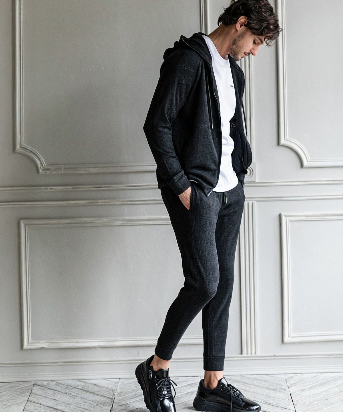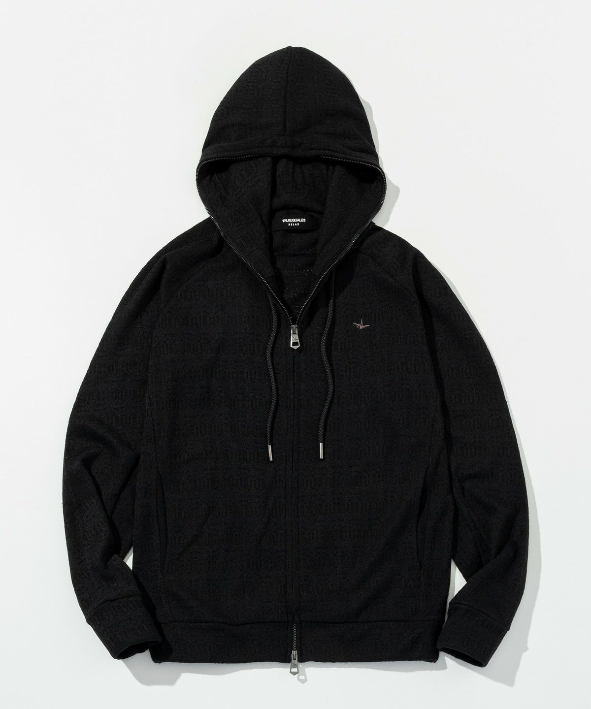 1PIU1UGUALE3 RELAX(ウノピゥウノウグァーレトレ リラックス)ブラックジャガードジップアップパーカー