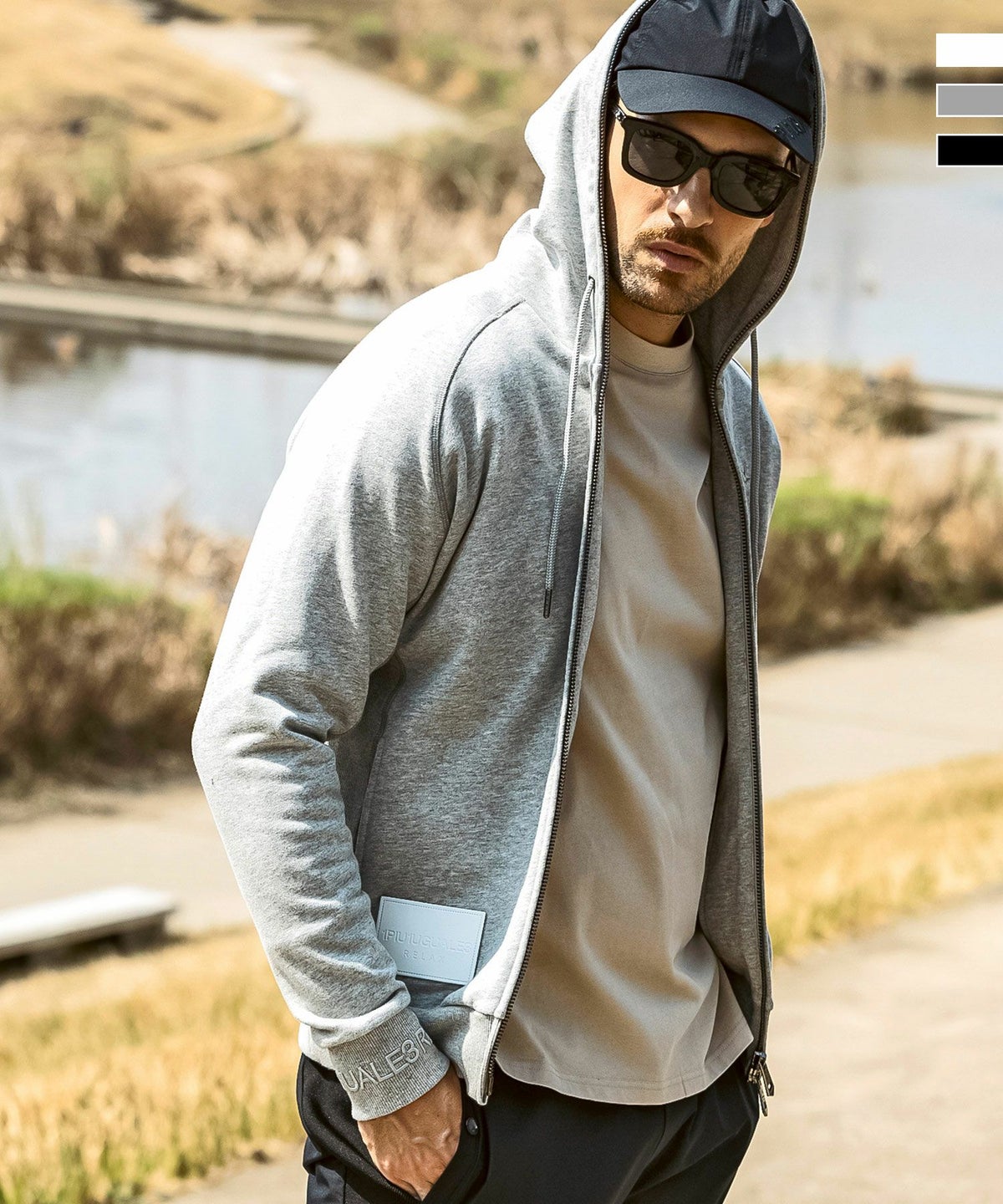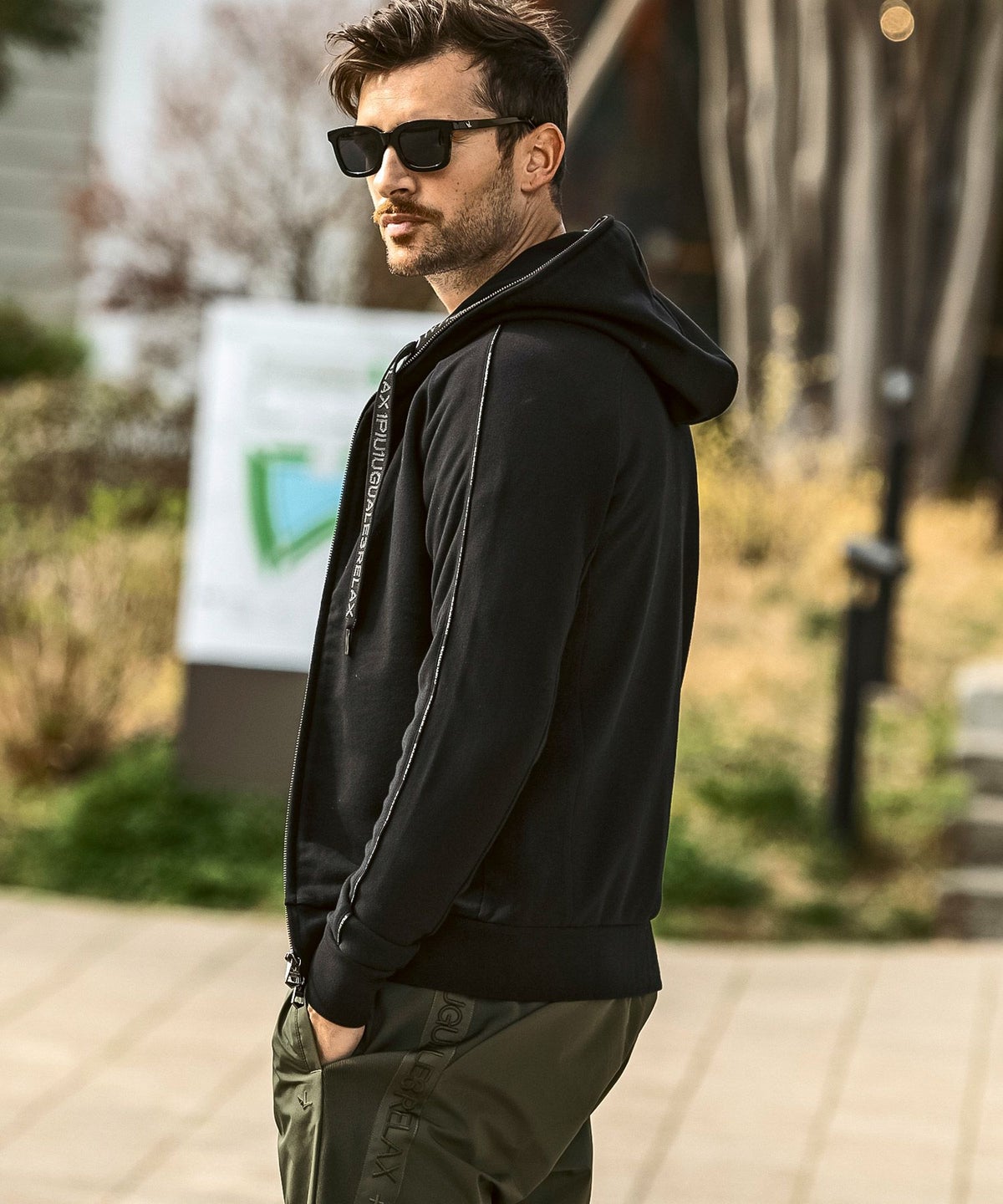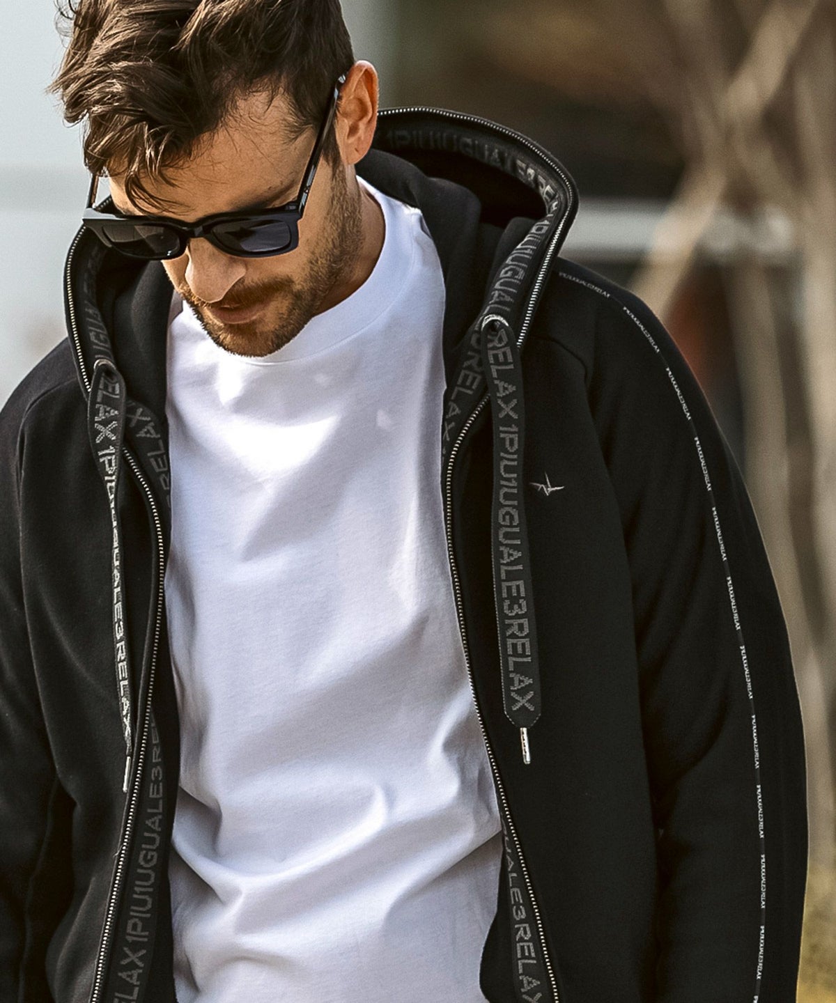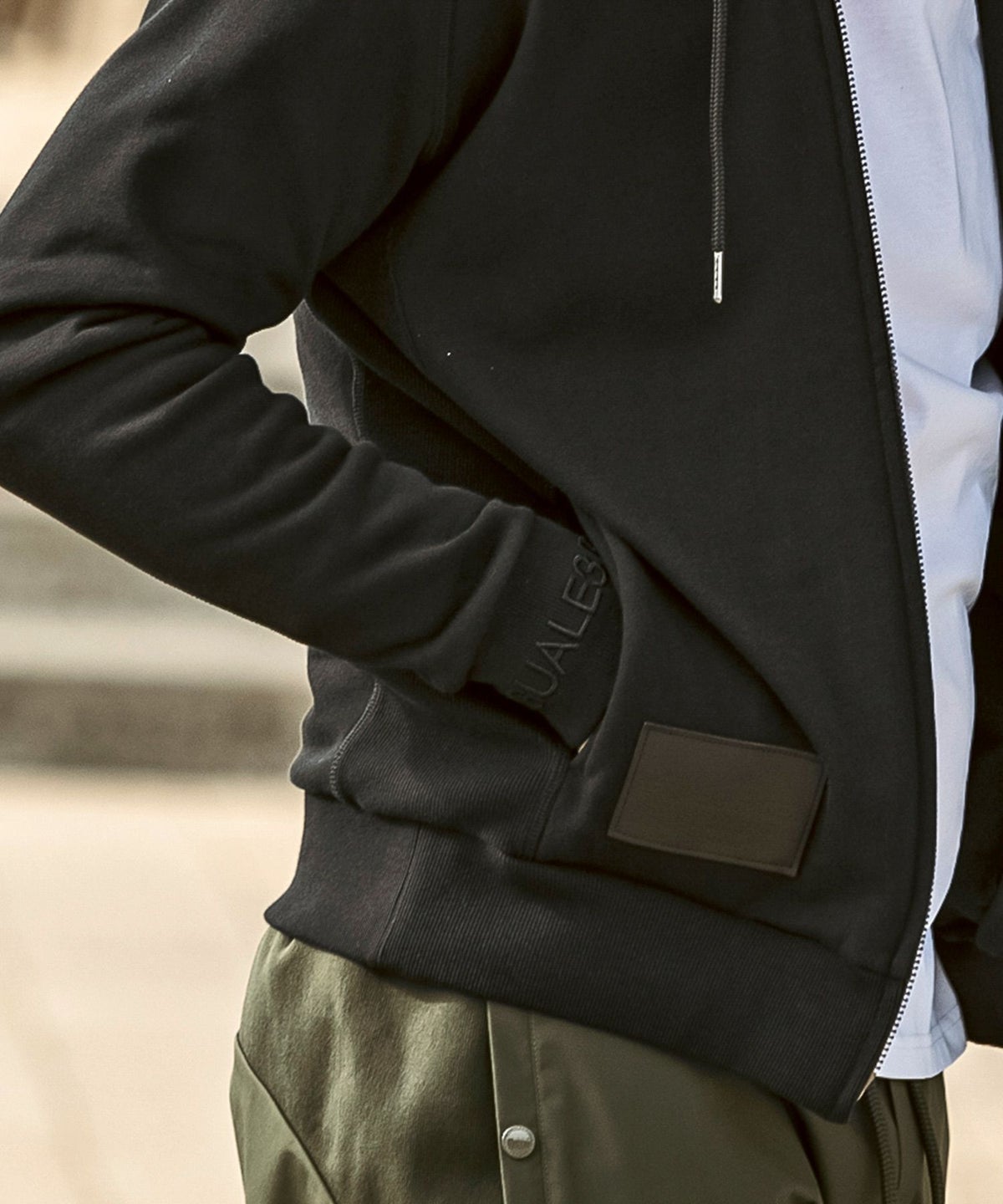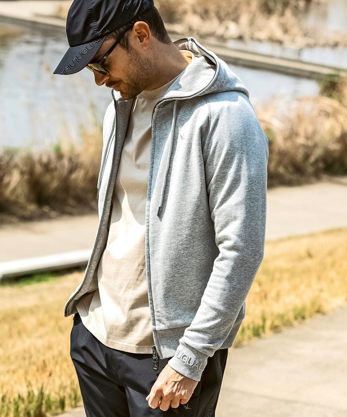 1PIU1UGUALE3 RELAX(ウノピゥウノウグァーレトレ リラックス)ブラックジャガードジップアップパーカー