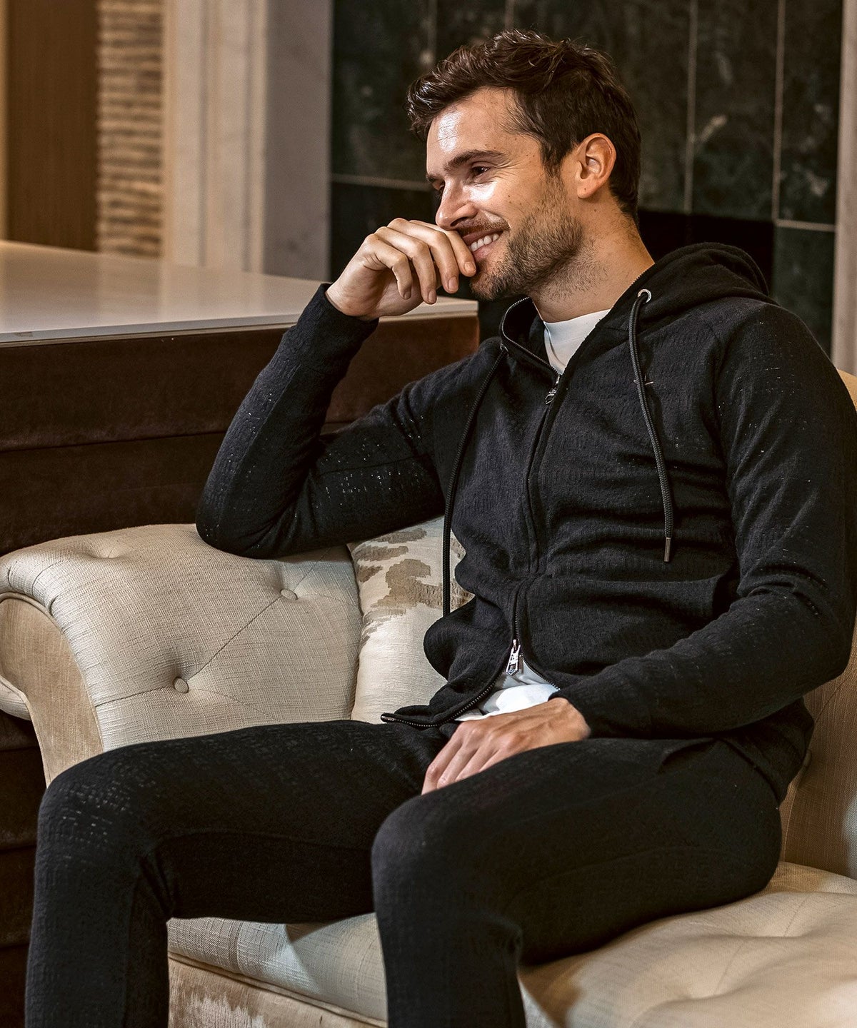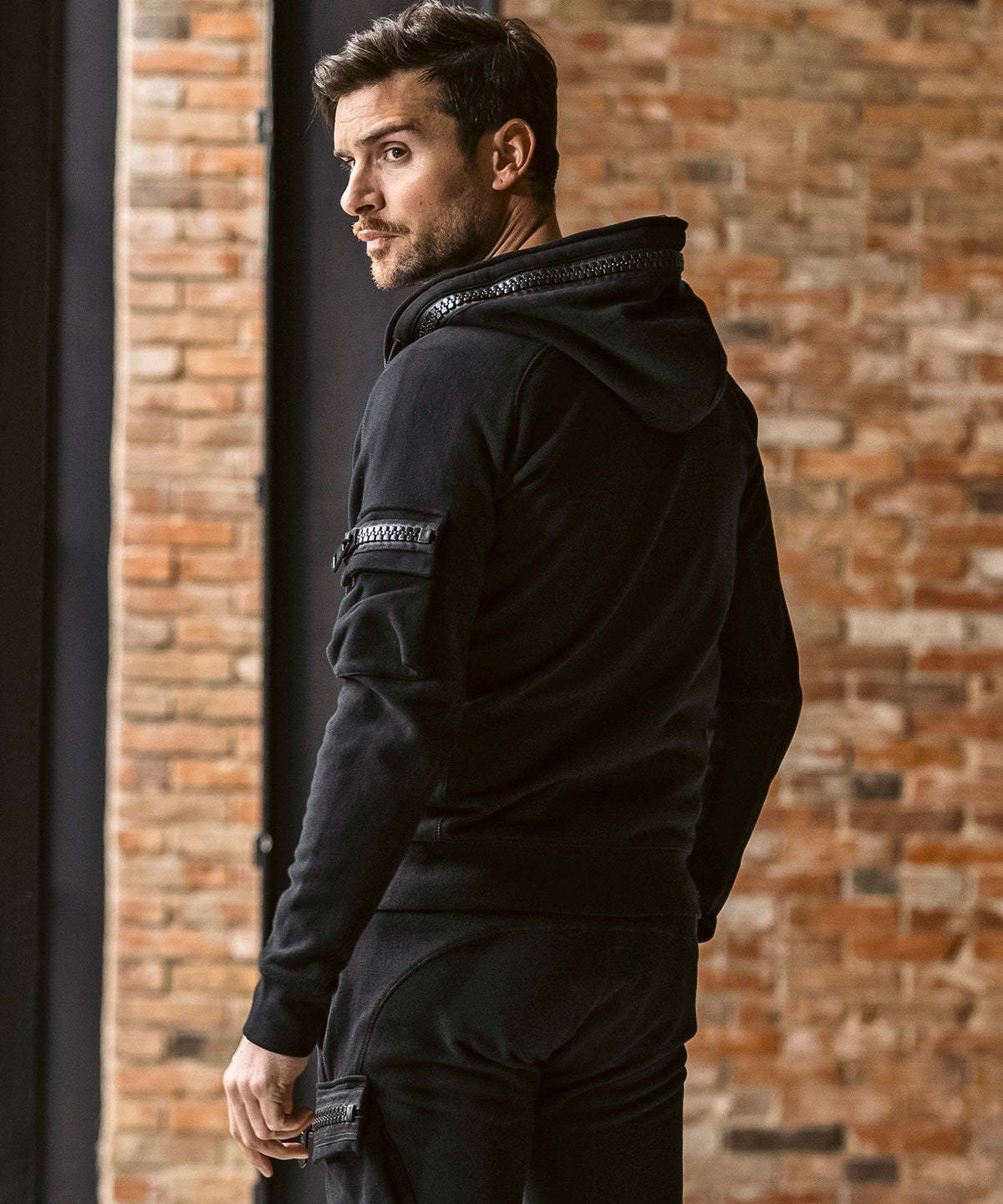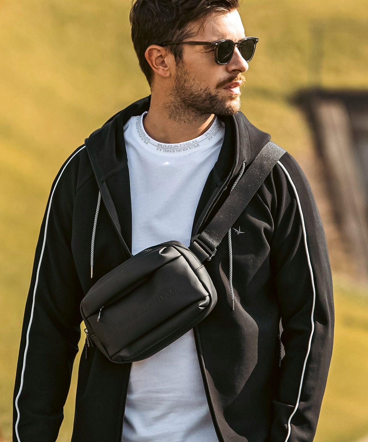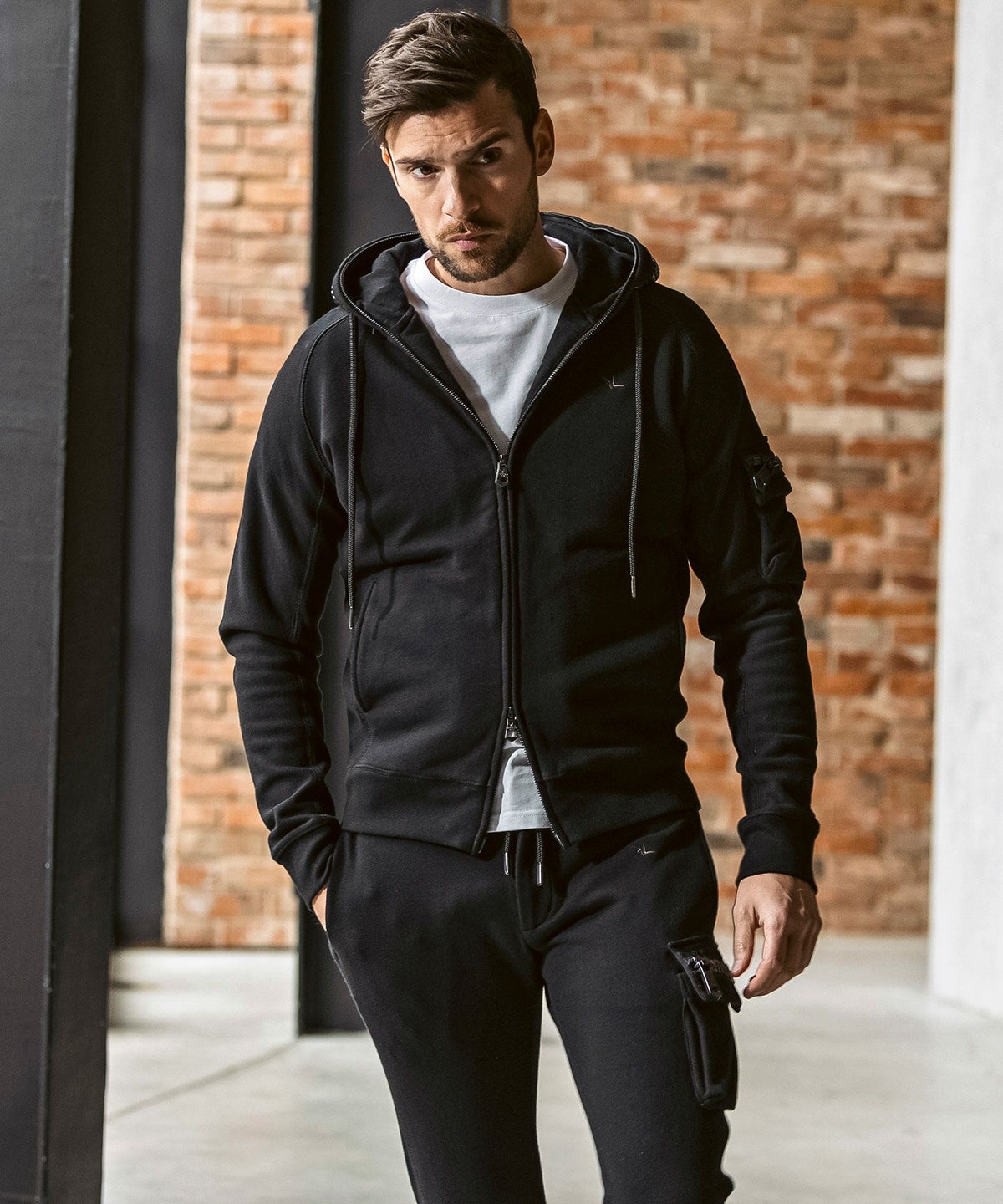 1PIU1UGUALE3 RELAX(ウノピゥウノウグァーレトレ リラックス)ブラックジャガードジップアップパーカー