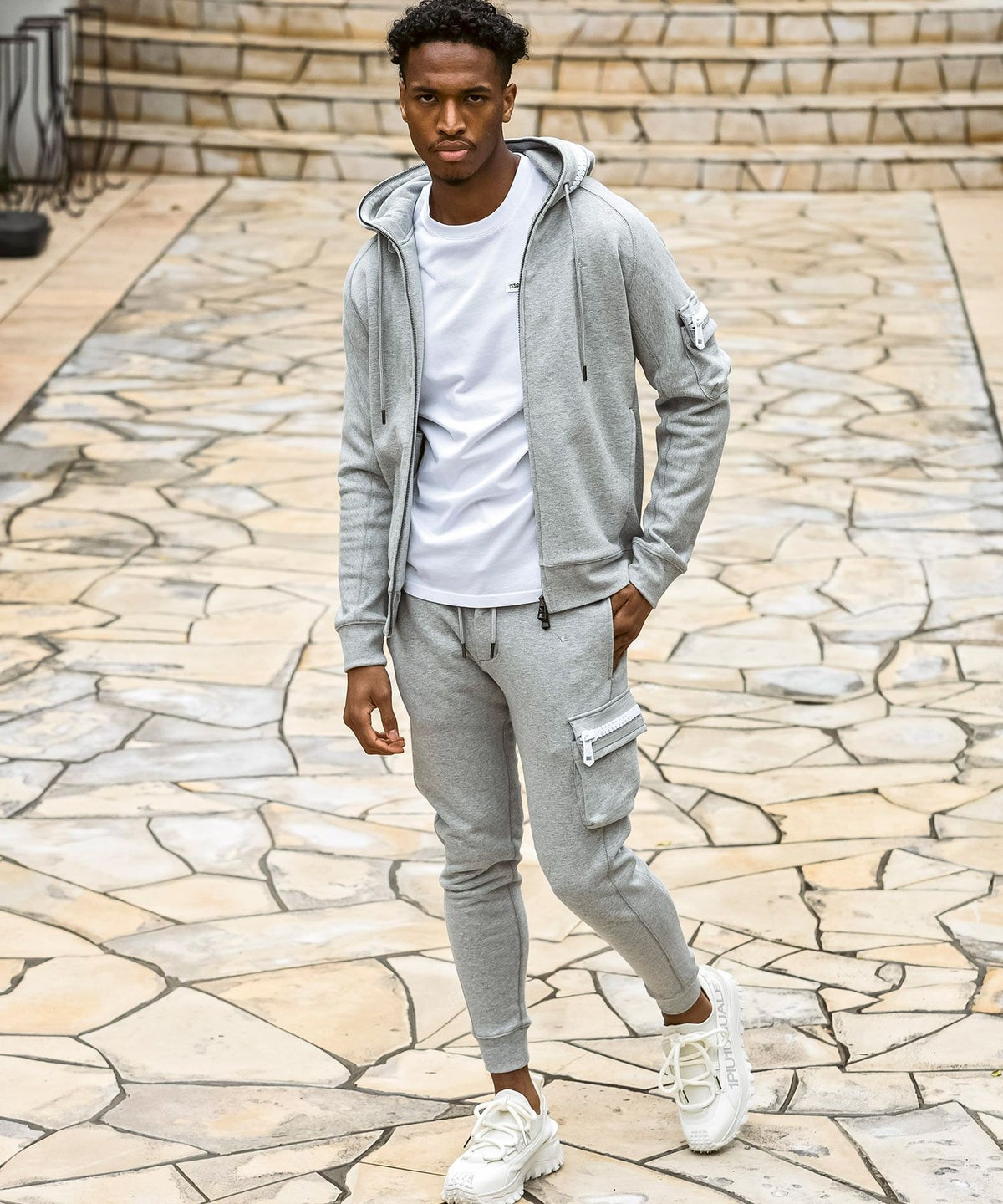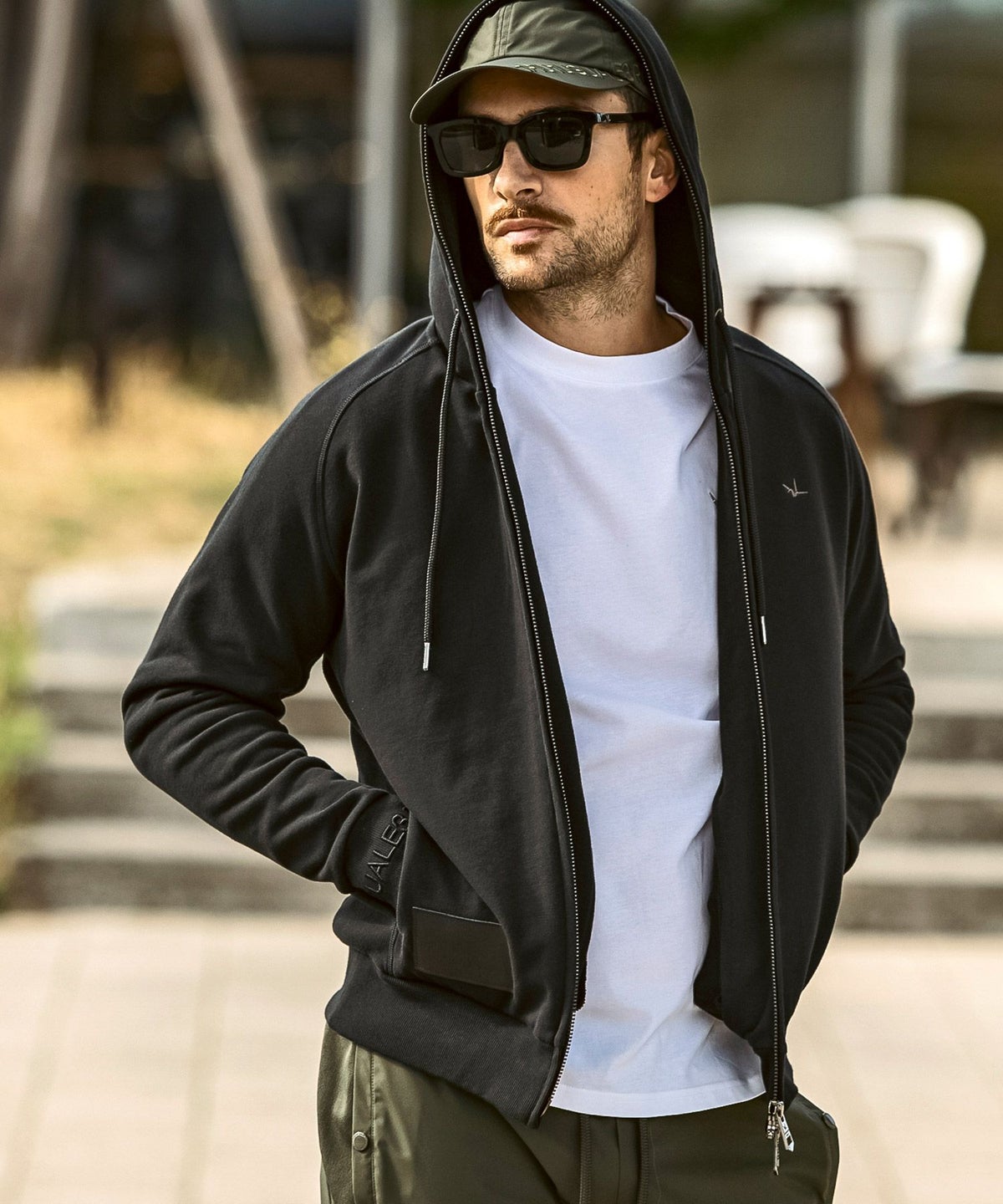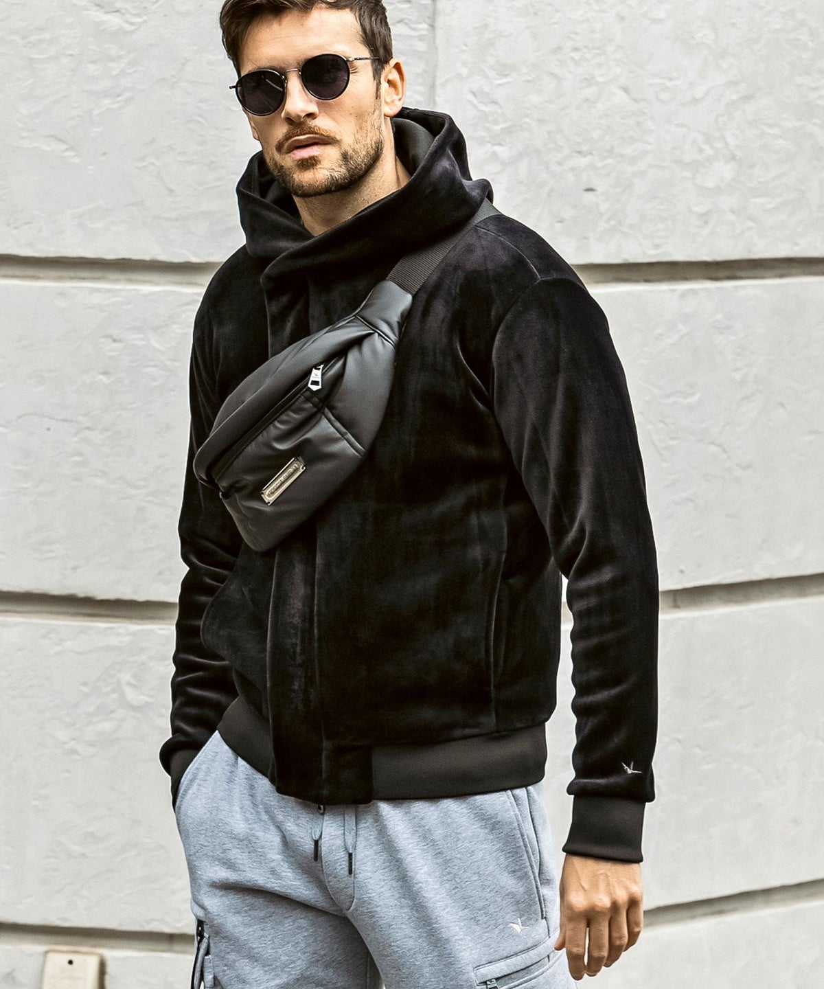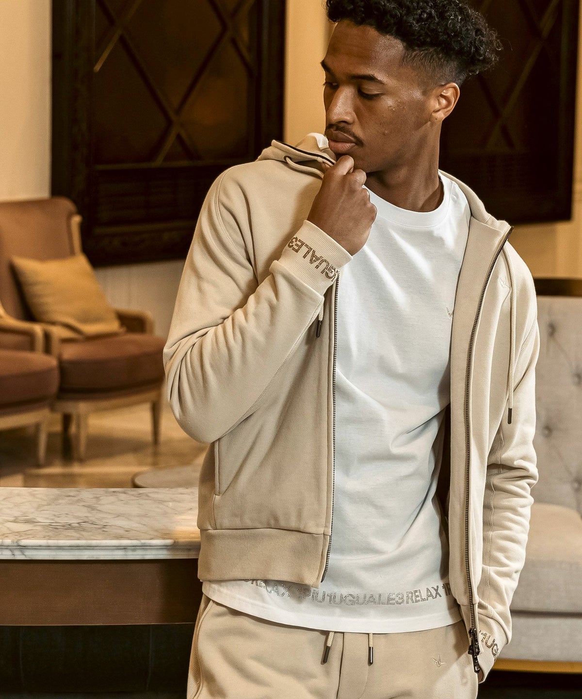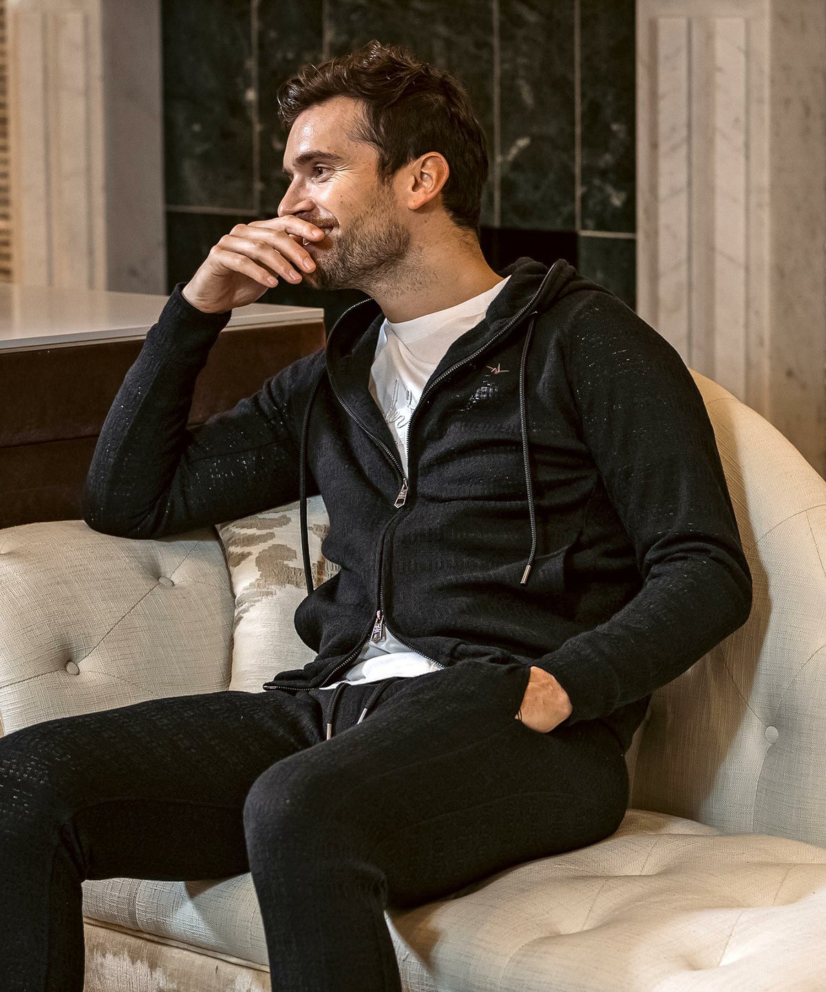 1PIU1UGUALE3 RELAX(ウノピゥウノウグァーレトレ リラックス)ブラックジャガードジップアップパーカー