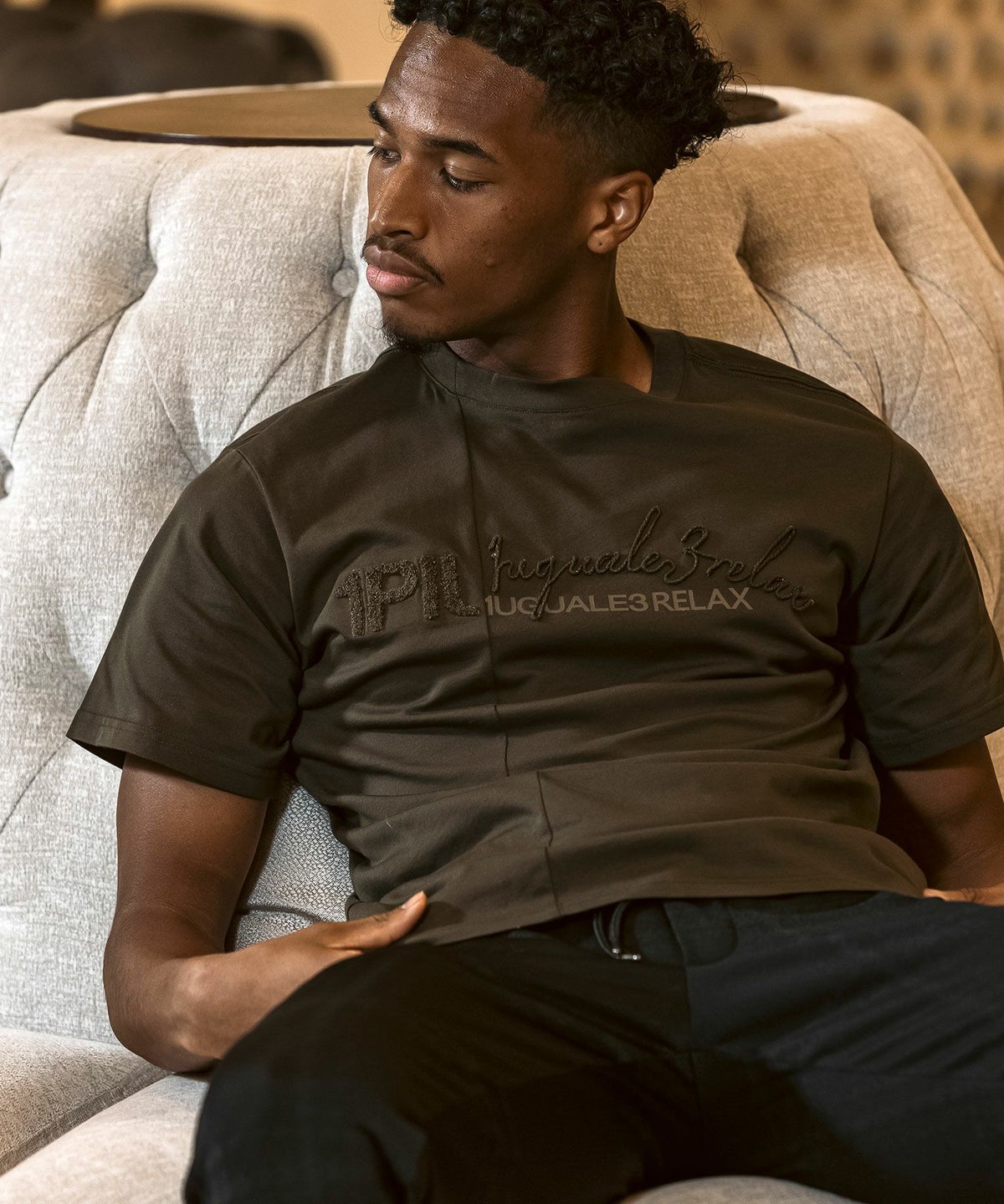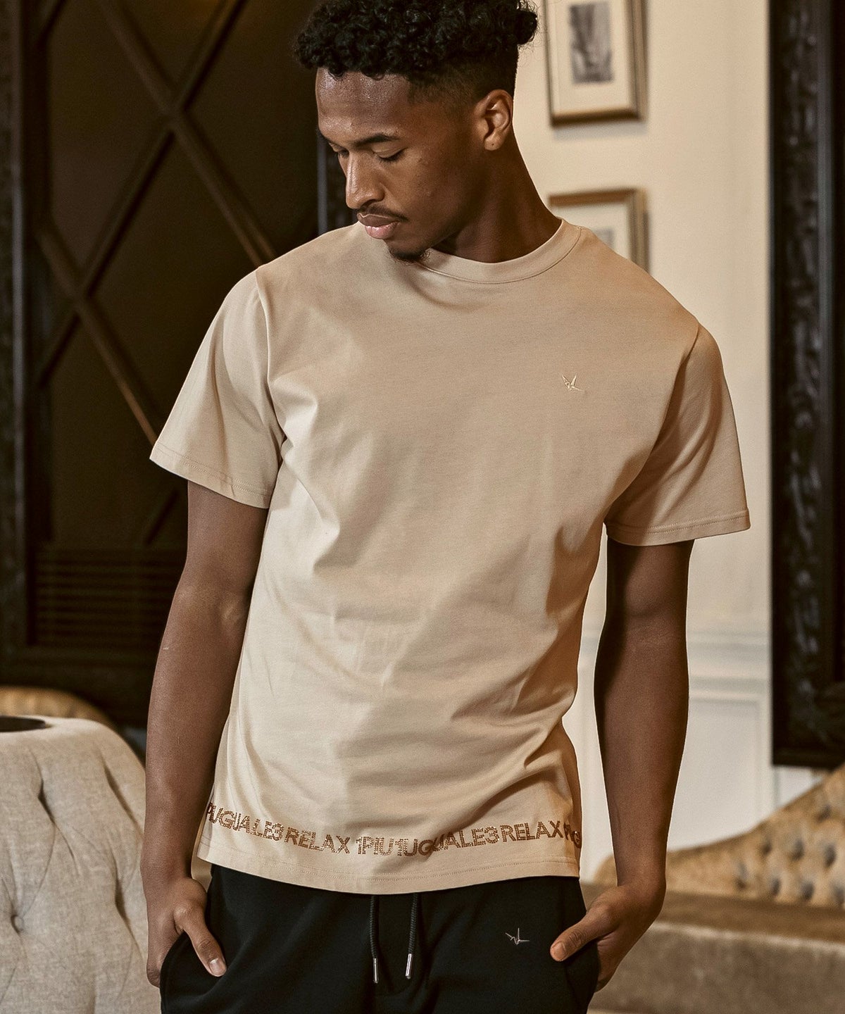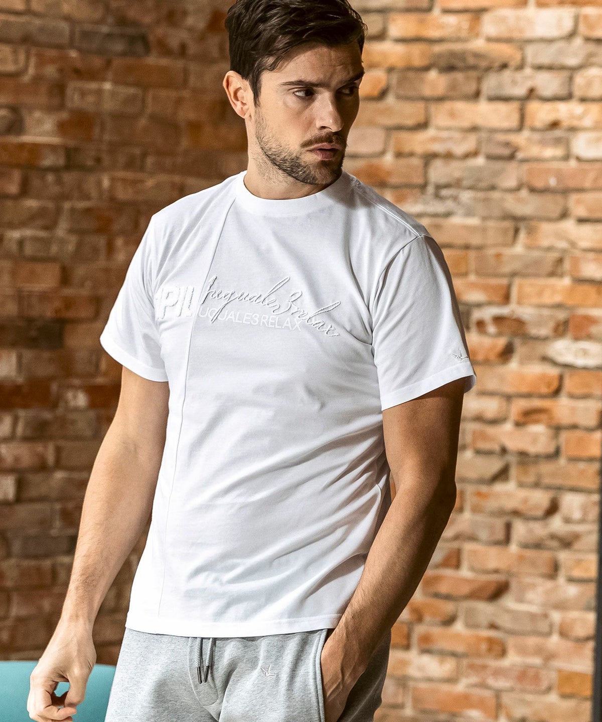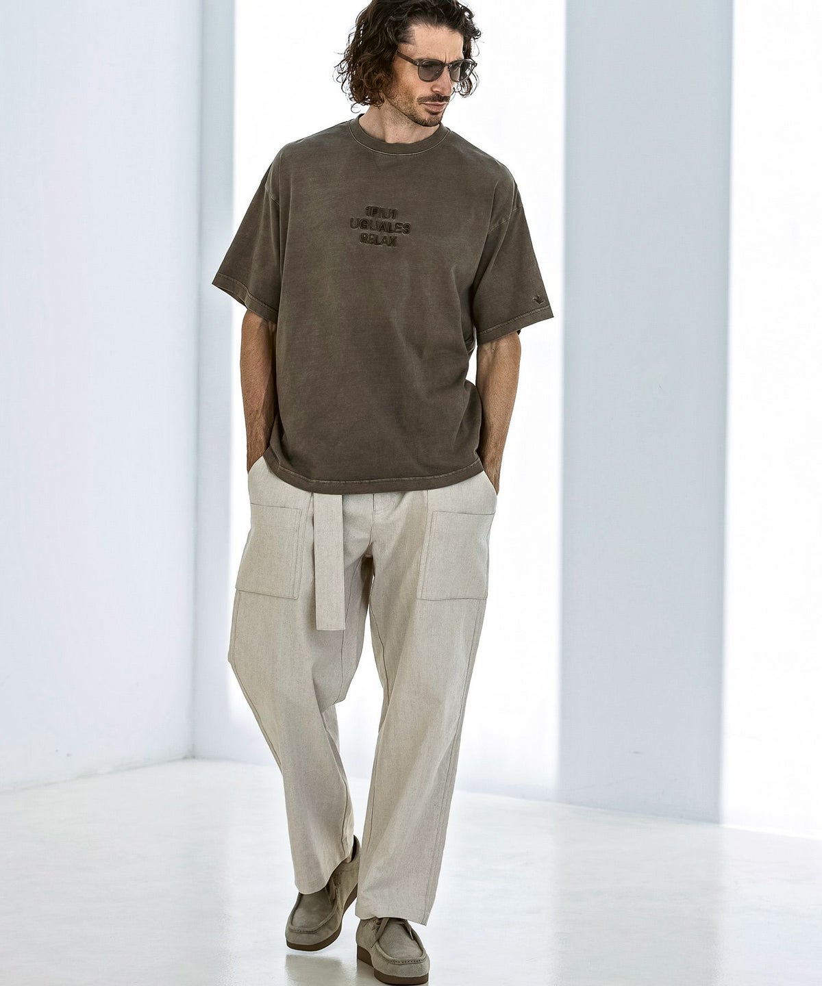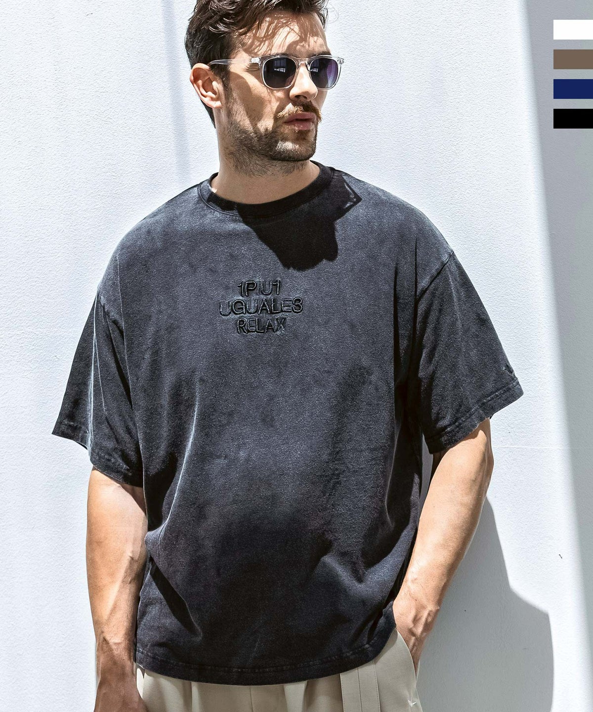 1PIU1UGUALE3 RELAX(ウノピゥウノウグァーレトレ リラックス)ピグメント刺繍ロゴ半袖Tシャツ