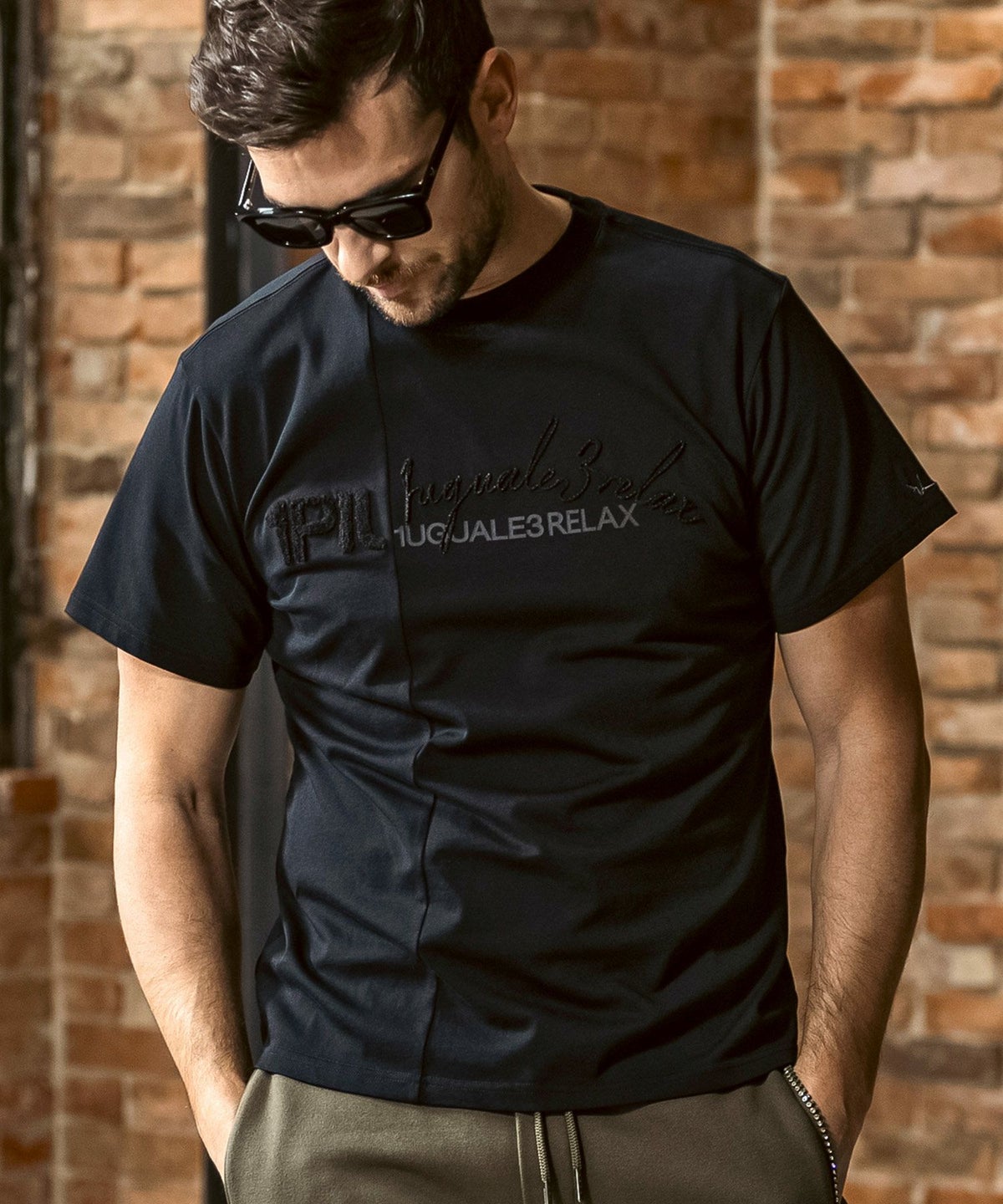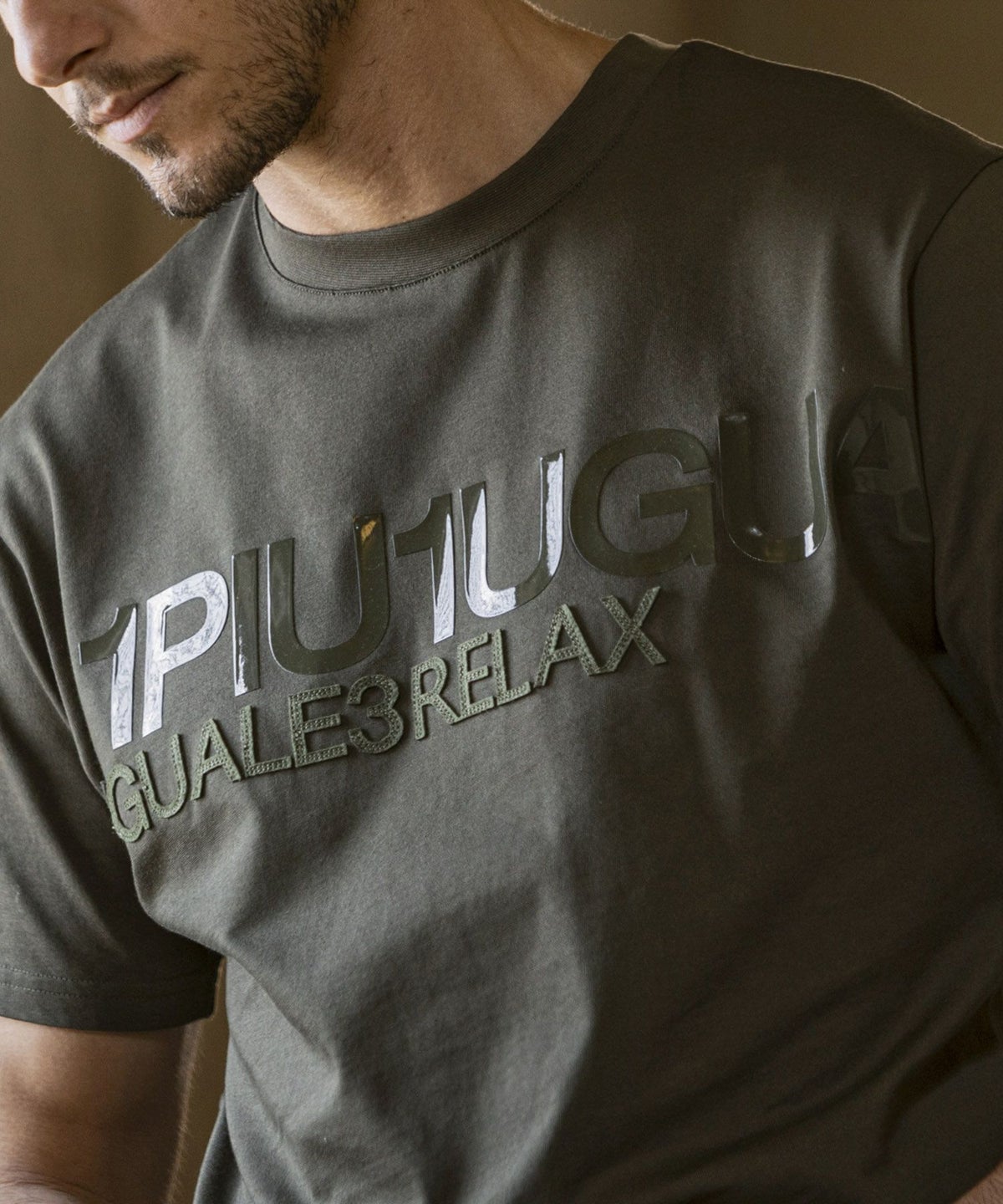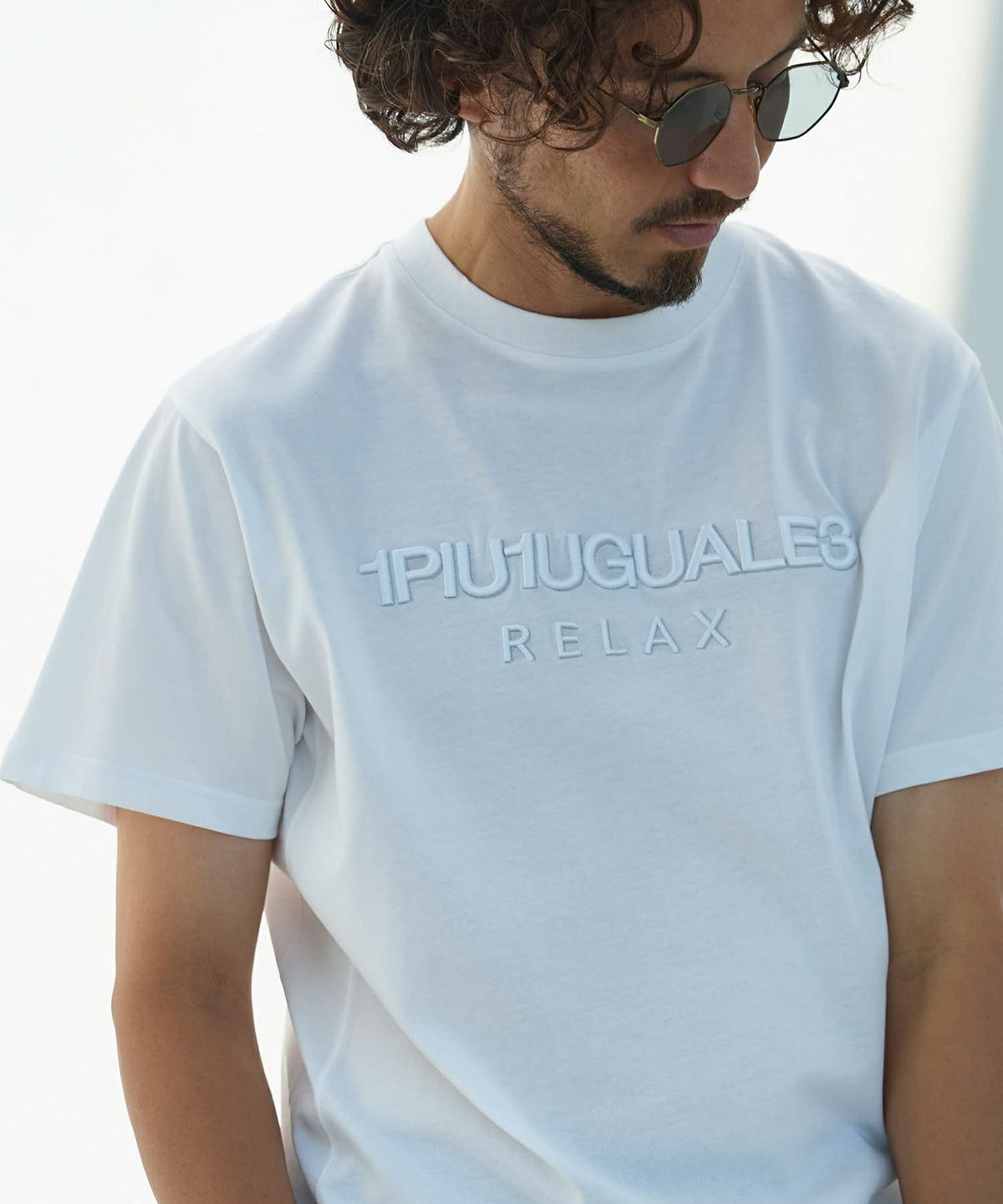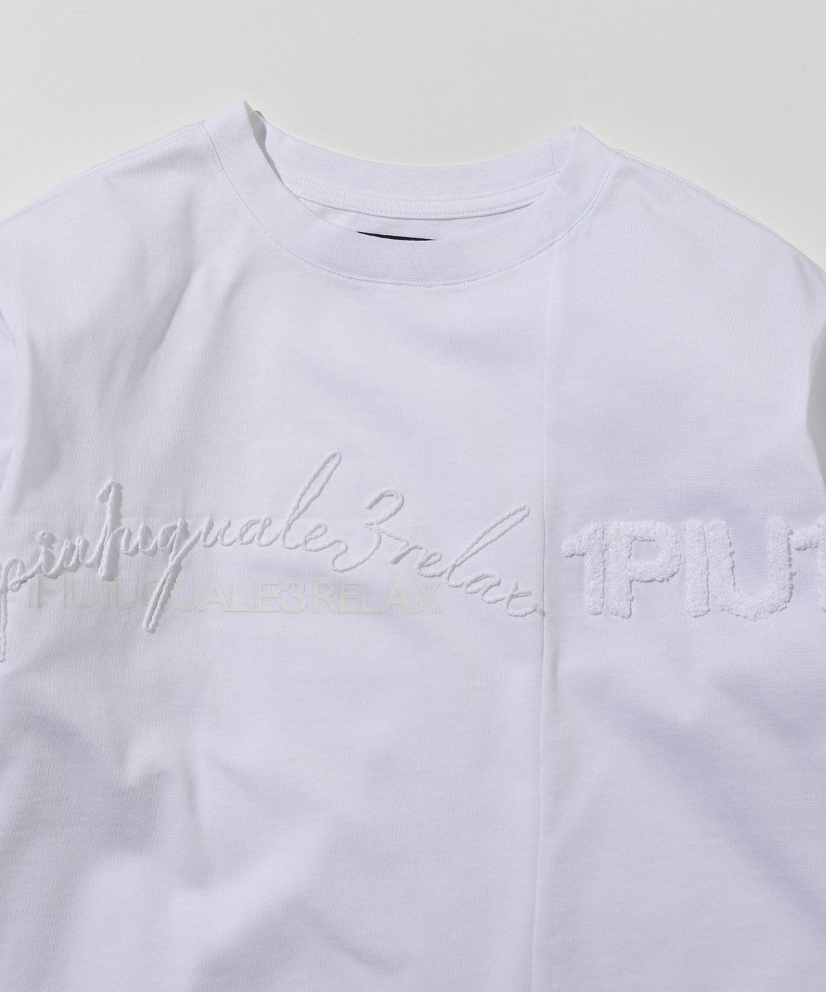 1PIU1UGUALE3 RELAX(ウノピゥウノウグァーレトレ リラックス)コンビネーションロゴ半袖Tシャツ