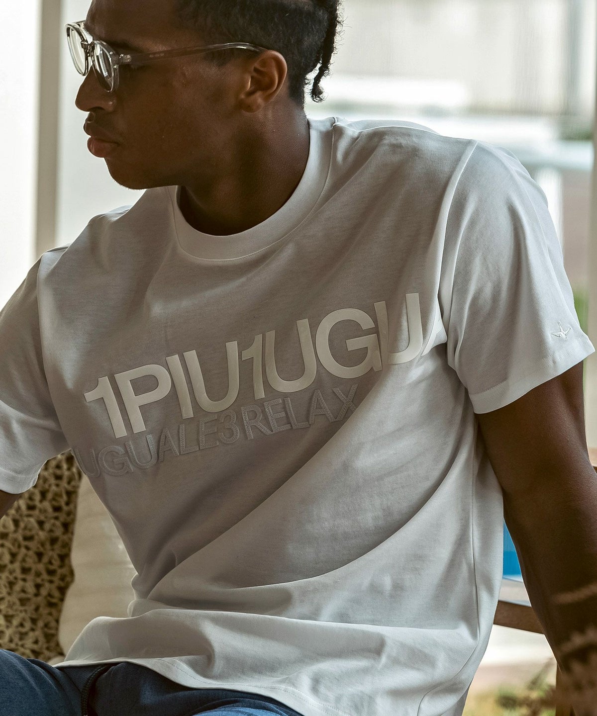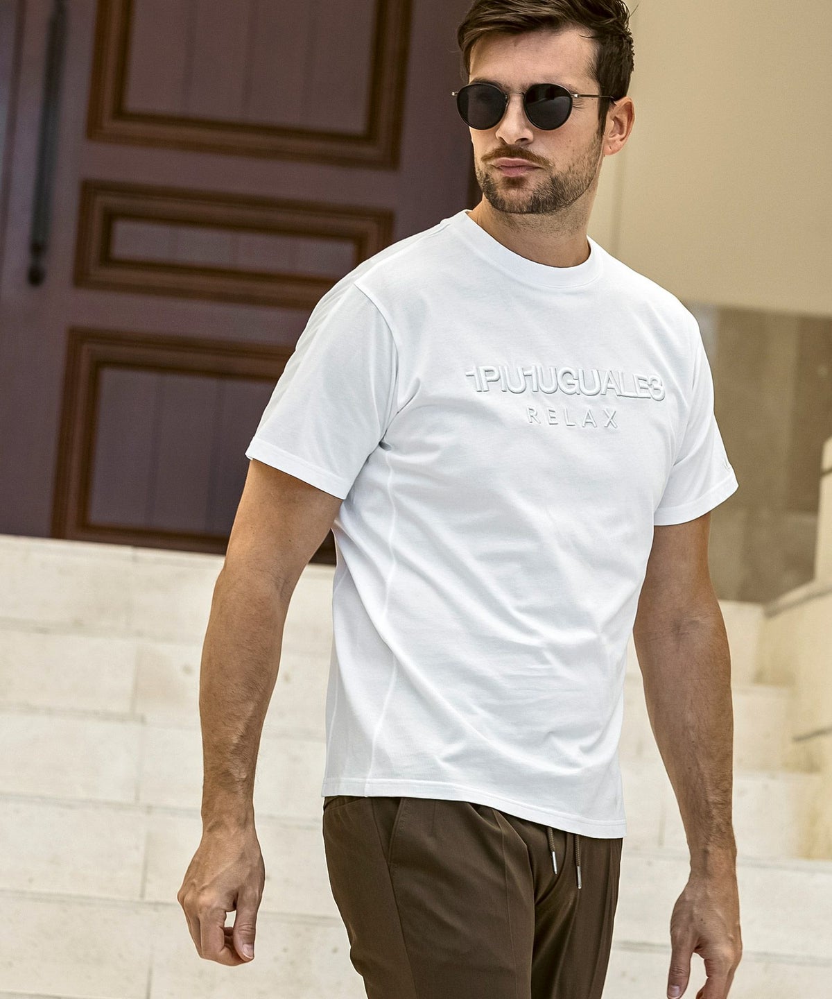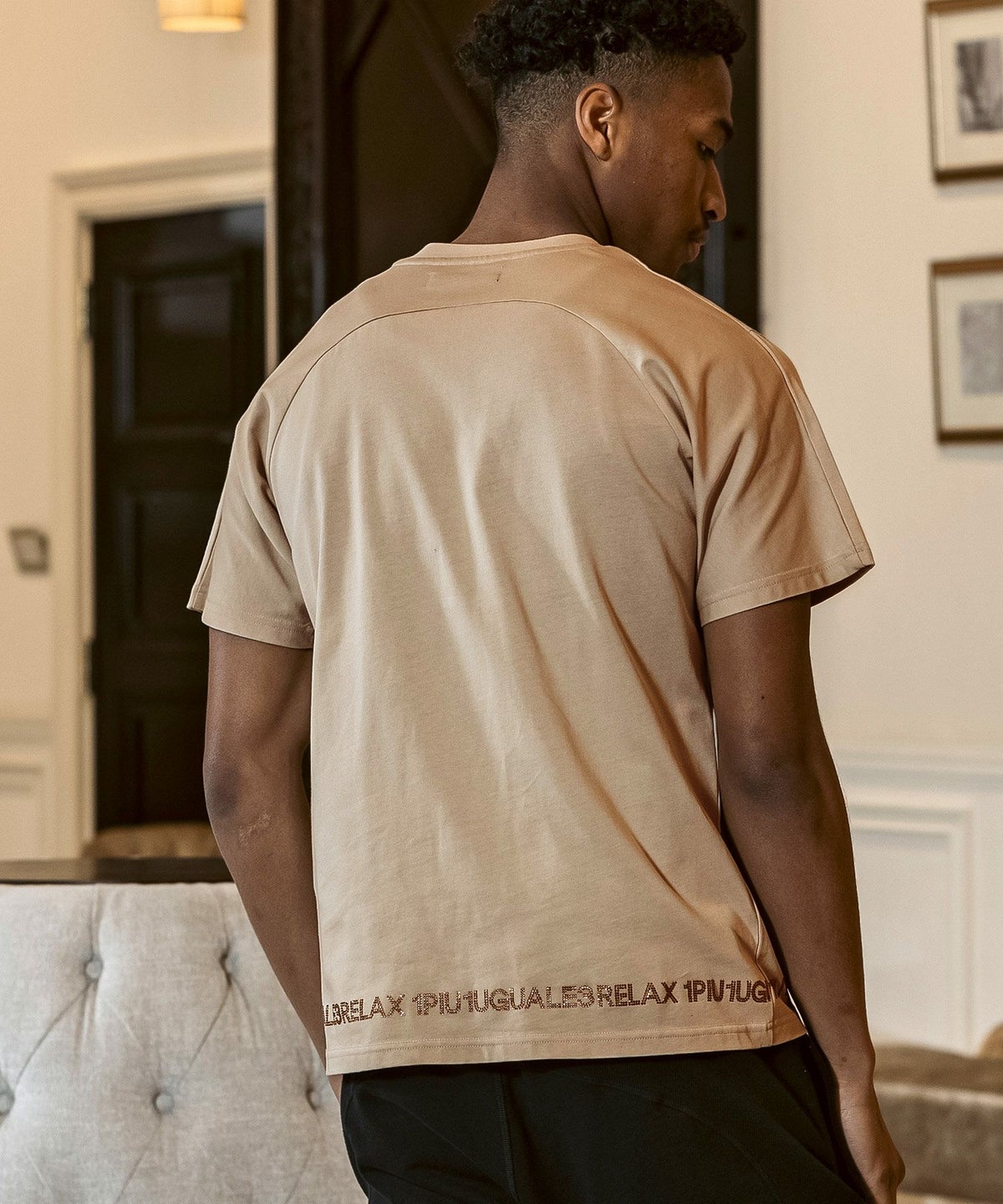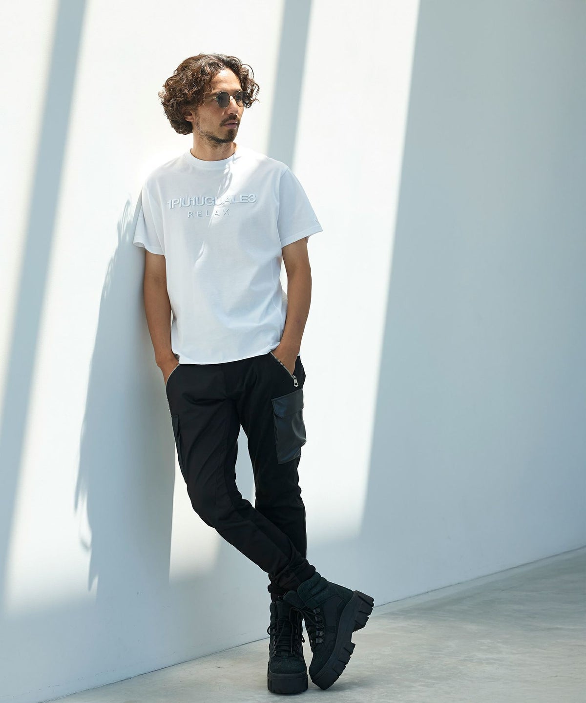 1PIU1UGUALE3 RELAX(ウノピゥウノウグァーレトレ リラックス)コンビネーションロゴ半袖Tシャツ