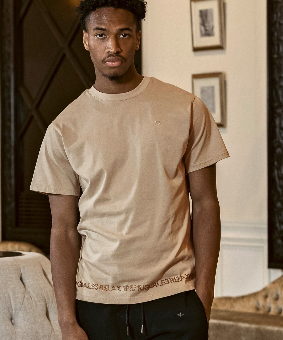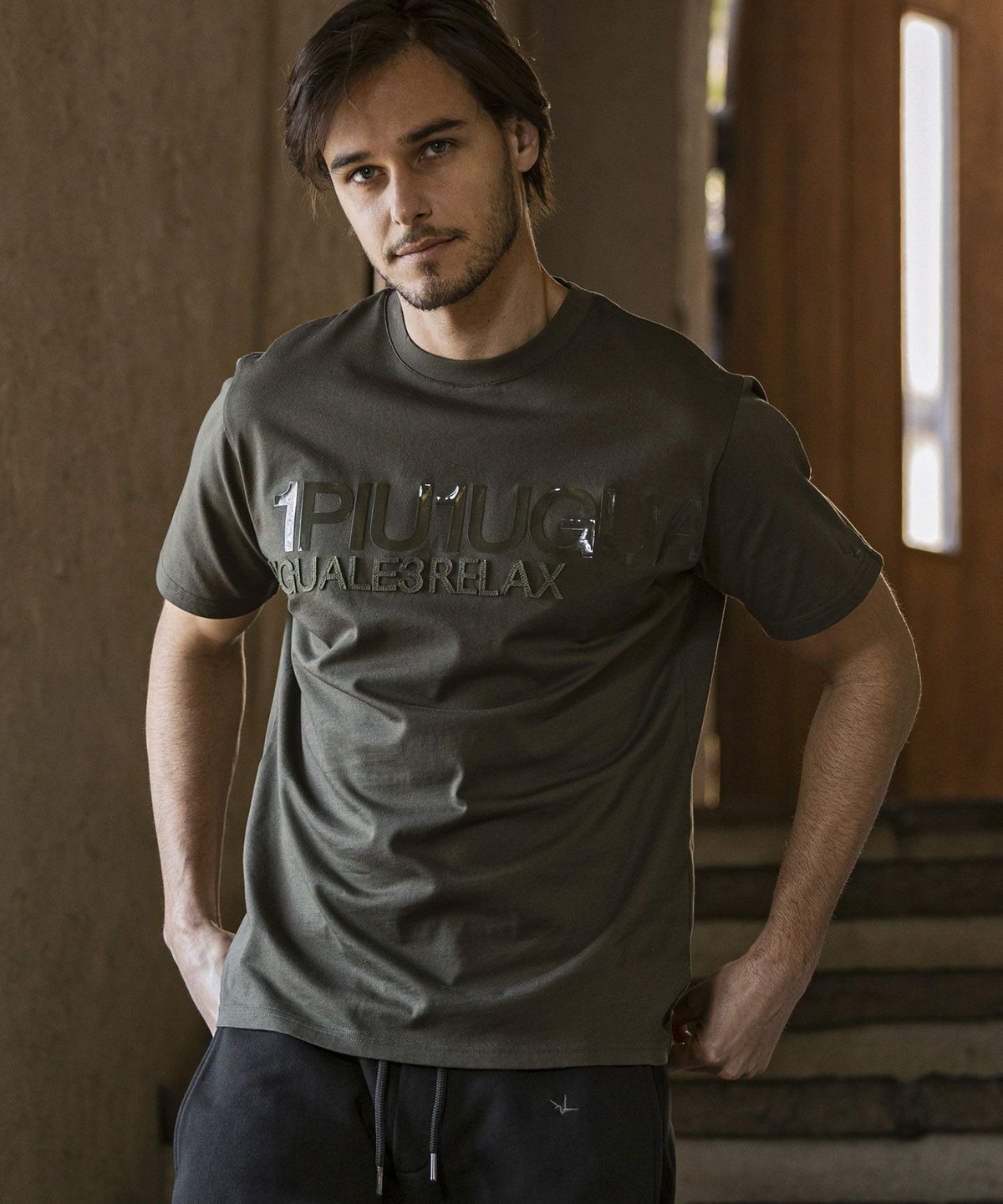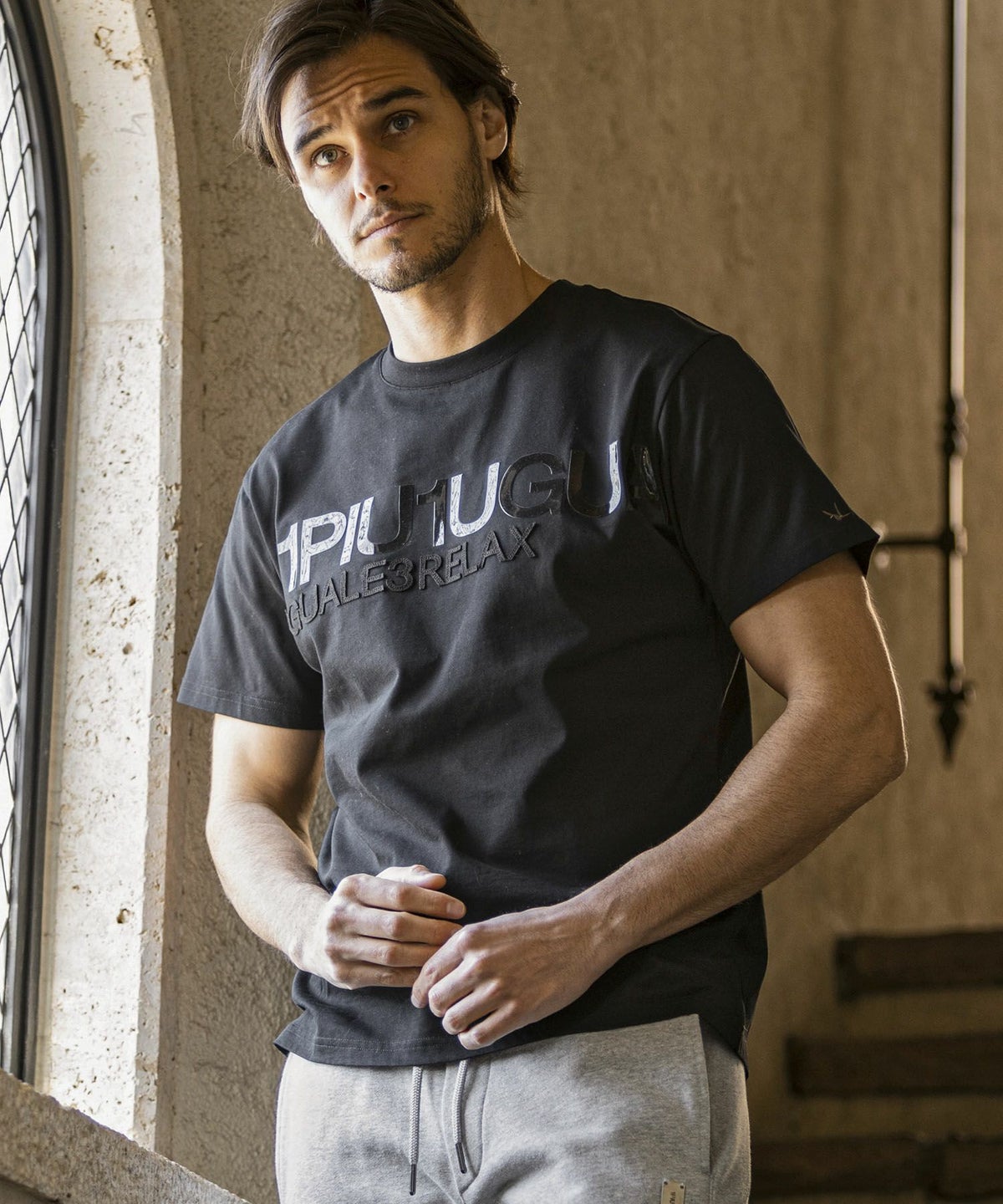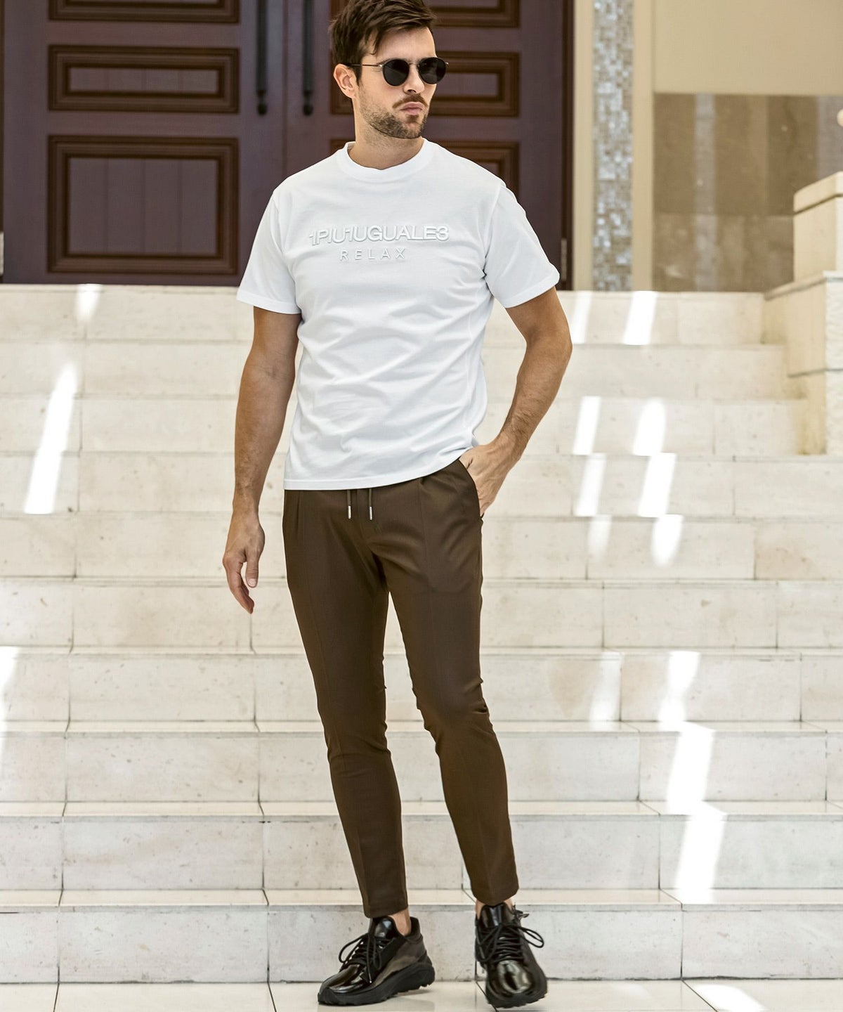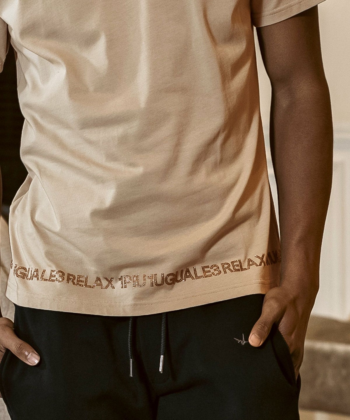 1PIU1UGUALE3 RELAX(ウノピゥウノウグァーレトレ リラックス)コンビネーションロゴ半袖Tシャツ