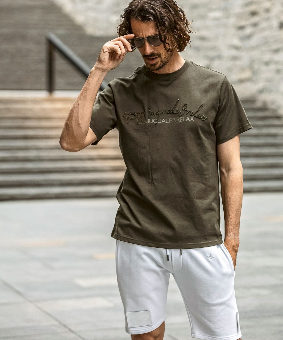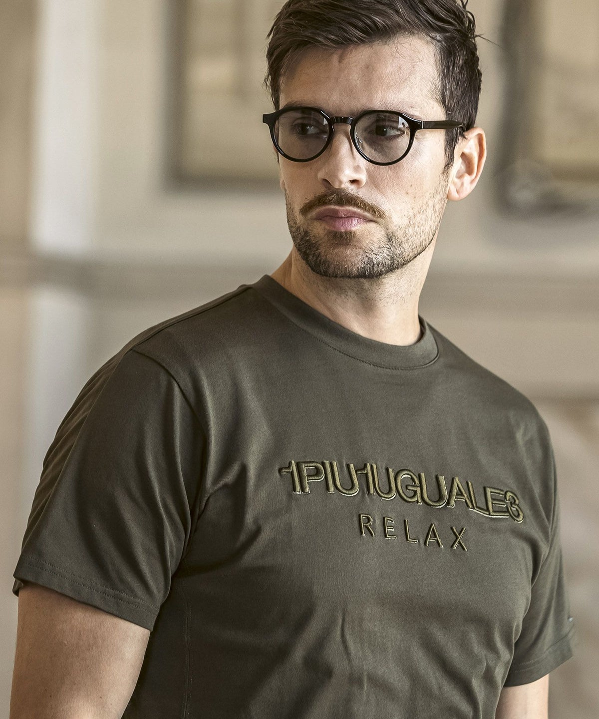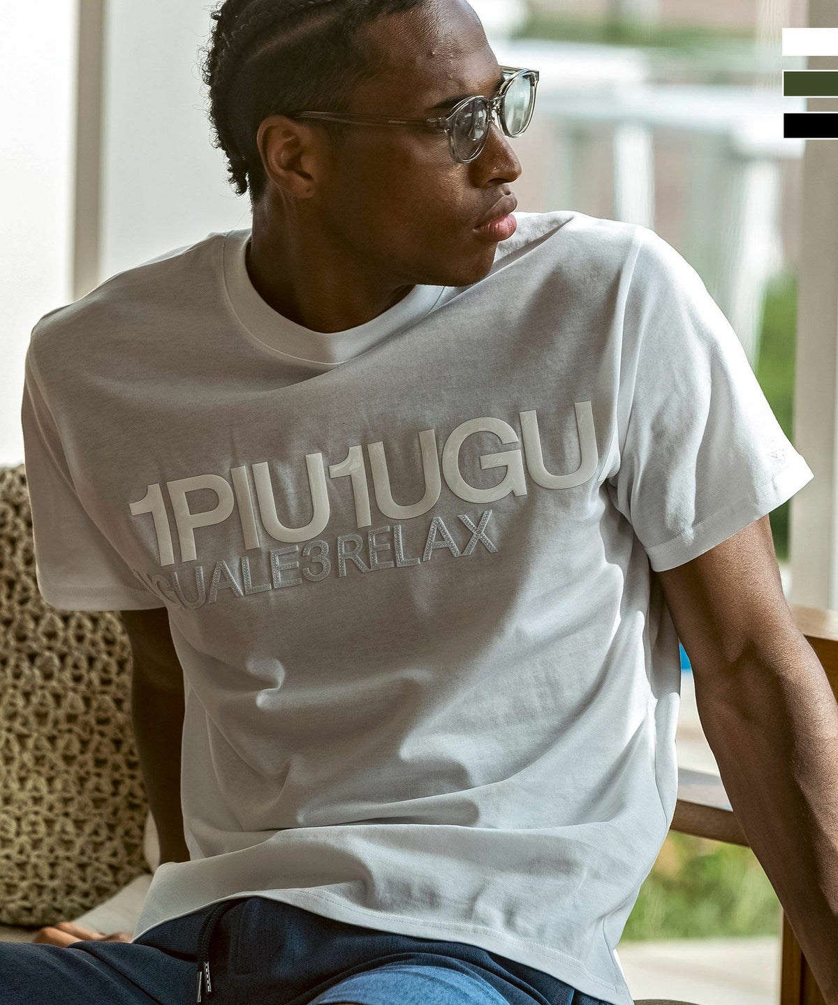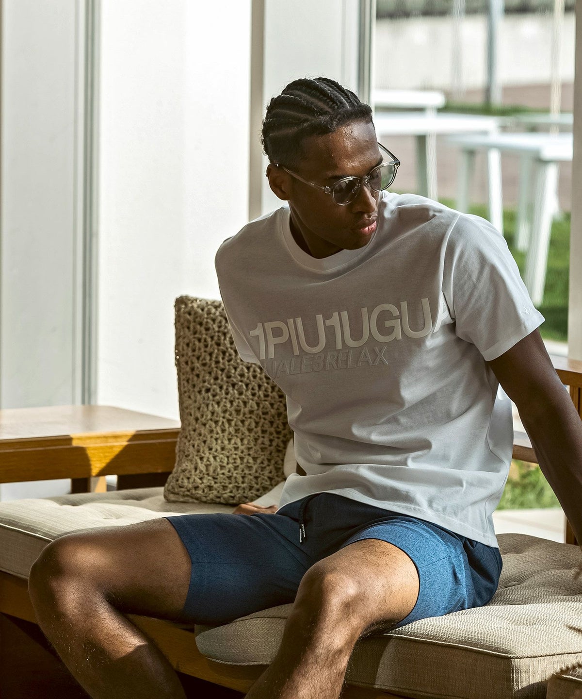 1PIU1UGUALE3 RELAX(ウノピゥウノウグァーレトレ リラックス)コンビネーションロゴ半袖Tシャツ