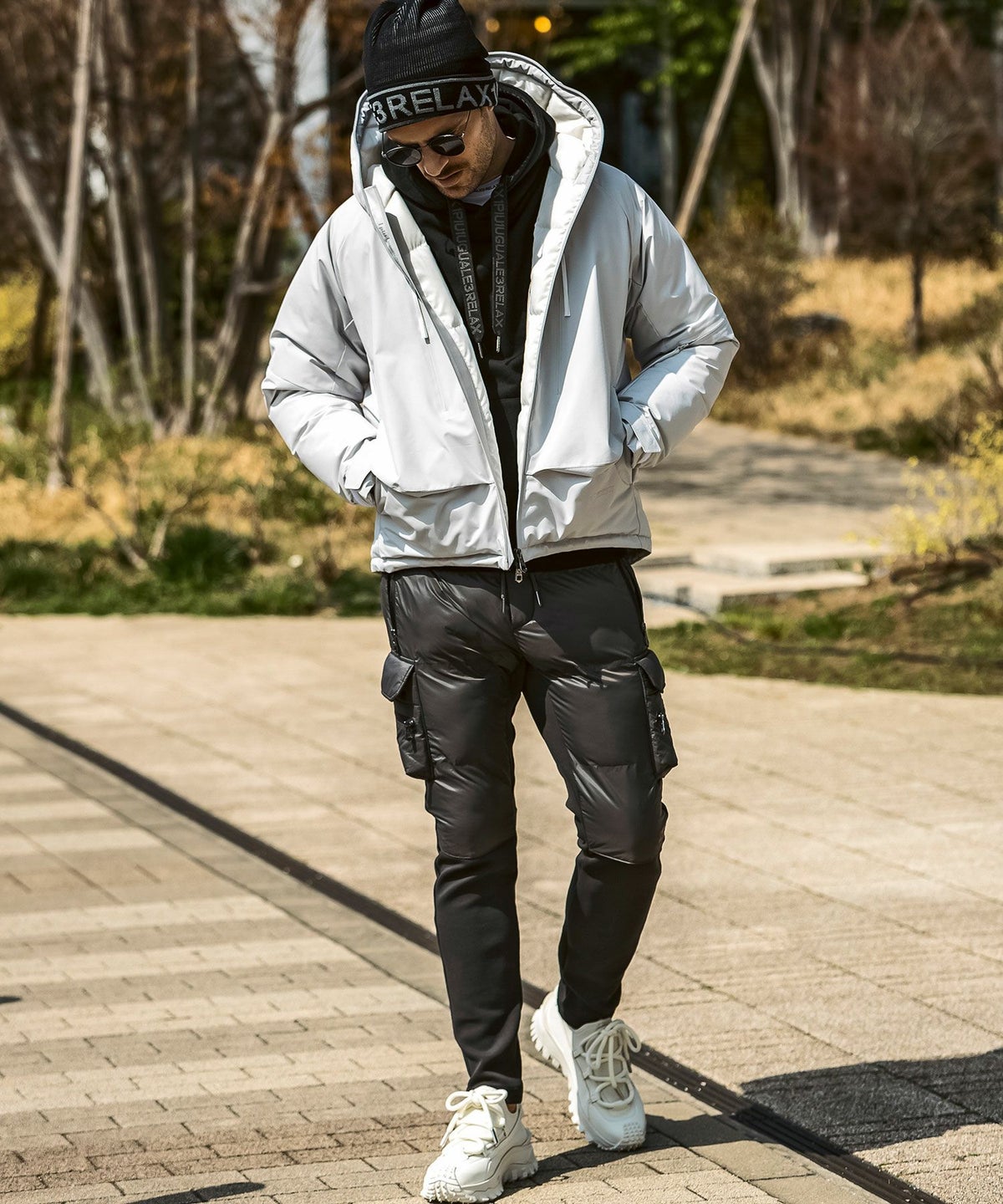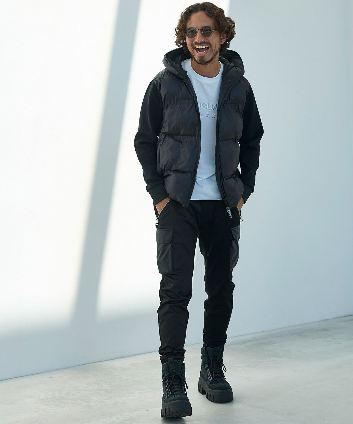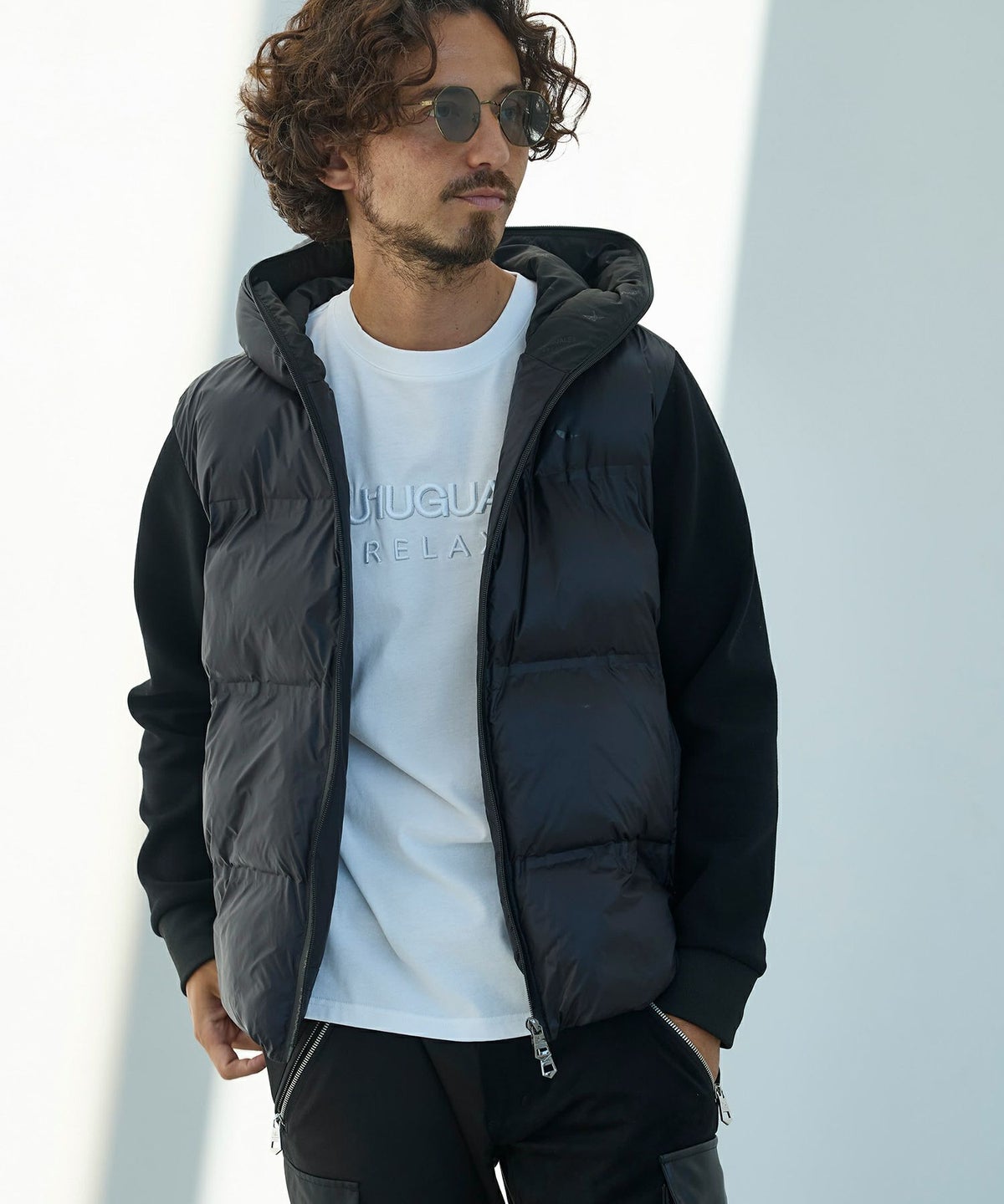 1PIU1UGUALE3 RELAX(ウノピゥウノウグァーレトレ リラックス)ブラックジャガードパデッドパーカー