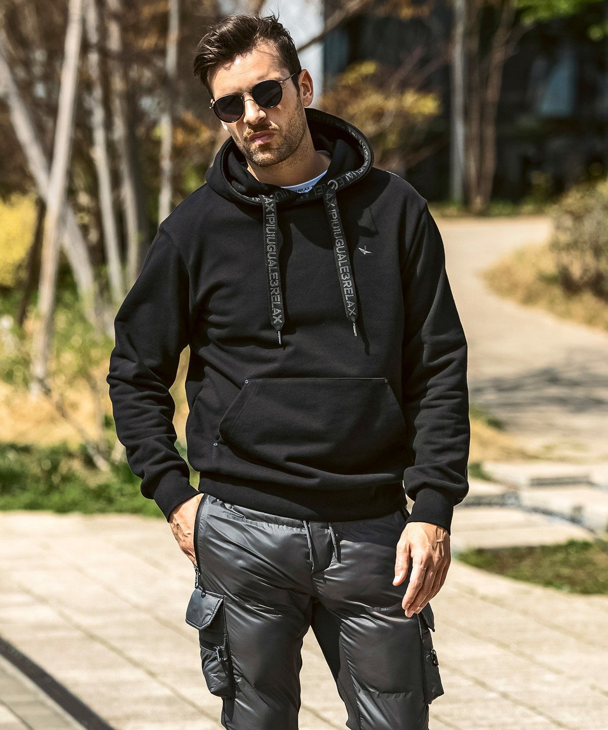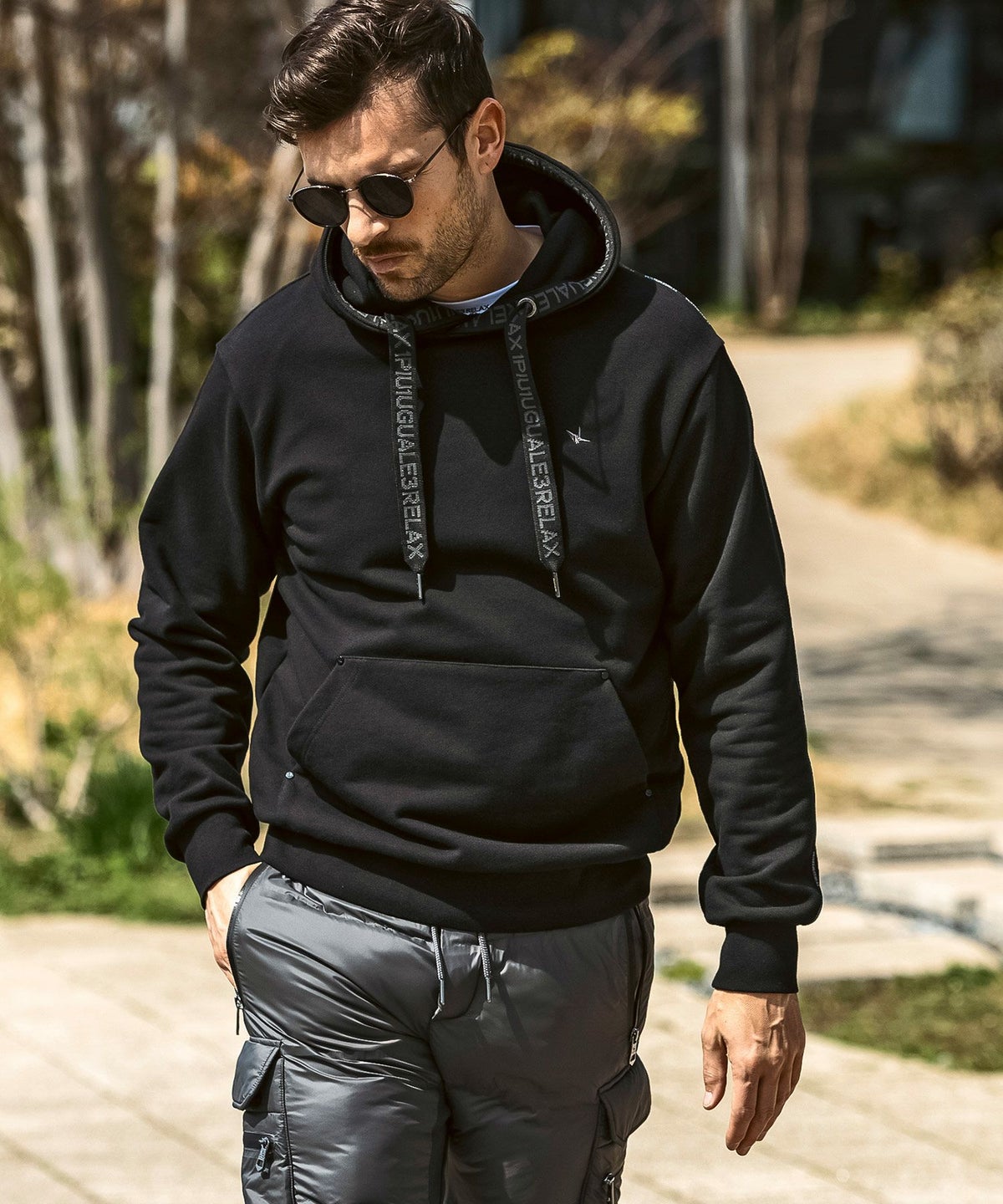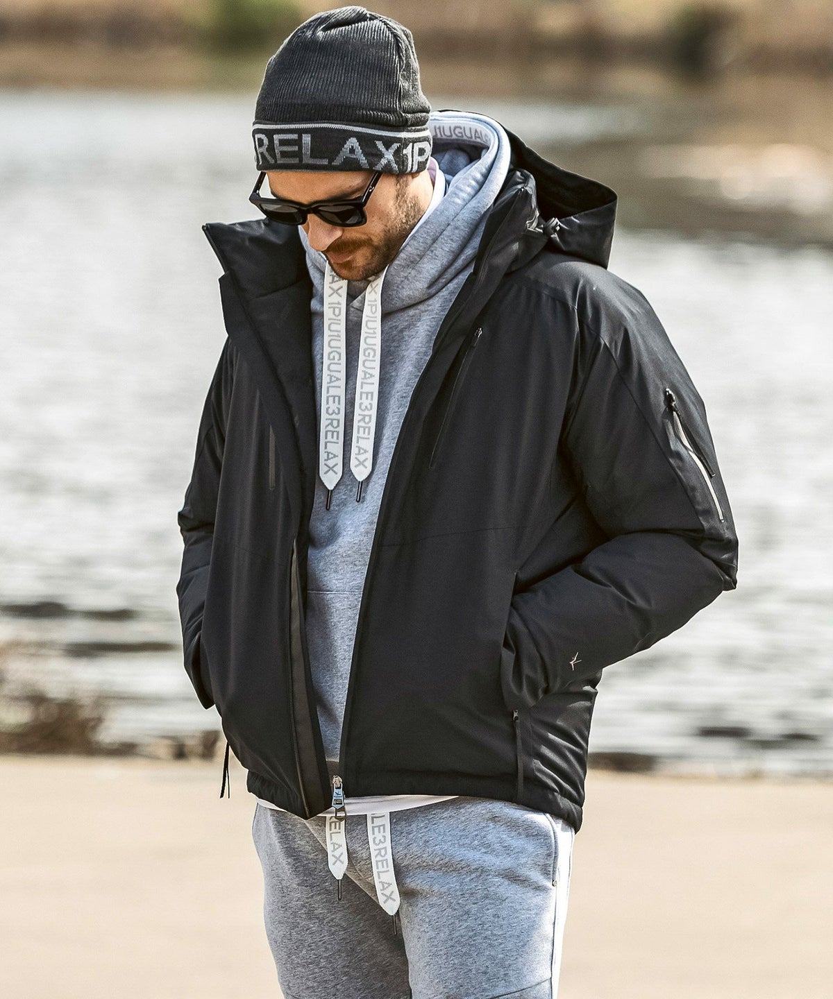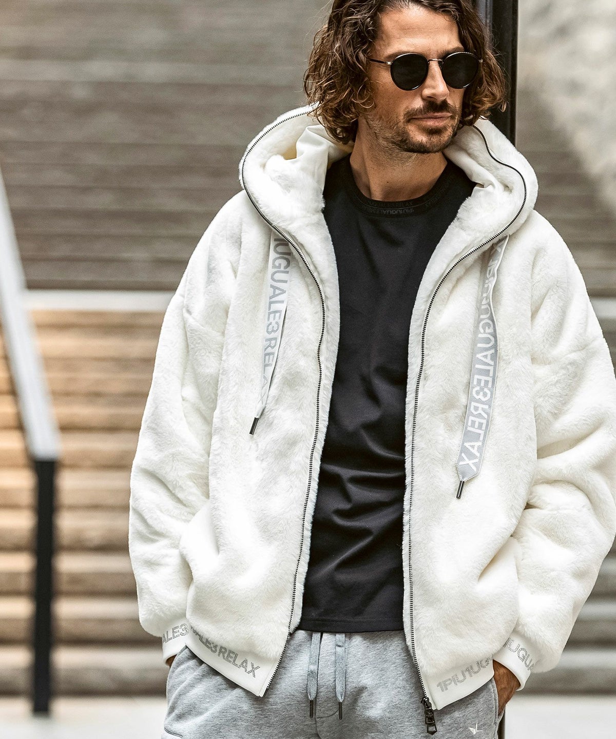 1PIU1UGUALE3 RELAX(ウノピゥウノウグァーレトレ リラックス)ブラックジャガードパデッドパーカー