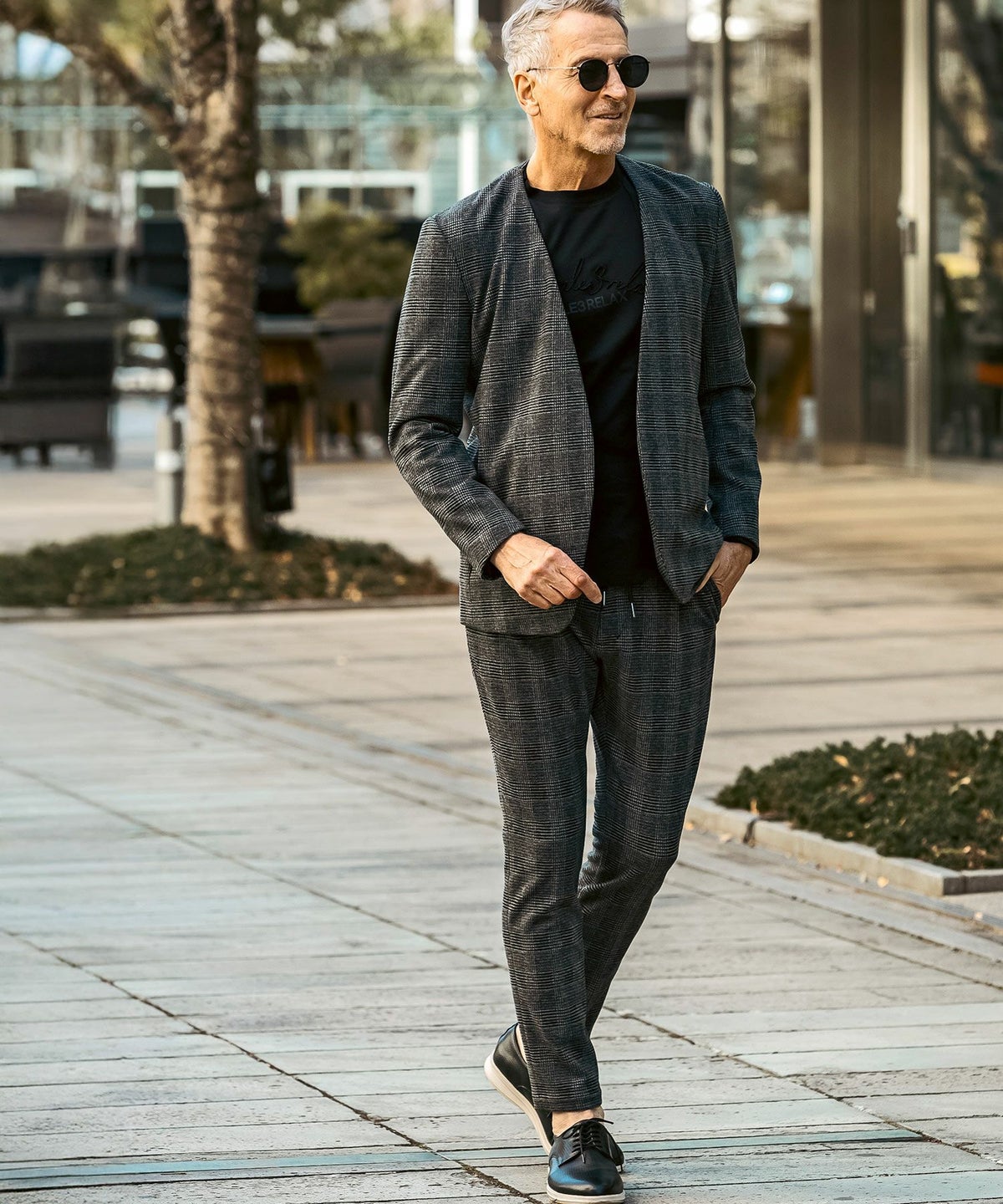1PIU1UGUALE3 RELAX(ウノピゥウノウグァーレトレ リラックス)グレンチェックノーカラージャケット